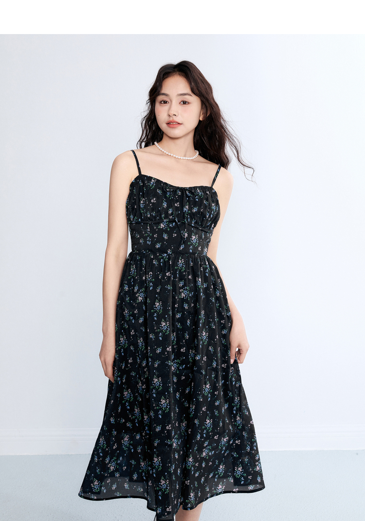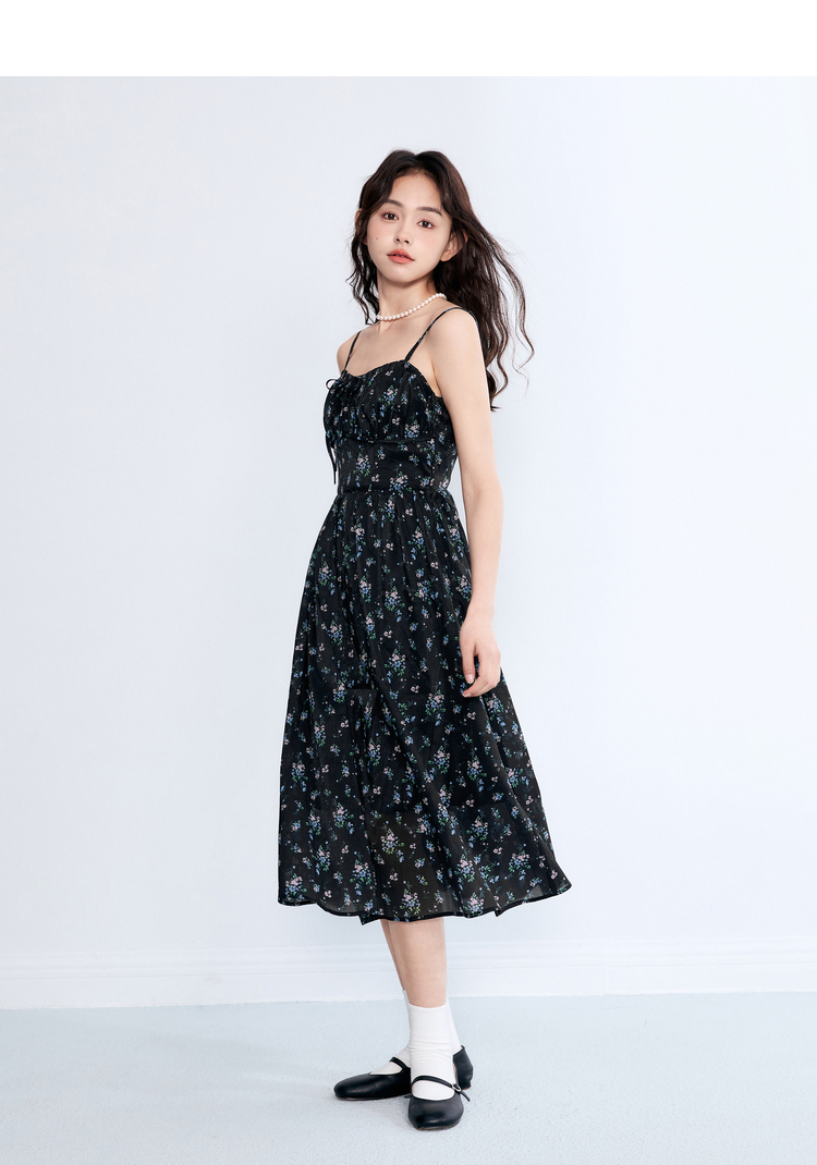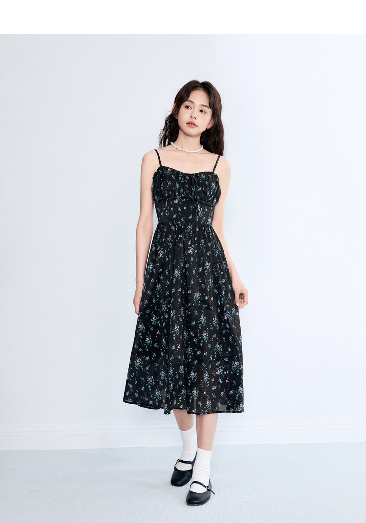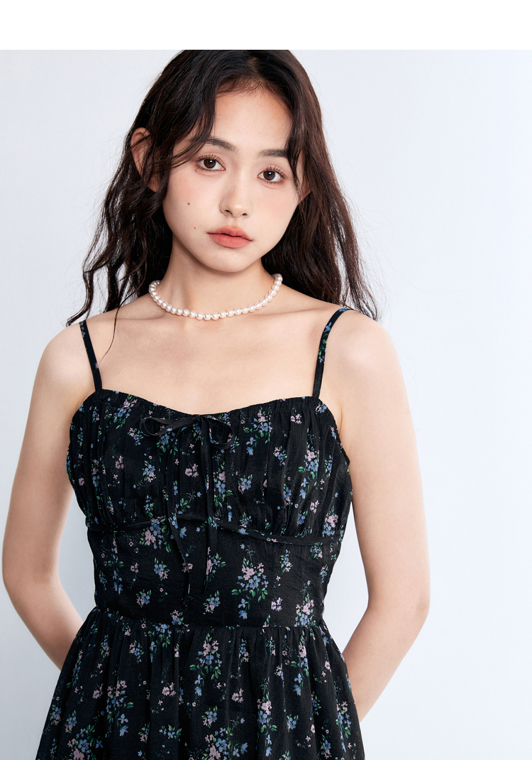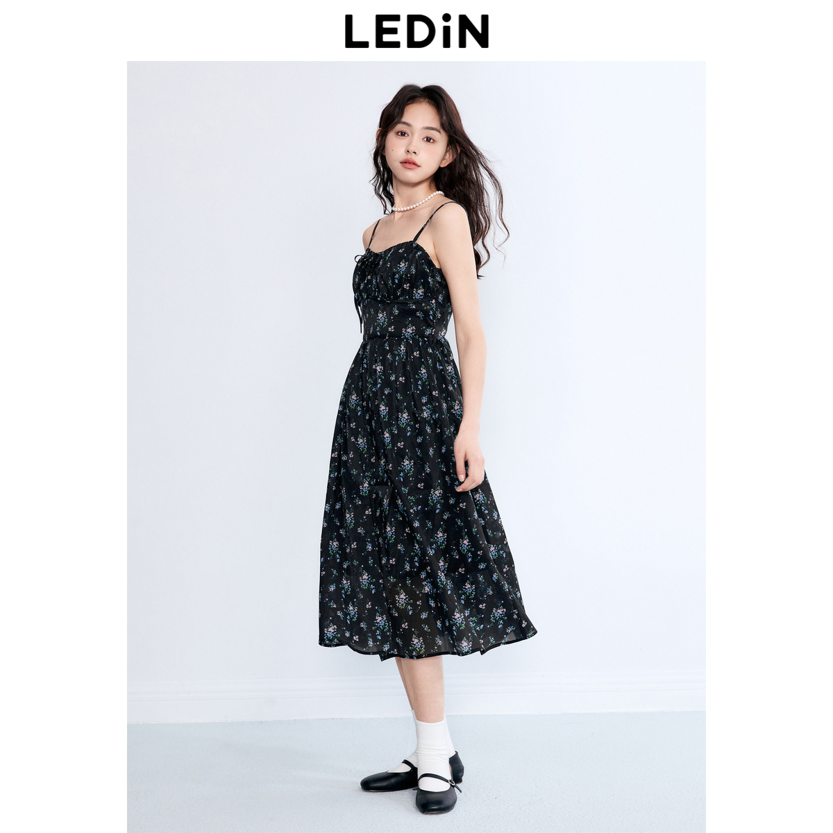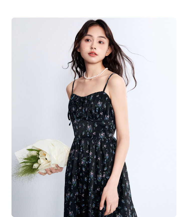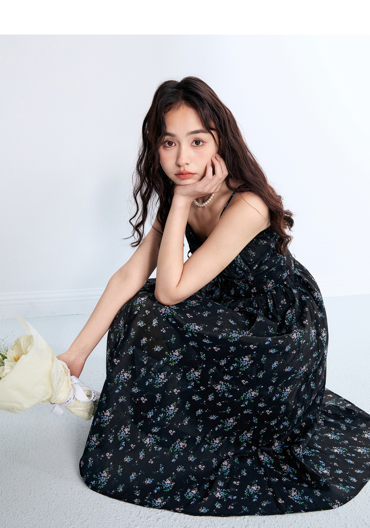 樂町浪漫法式碎花裙2023年新品女裝清新洋裝海邊度假風吊帶裙