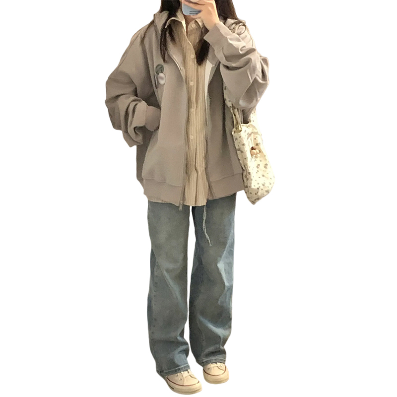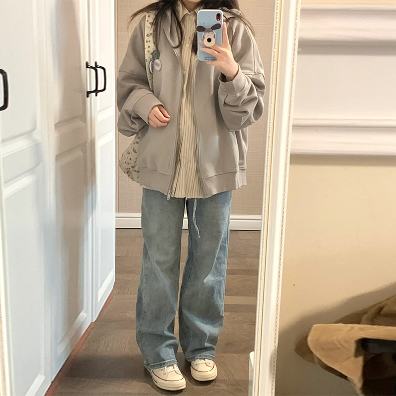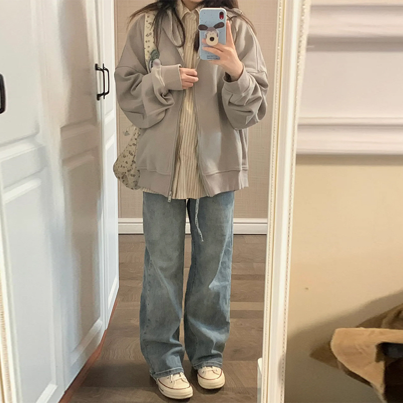 顏色分類 淺灰【拉鍊衛衣/外套韓系慵懶風厚/衛衣女秋冬/高級感超好看/衛衣寬鬆韓版/美式復古/港風chic/小個子開衫正肩今年流行衛衣2023即墨衛衣】