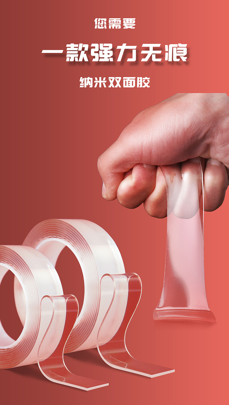 厂家纳米胶带强力无痕纳米胶抖音同款双面贴魔术pet透明双面胶