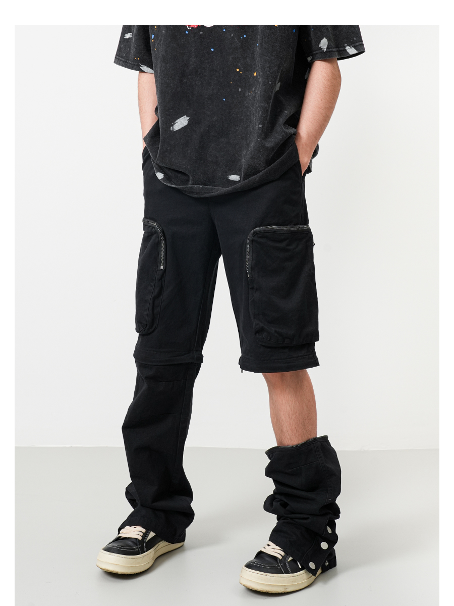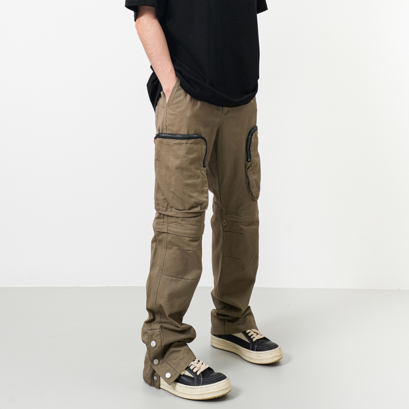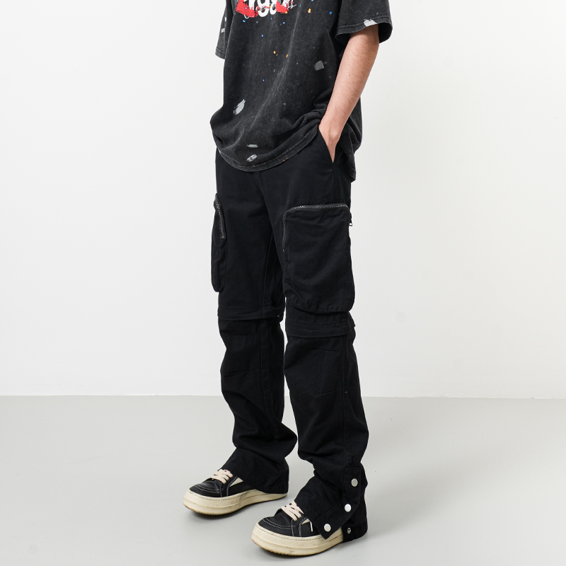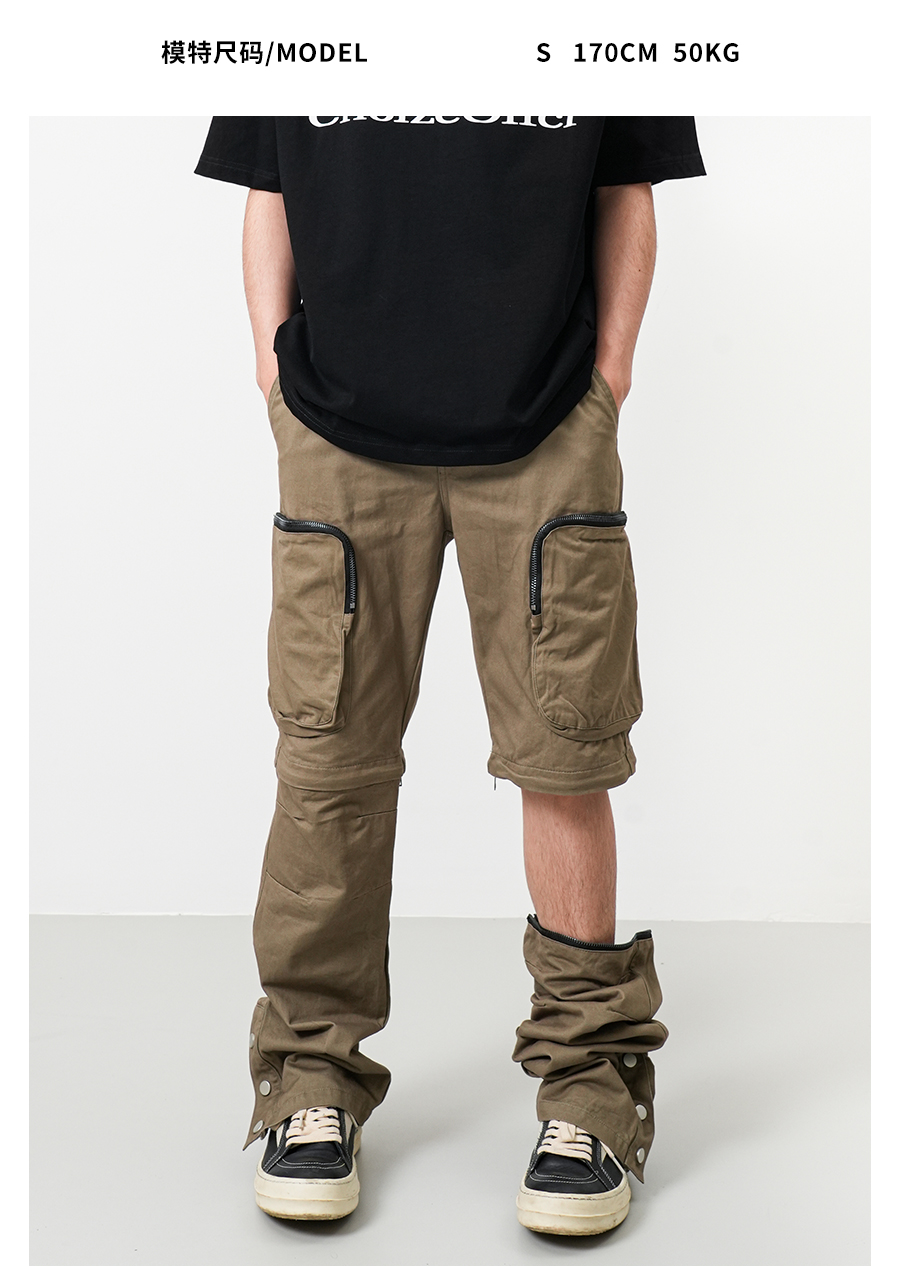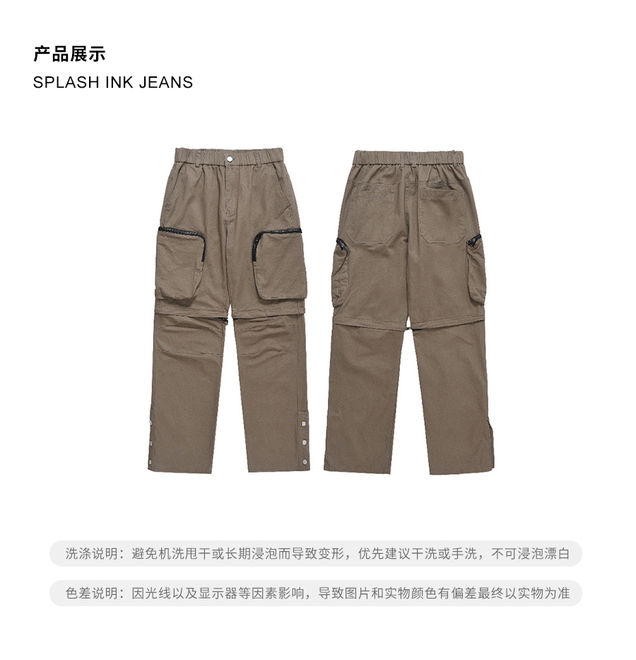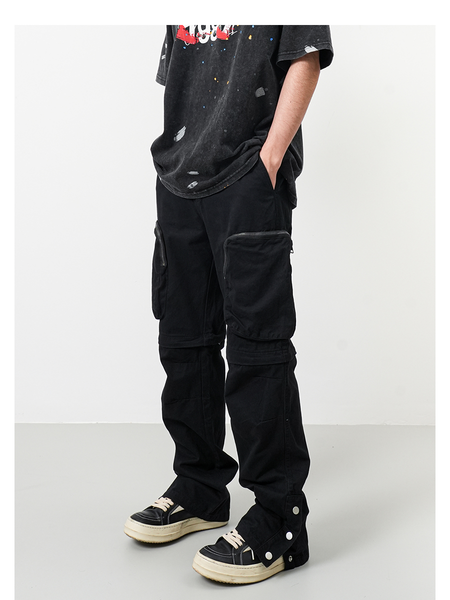 RAIN EDM美式高街解構可拆卸工裝褲子男小眾設計感直筒排扣休閒褲