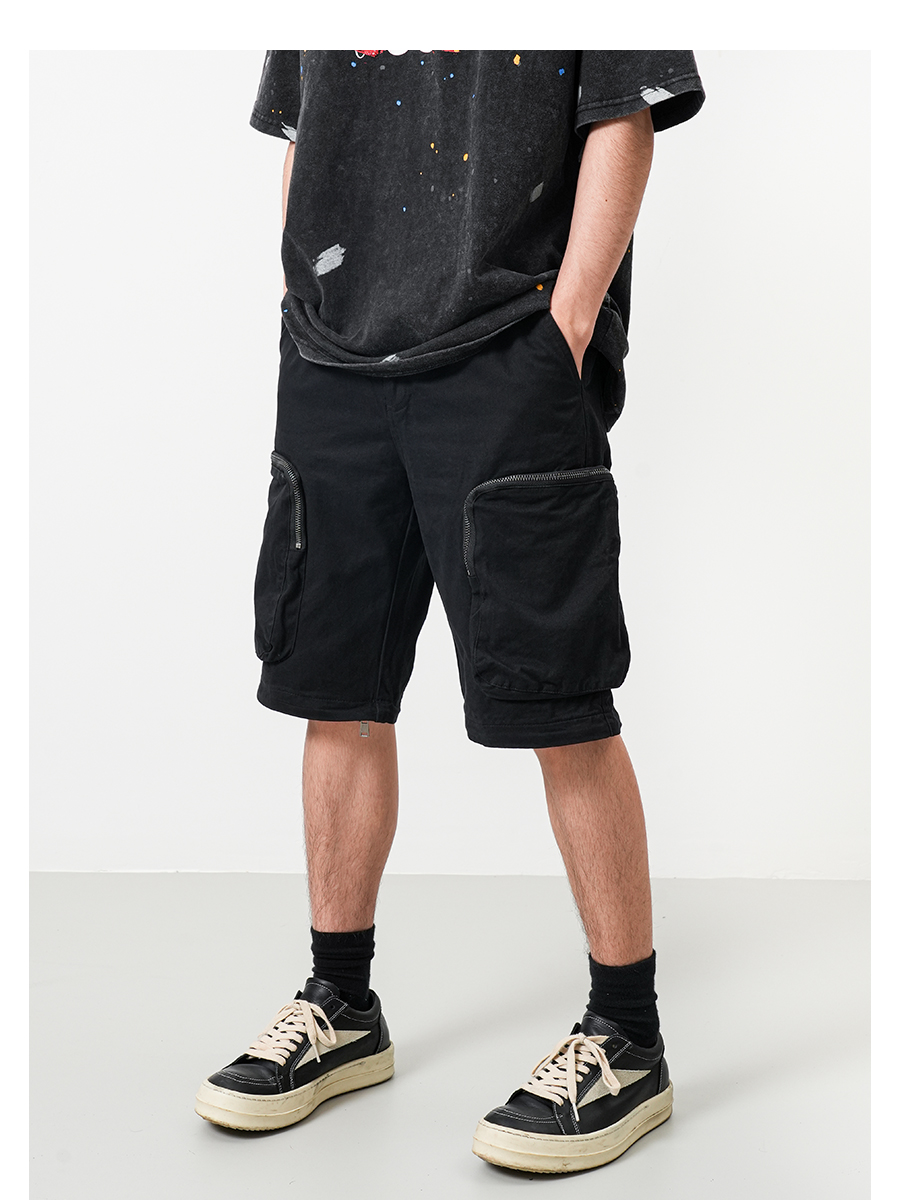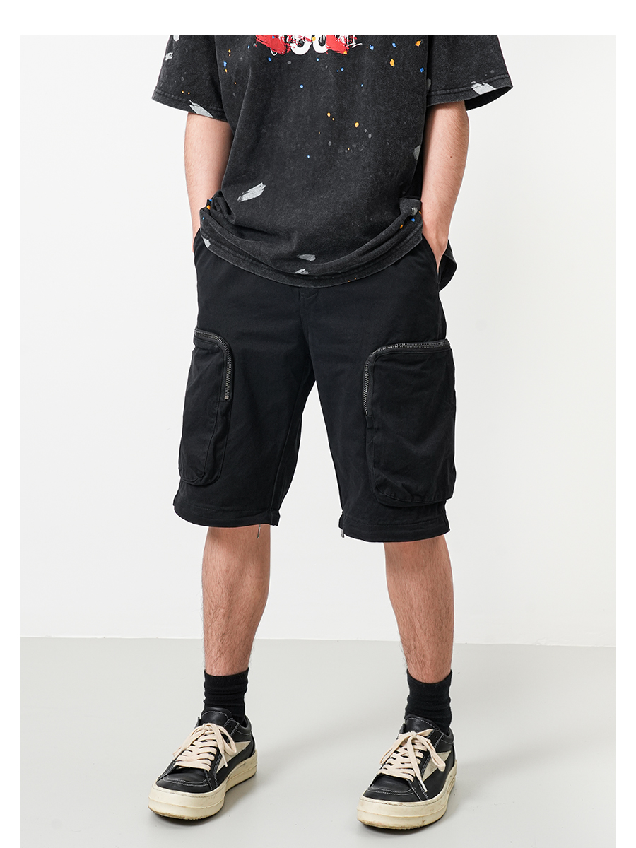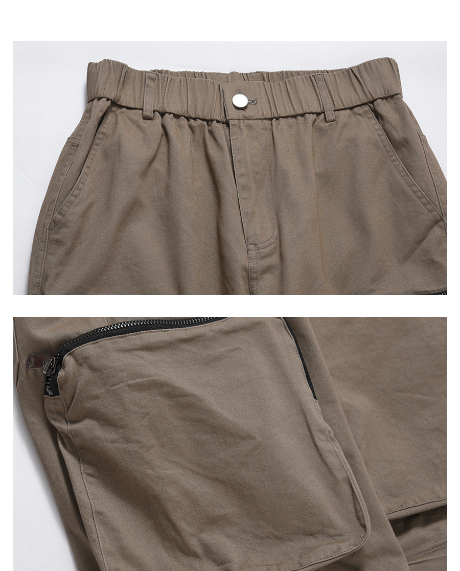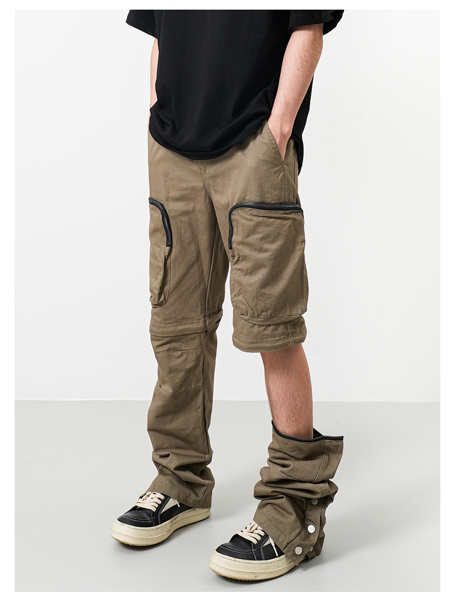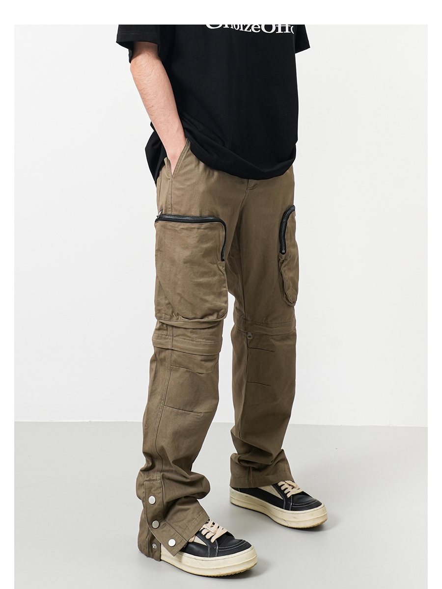 RAIN EDM美式高街解構可拆卸工裝褲子男小眾設計感直筒排扣休閒褲