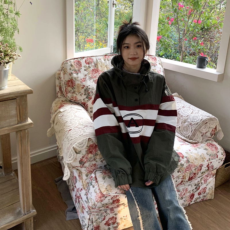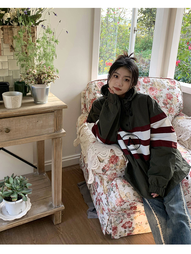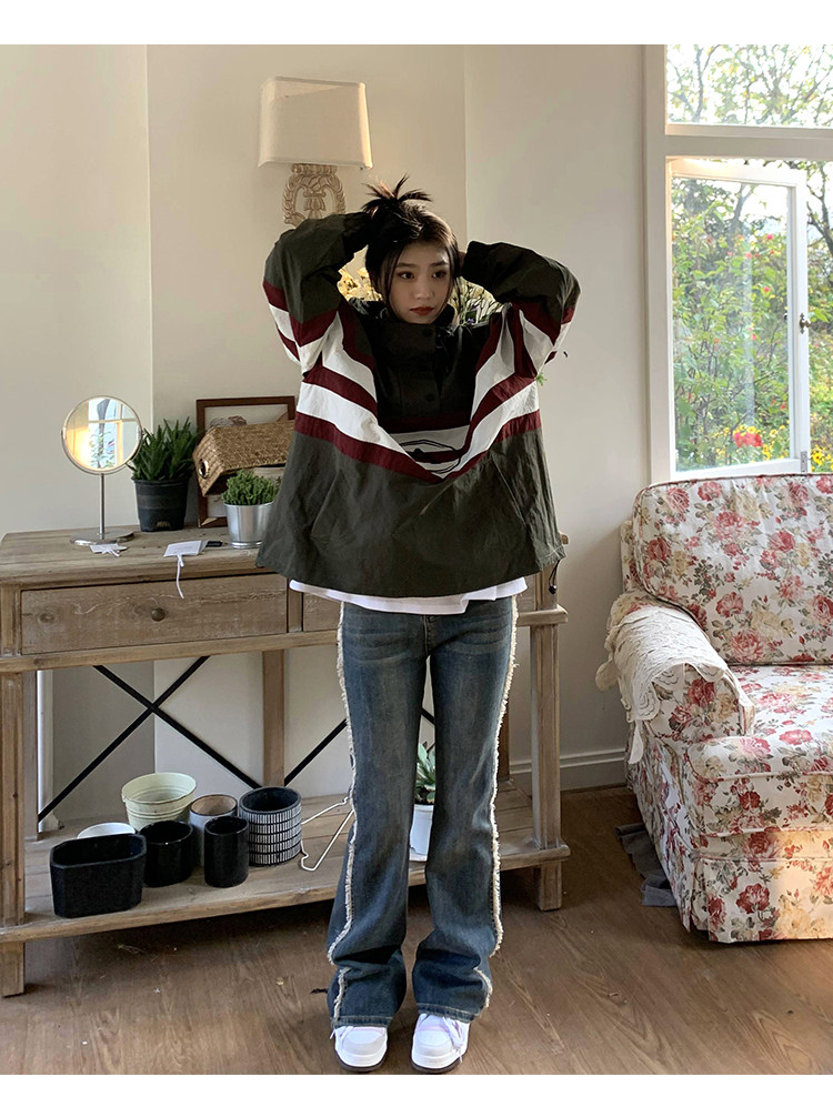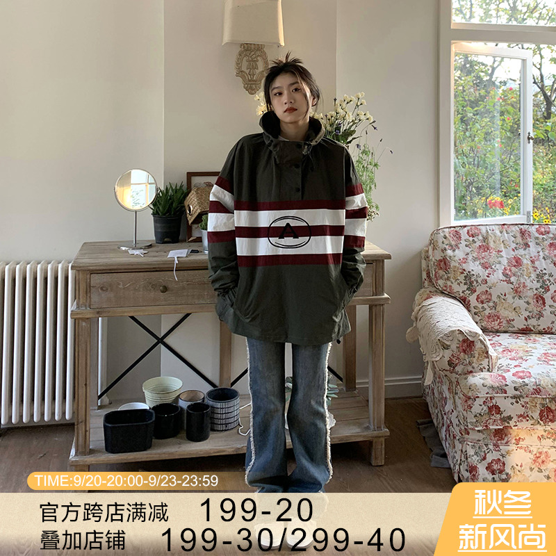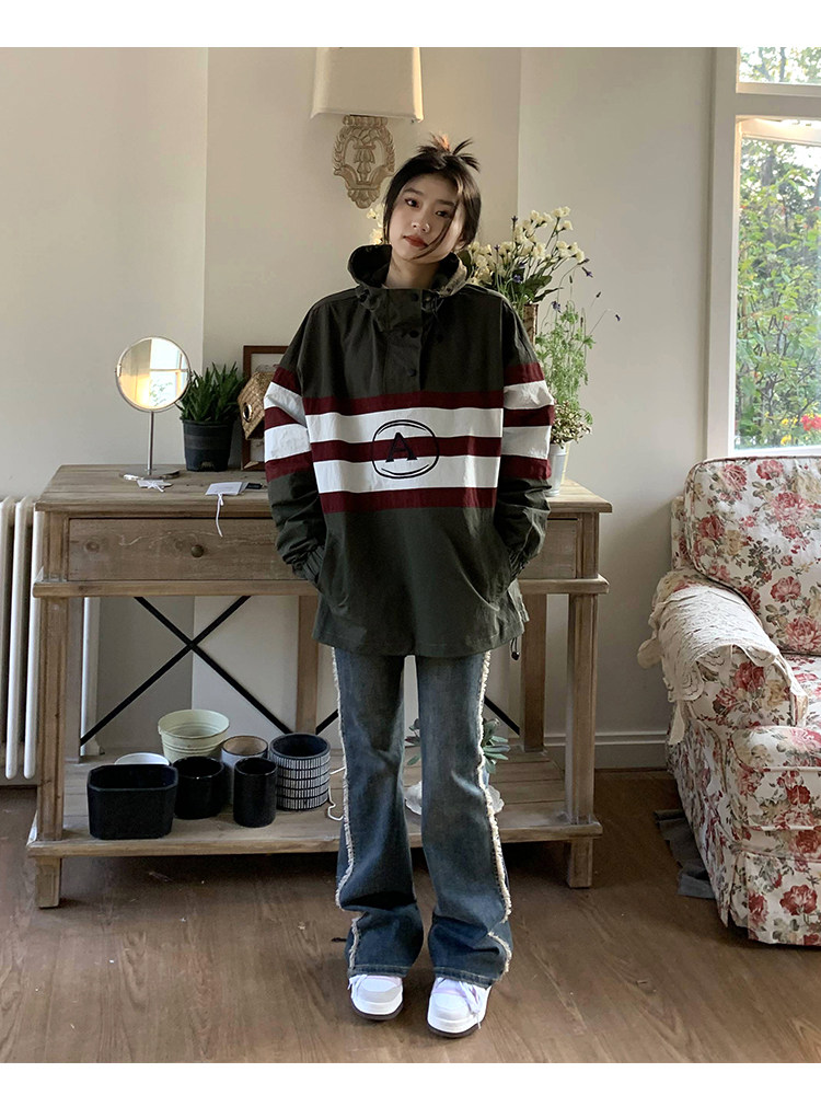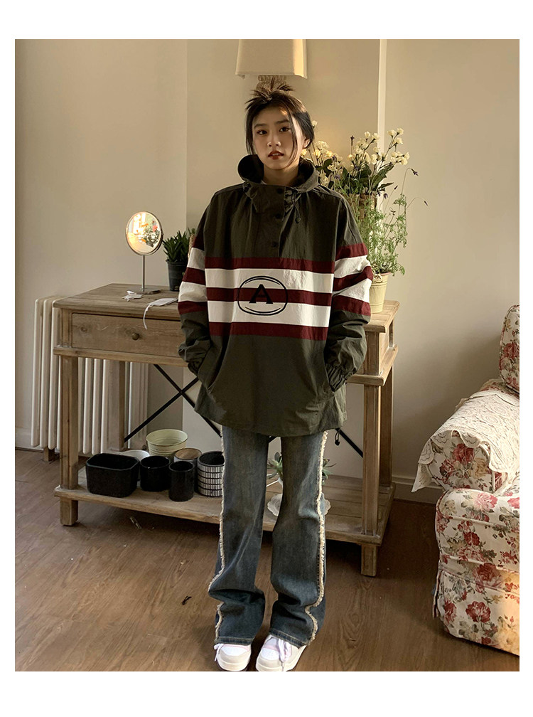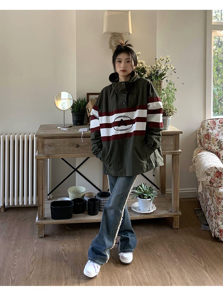 橘子樹在哪兒美式復古套頭連帽衝鋒衣女春季山系中性風設計感外套
