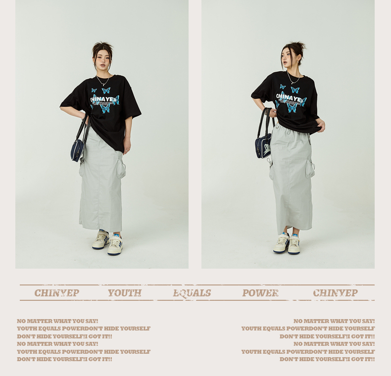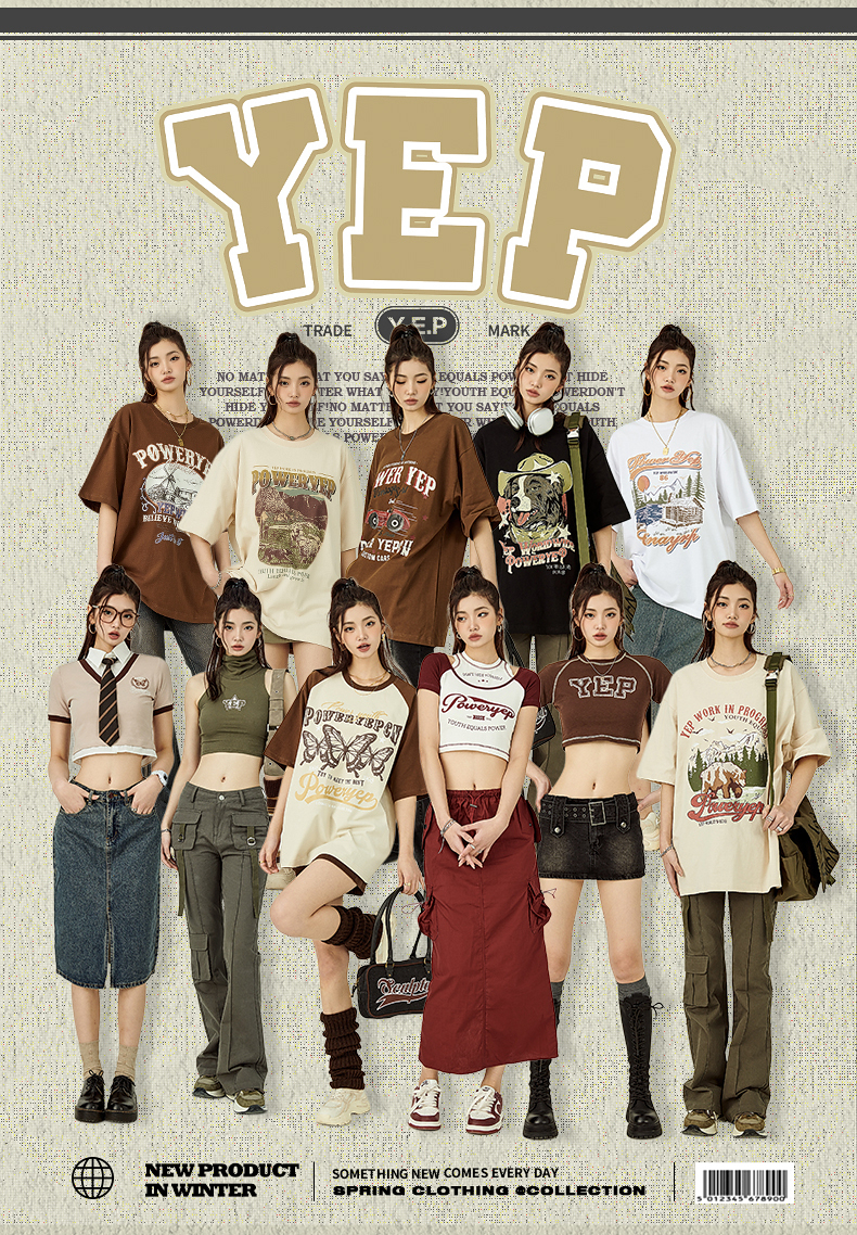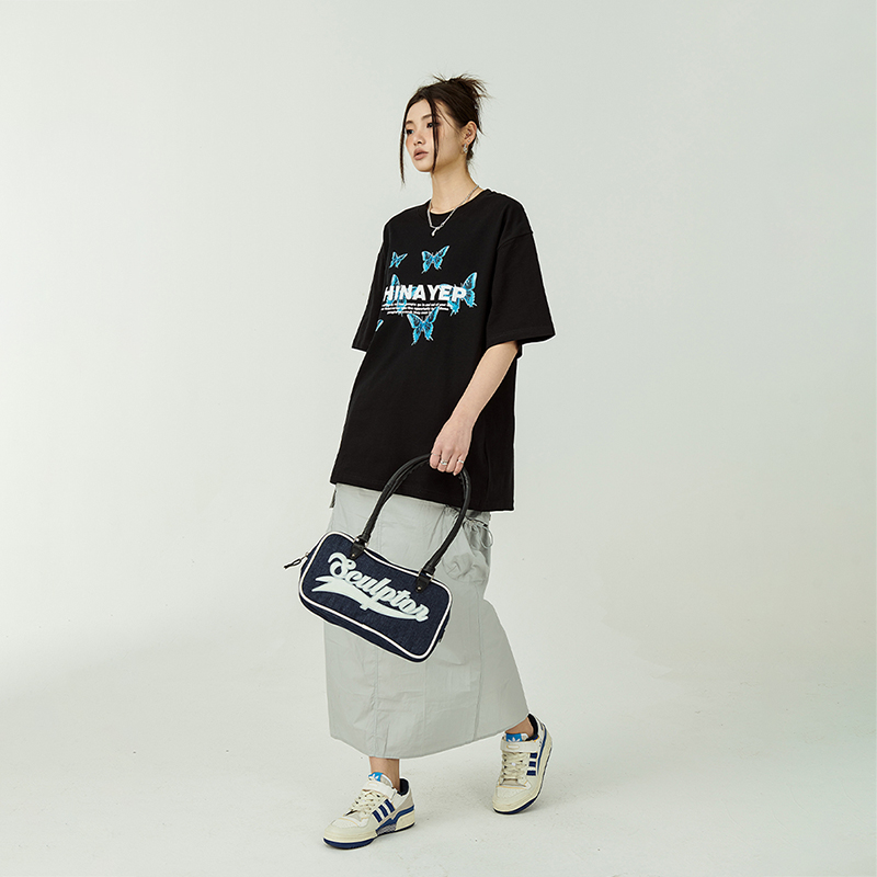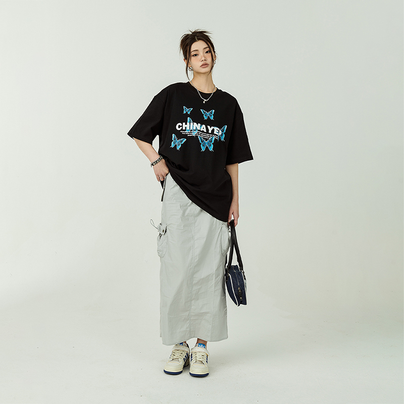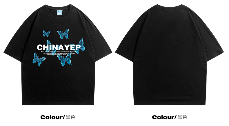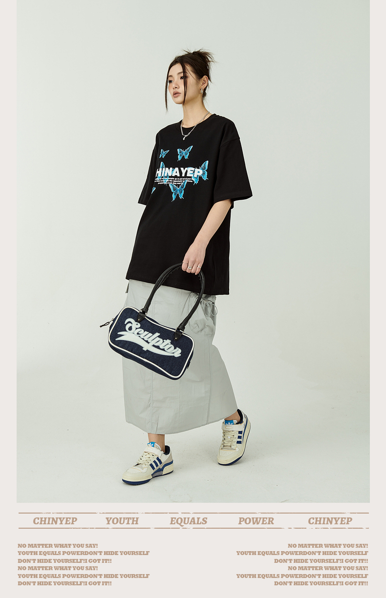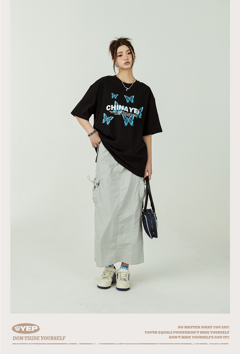YEP寬鬆蝴蝶印花短袖T恤女夏季2023新款復古美式街頭ins潮牌上衣