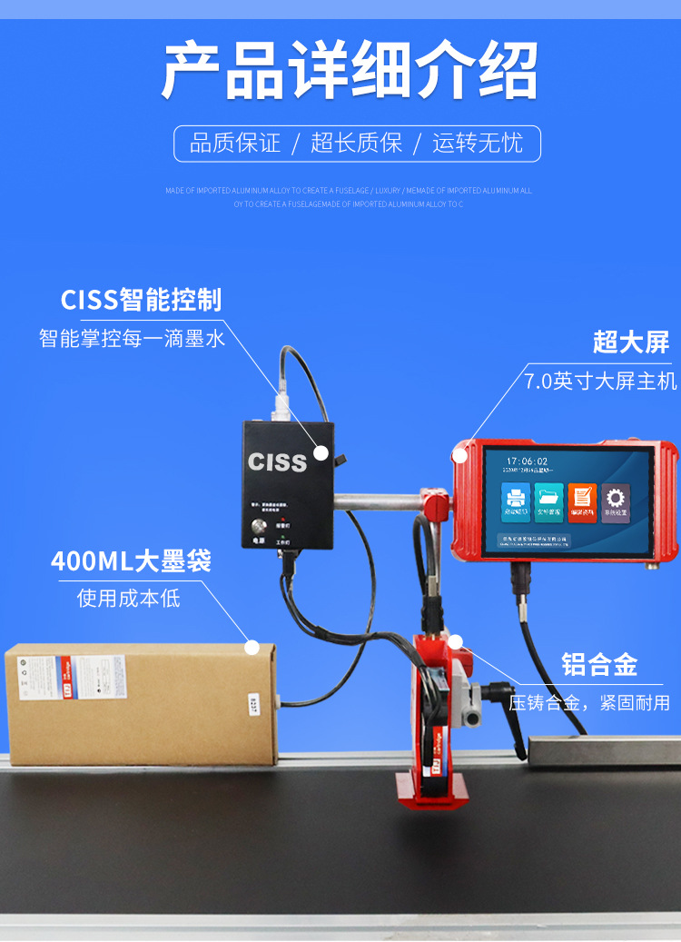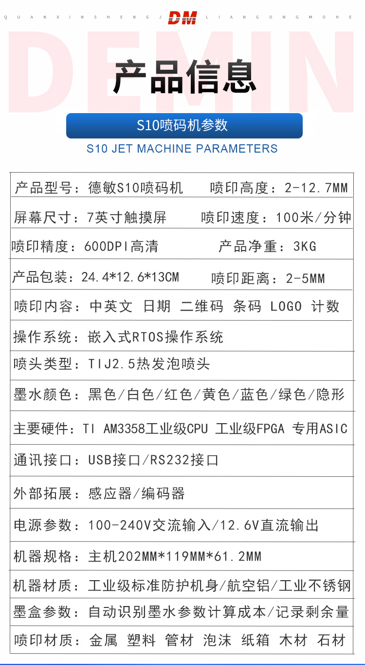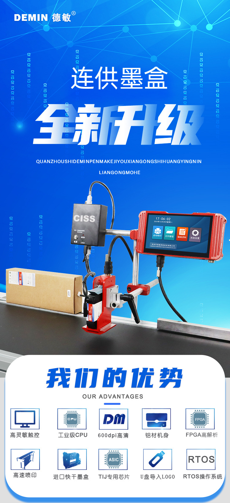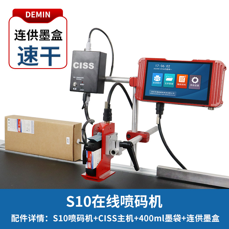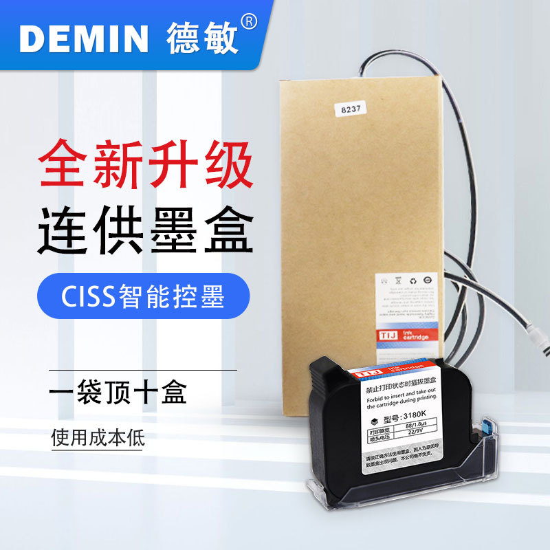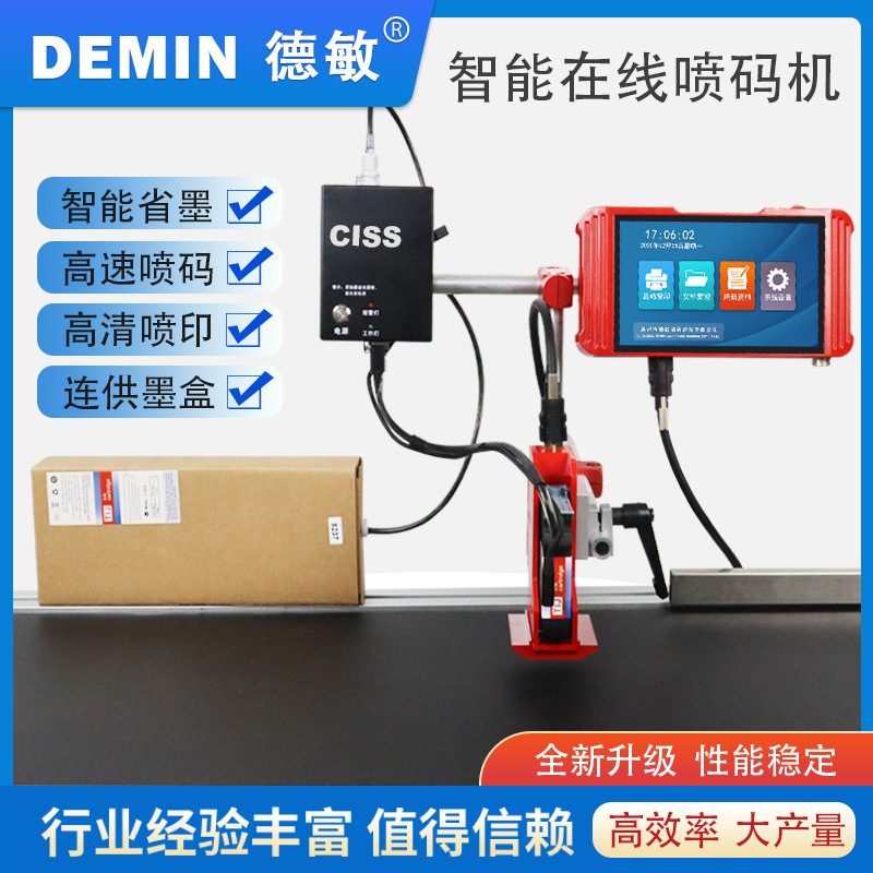 德敏在线高清高速省墨打印大墨带打印logo生产日期不掉色连供墨盒