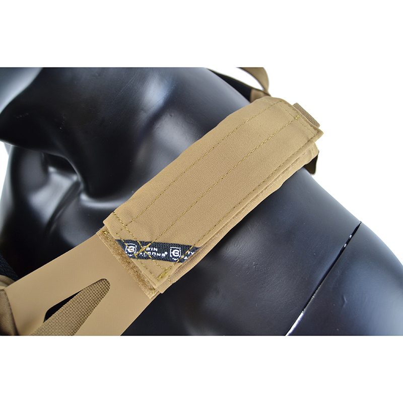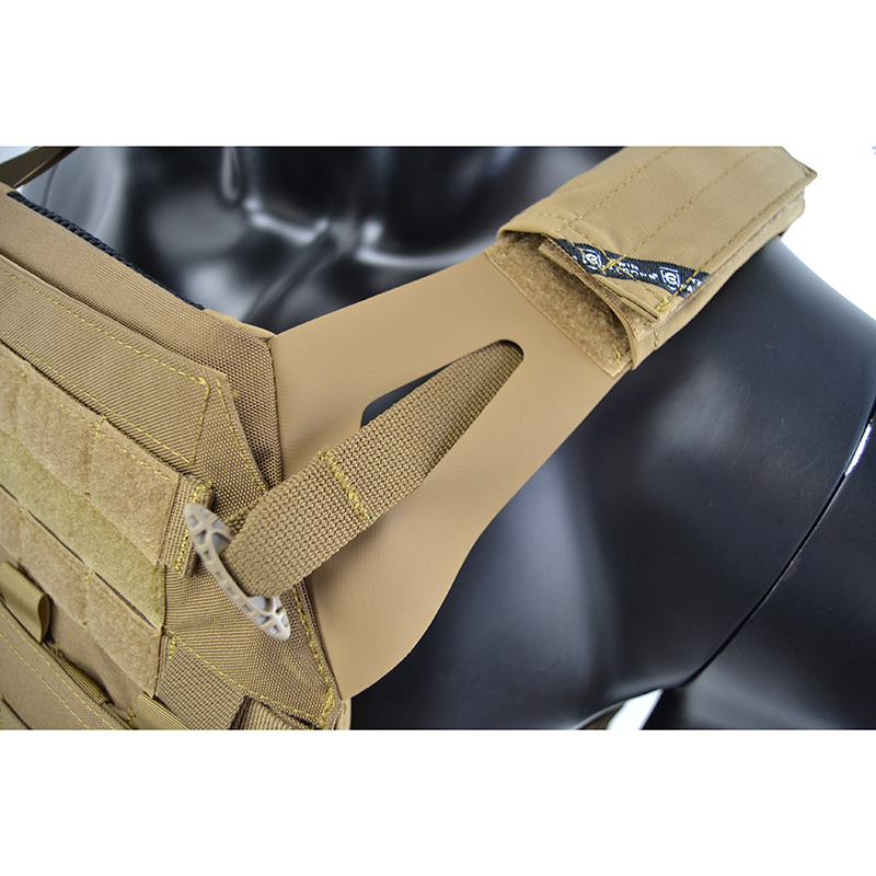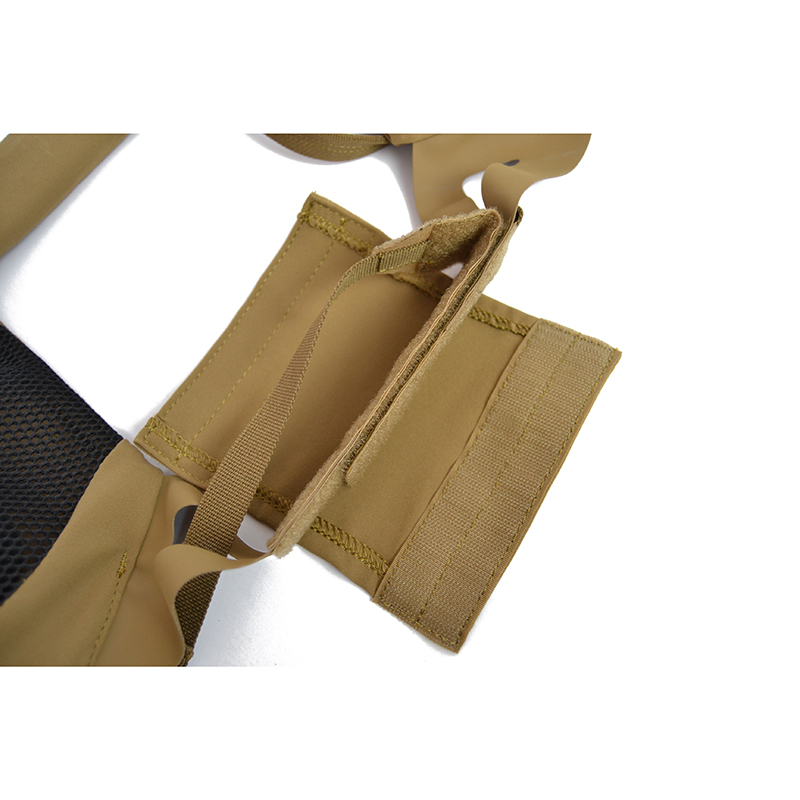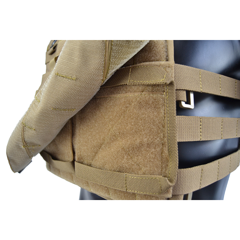 带前后泡沫护板(EVA材质,可自行替换为陶瓷等其他材质护板,中码尺寸25*30cm)。防护板仓两侧采用了弹力布以更好的包裹护板。