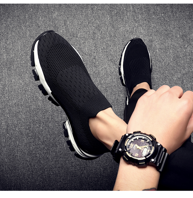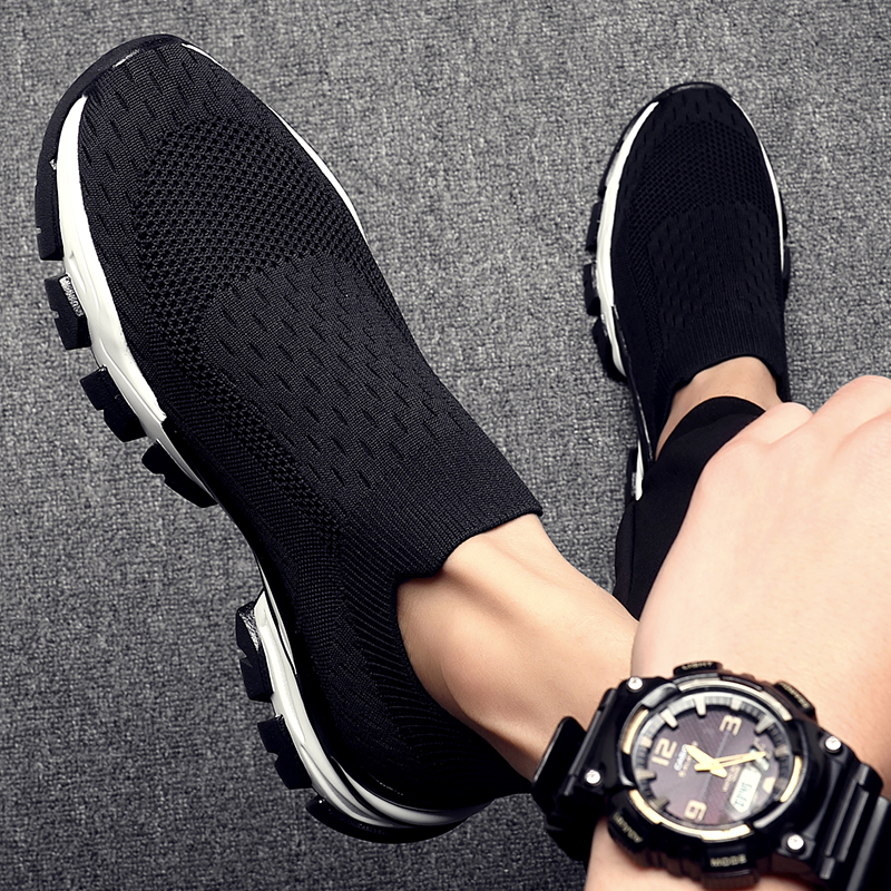 夏季一腳蹬網面鞋男鏤空網鞋透氣輕便薄款運動鞋春秋款針織鞋男士