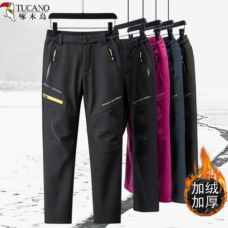 啄木鳥戶外防風防水衝鋒褲男冬季新款加絨加厚防寒保暖長褲女大尺碼