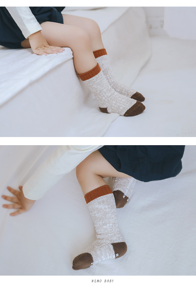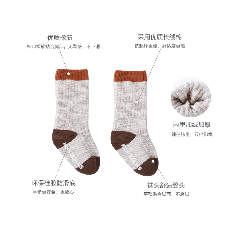20新款秋冬双针中筒防滑婴儿袜子宝宝防滑地板袜儿童加厚粗针袜子