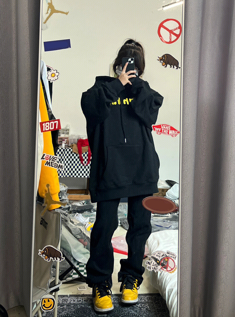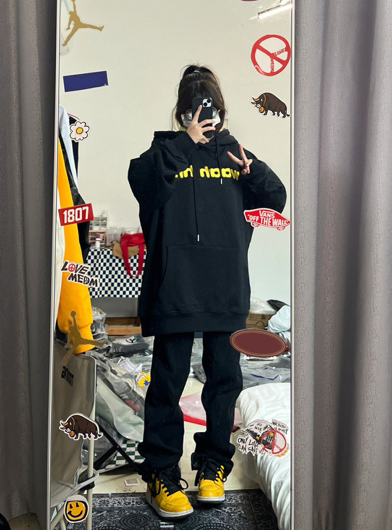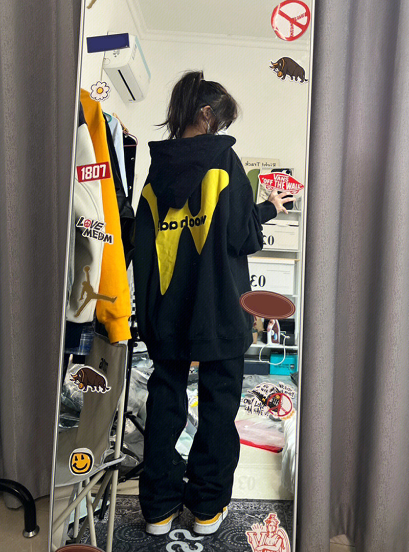 國潮牌oversize高街衛衣女春秋薄款寬鬆美式復古小眾秋冬街頭外套