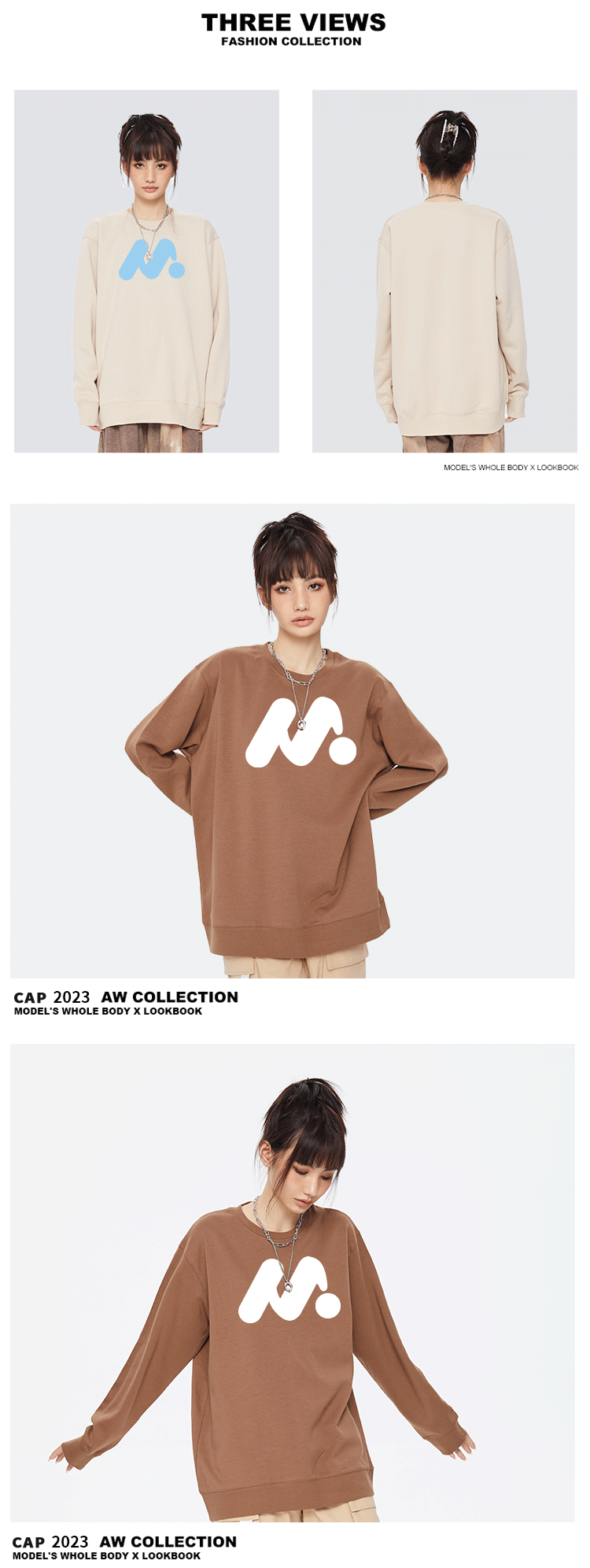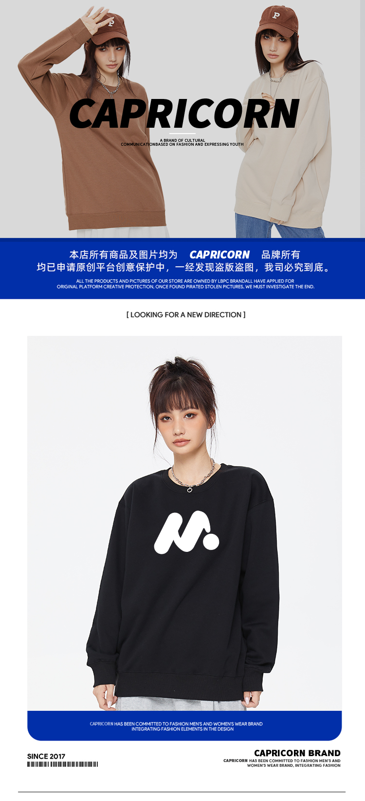 CAPRICORN圓領字母小眾設計休閒厚棉女2023新款加絨加厚長袖上衣
