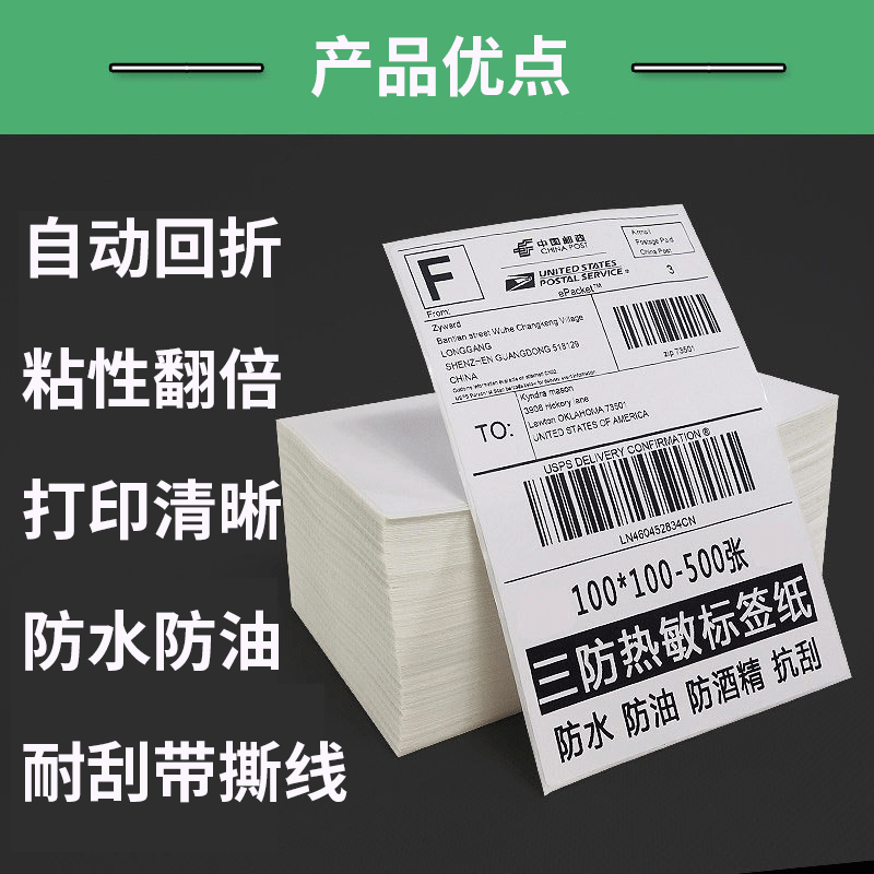 三防折叠热敏纸100150不干胶标签热敏纸100x100e邮宝快递物流面单