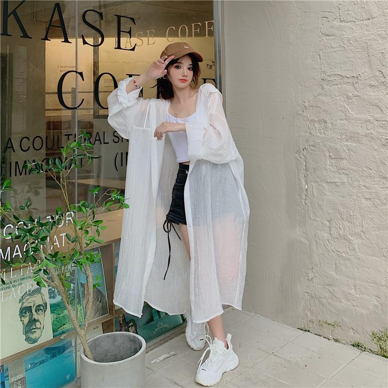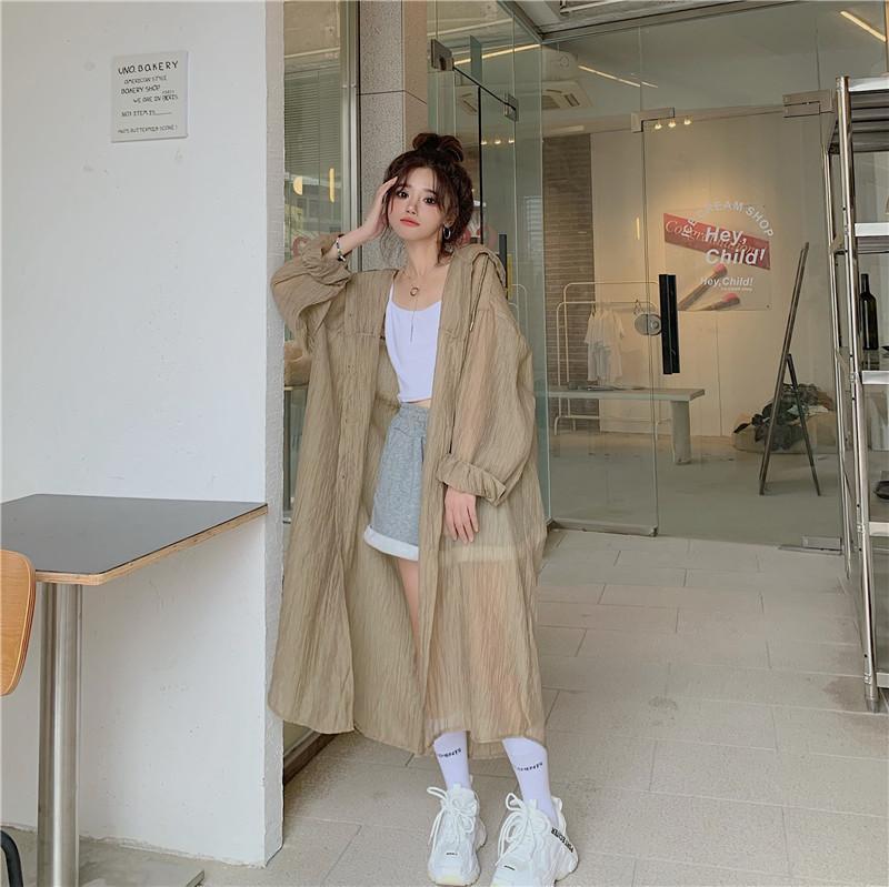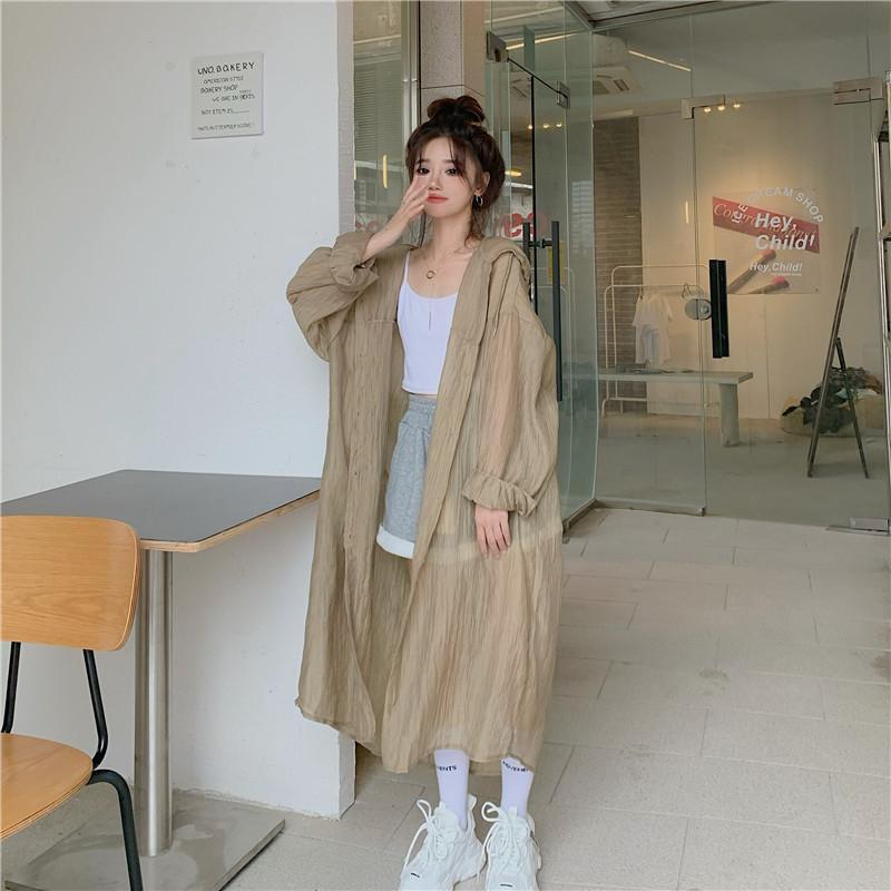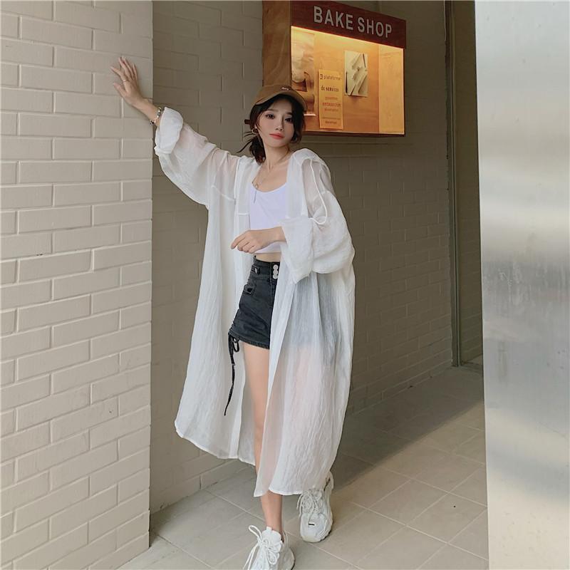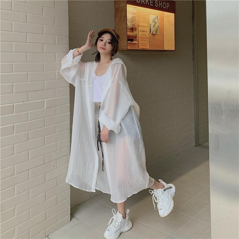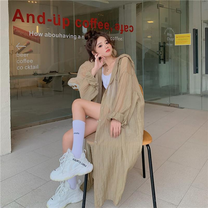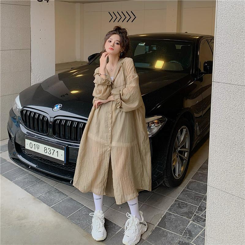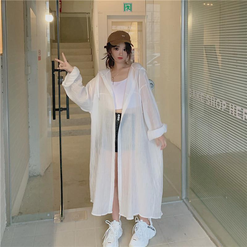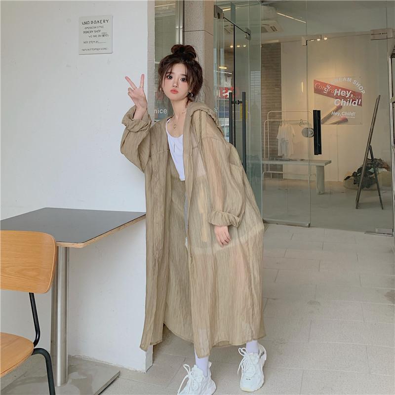 2-300斤中長版雪紡連帽防曬衣男女外穿夏季大尺碼寬鬆薄款開衫外套