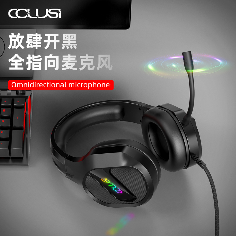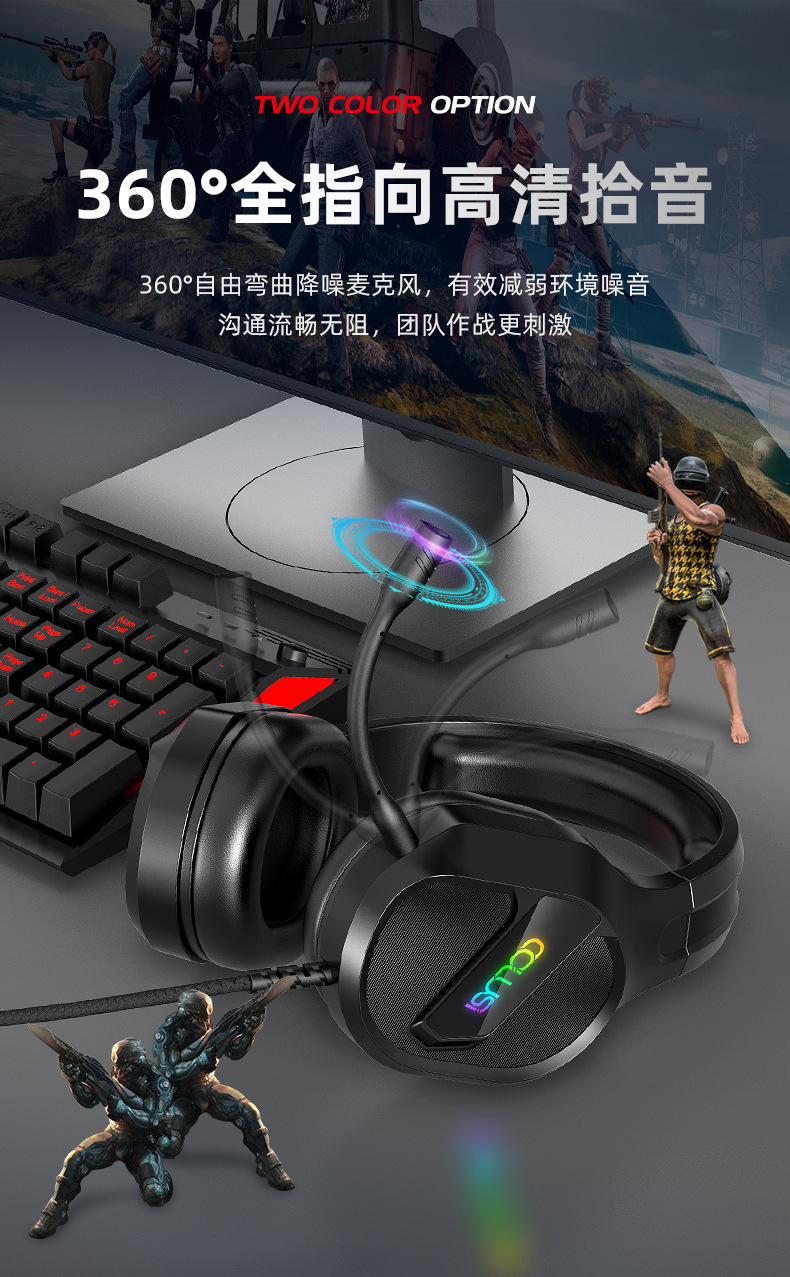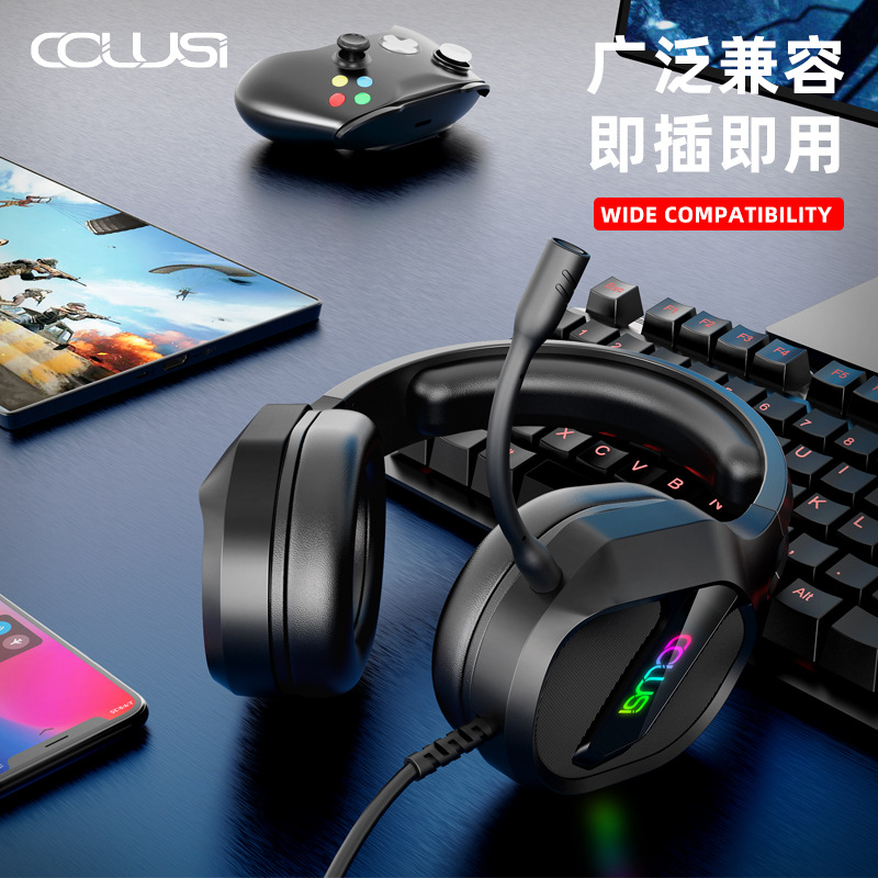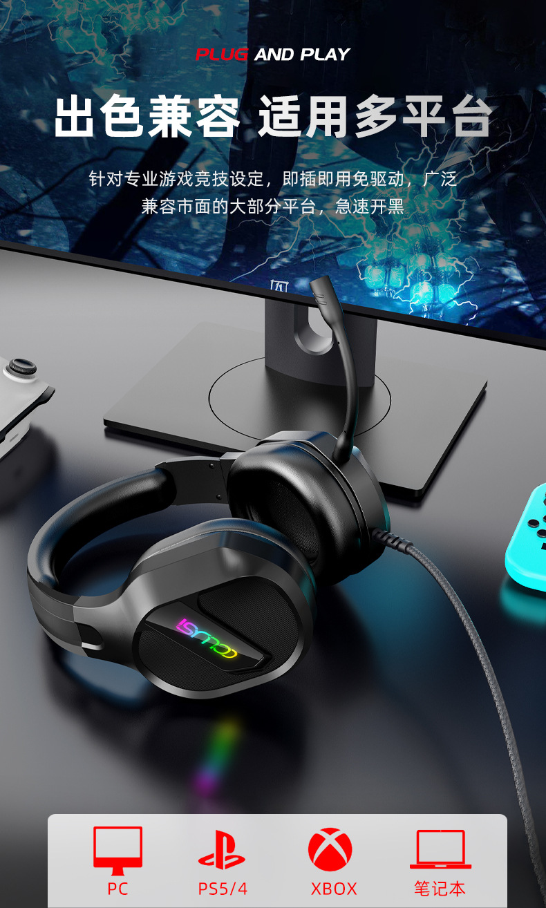跨境电脑耳机头戴式电竞游戏降噪有线耳麦台式笔记本手机吃鸡话筒