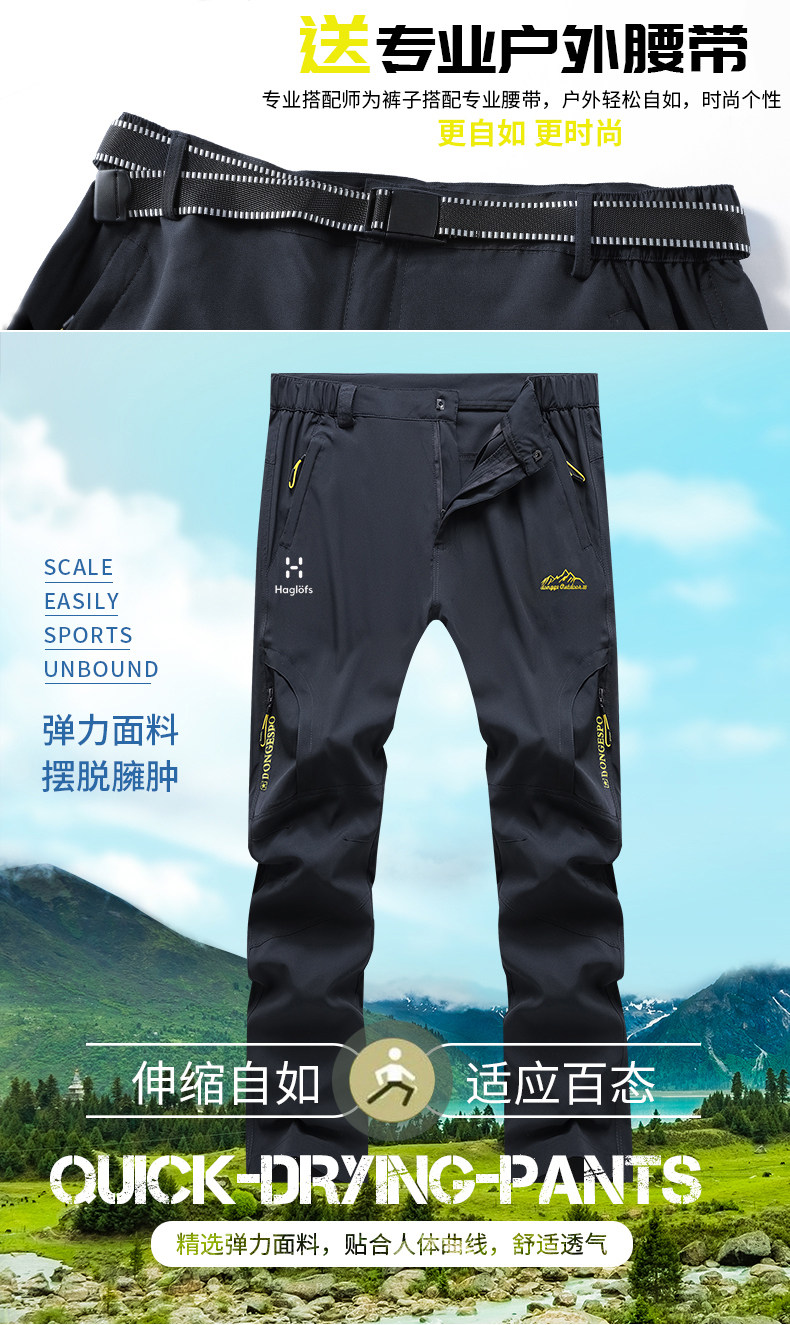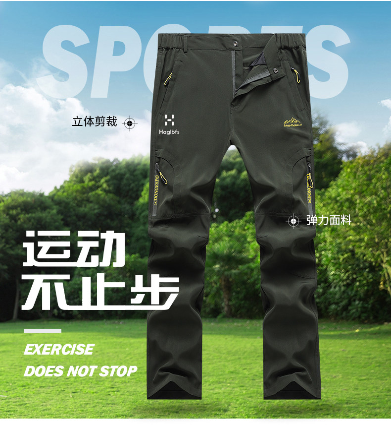 火柴棍衝鋒褲男士夏季薄款工裝直筒速乾褲長褲戶外彈力登山運動褲