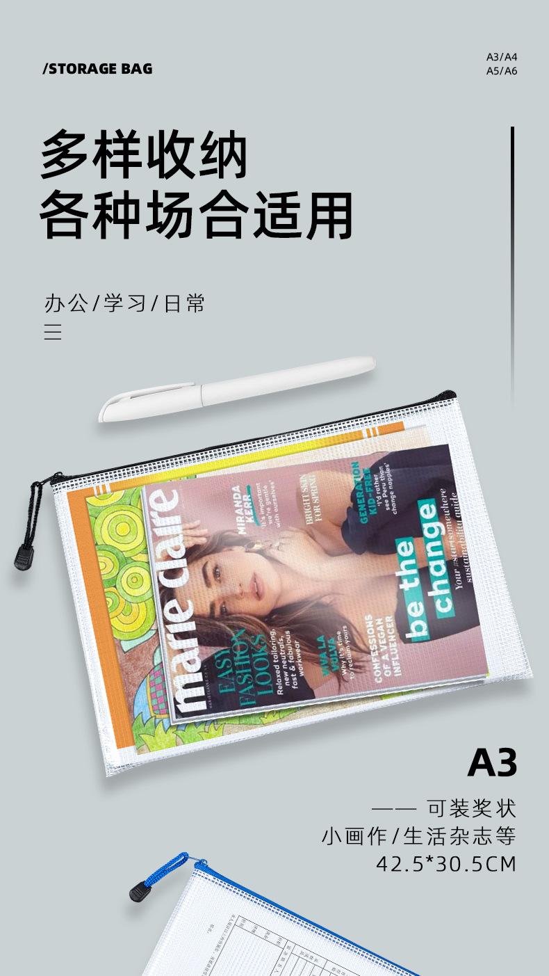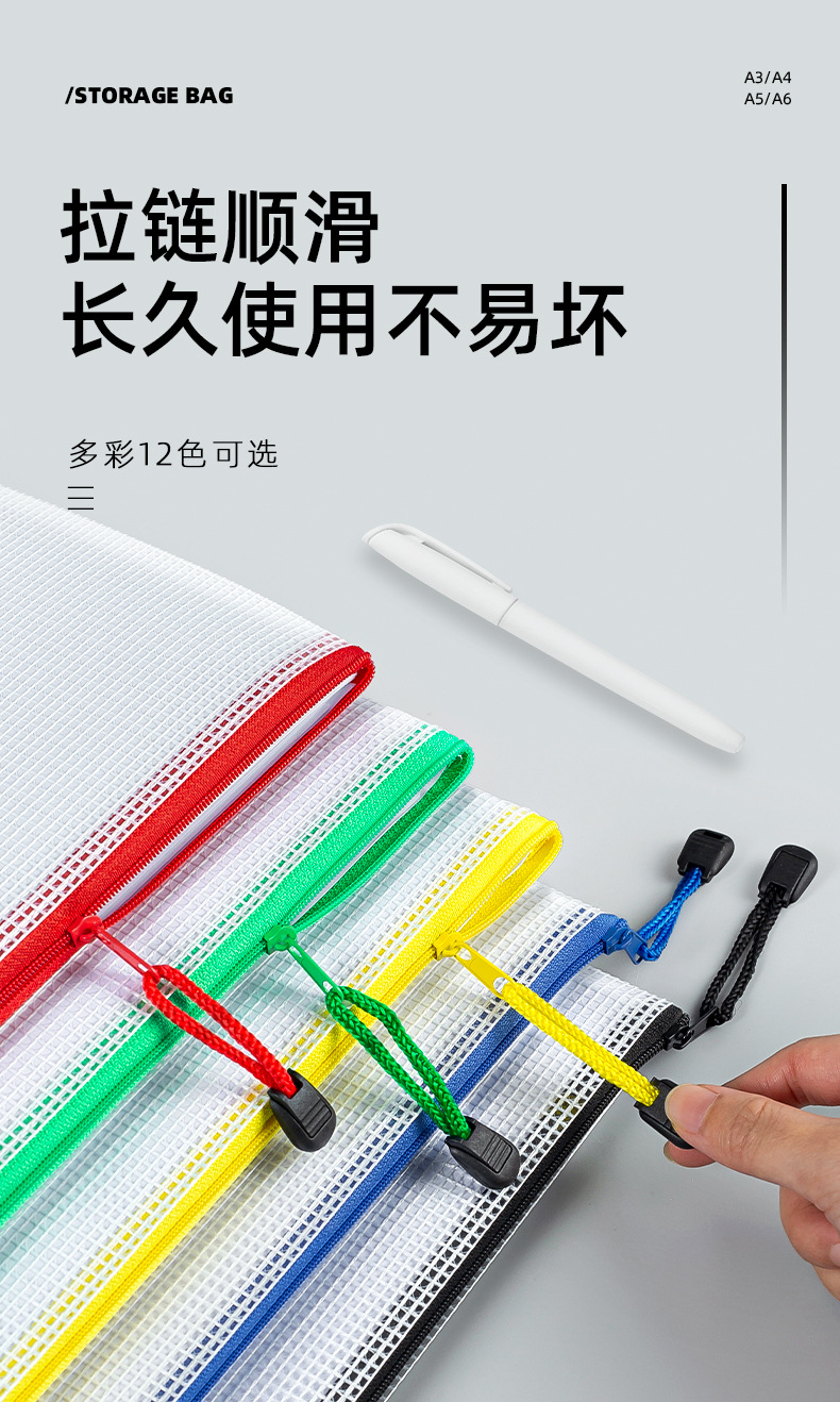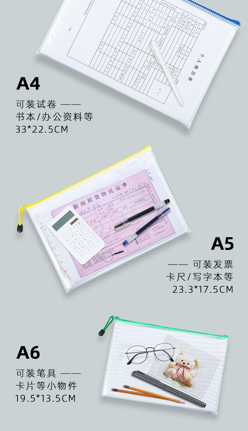 a4网格袋拉链文件袋透明考试袋办公文件收纳袋a5票据袋资料袋批发