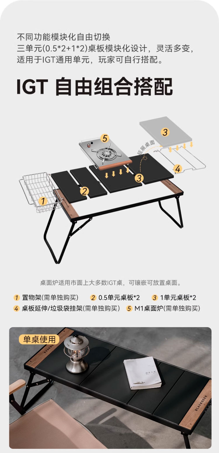 黑鹿IGT桌子旅行家模塊化組合桌戶外露營野餐摺疊桌椅裝備用品