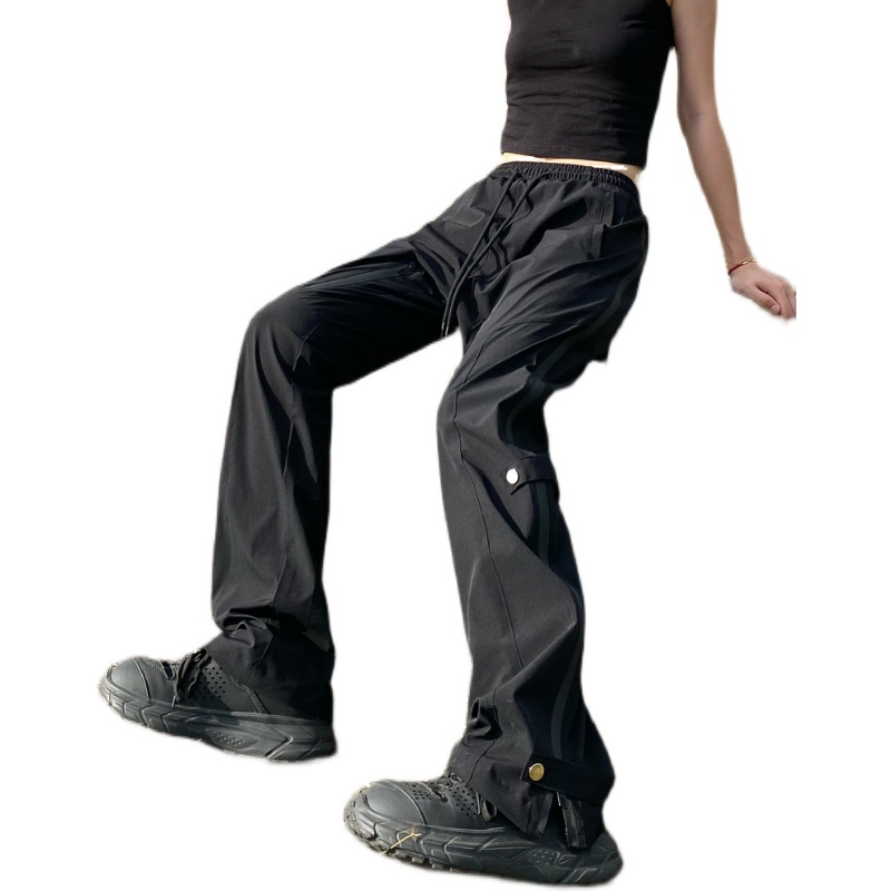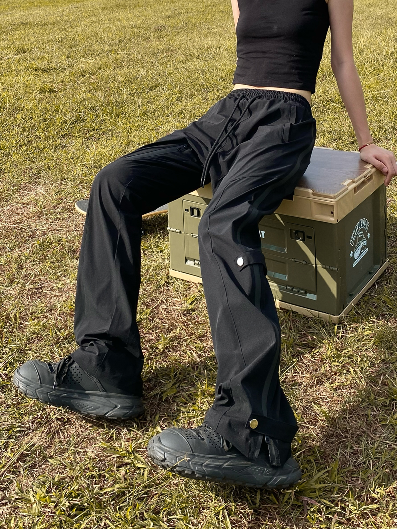 美式街頭衝鋒褲女潮牌拉鍊直筒微喇高街機能風vibe小眾工裝長褲子