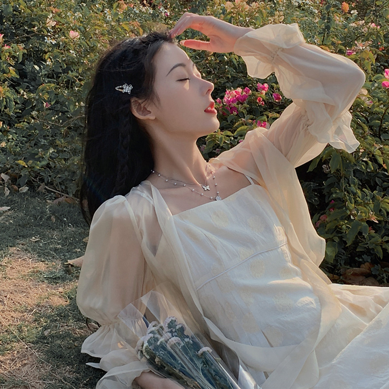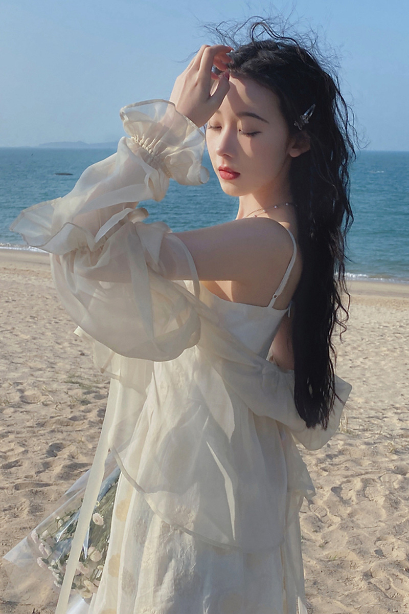 夏季雪紡防曬衣女長袖披肩時尚配吊帶裙子小開衫上衣人魚姬薄外衣
