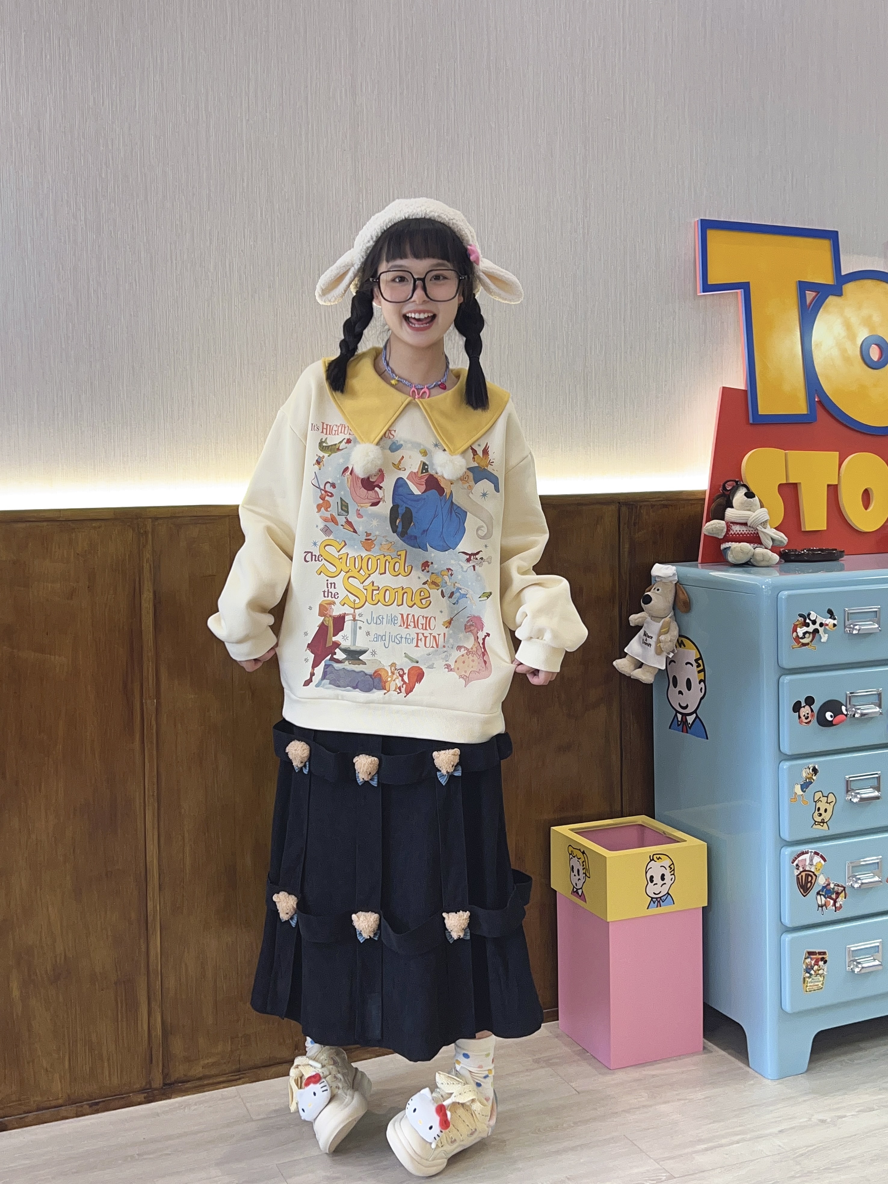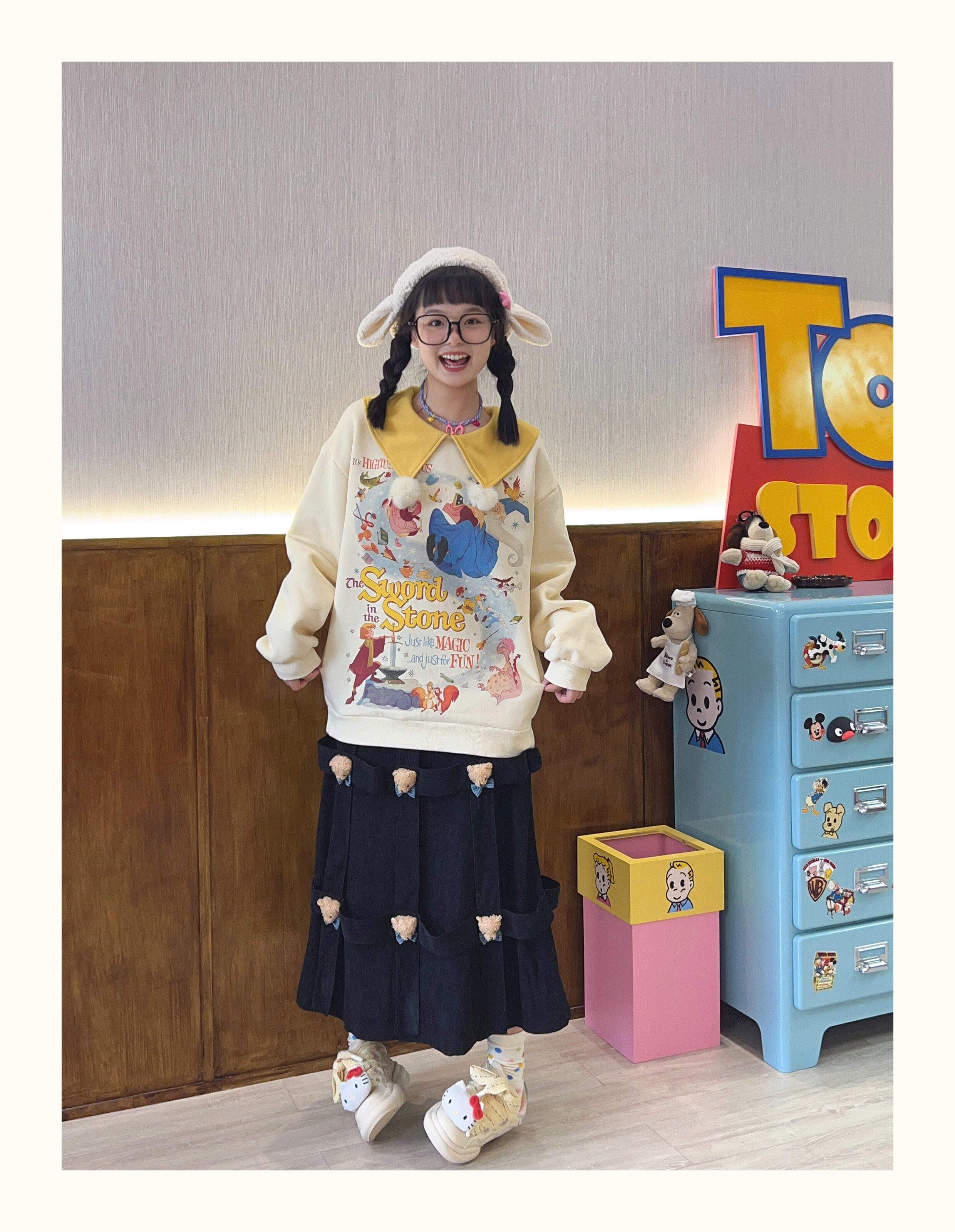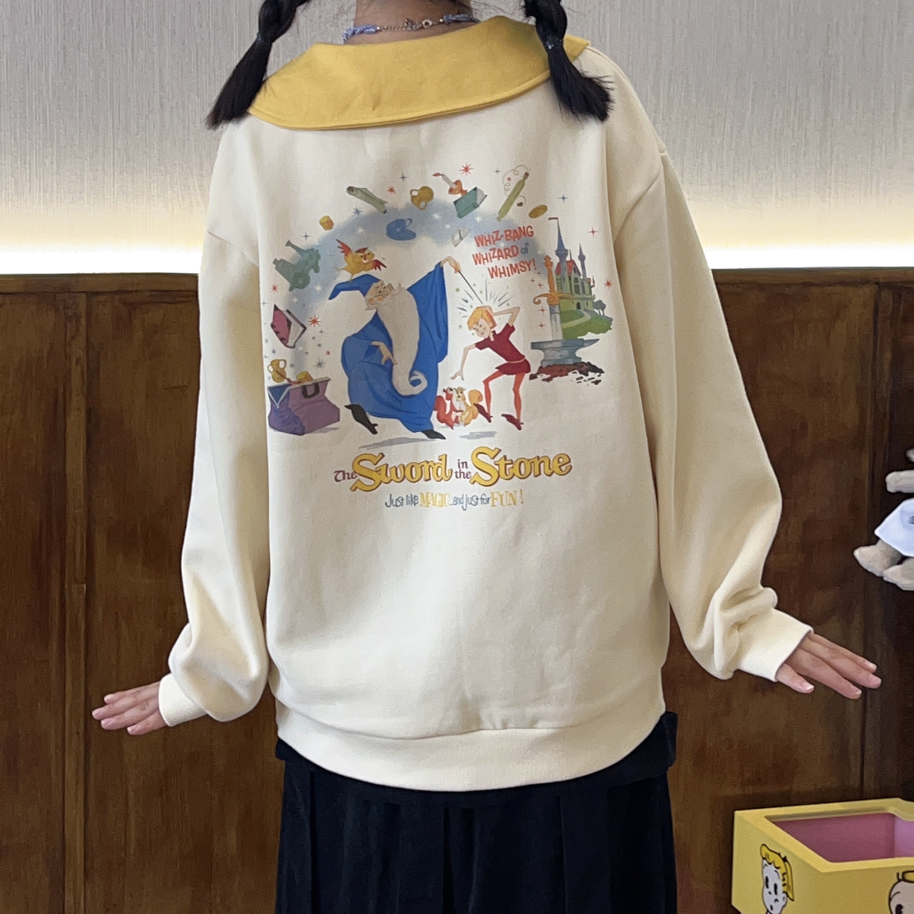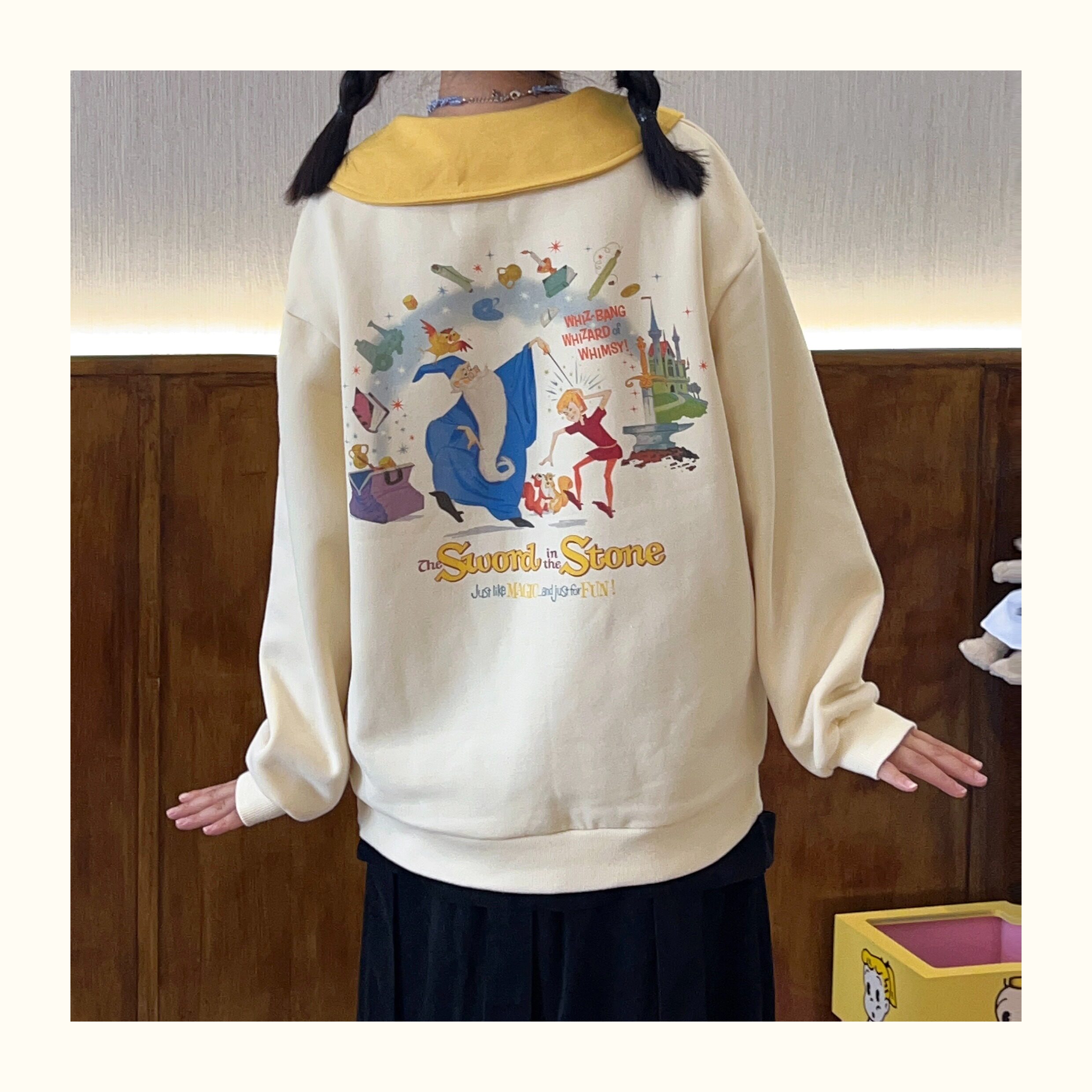 Robootoo原創美式童趣印花翻領小眾可愛減齡套頭加絨衛衣2023秋冬