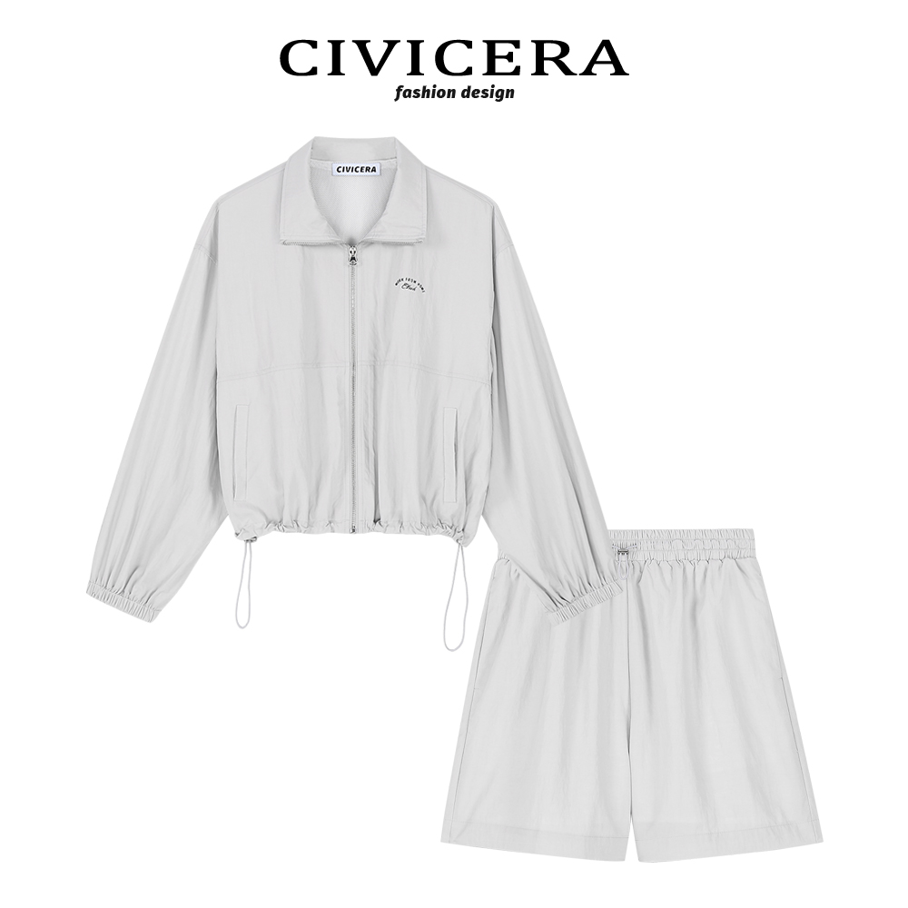 CIVICERA美式防曬套裝女春秋夏新款抽繩短款外套衝鋒衣短褲兩件套