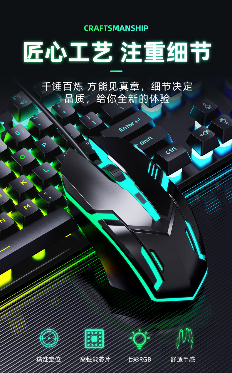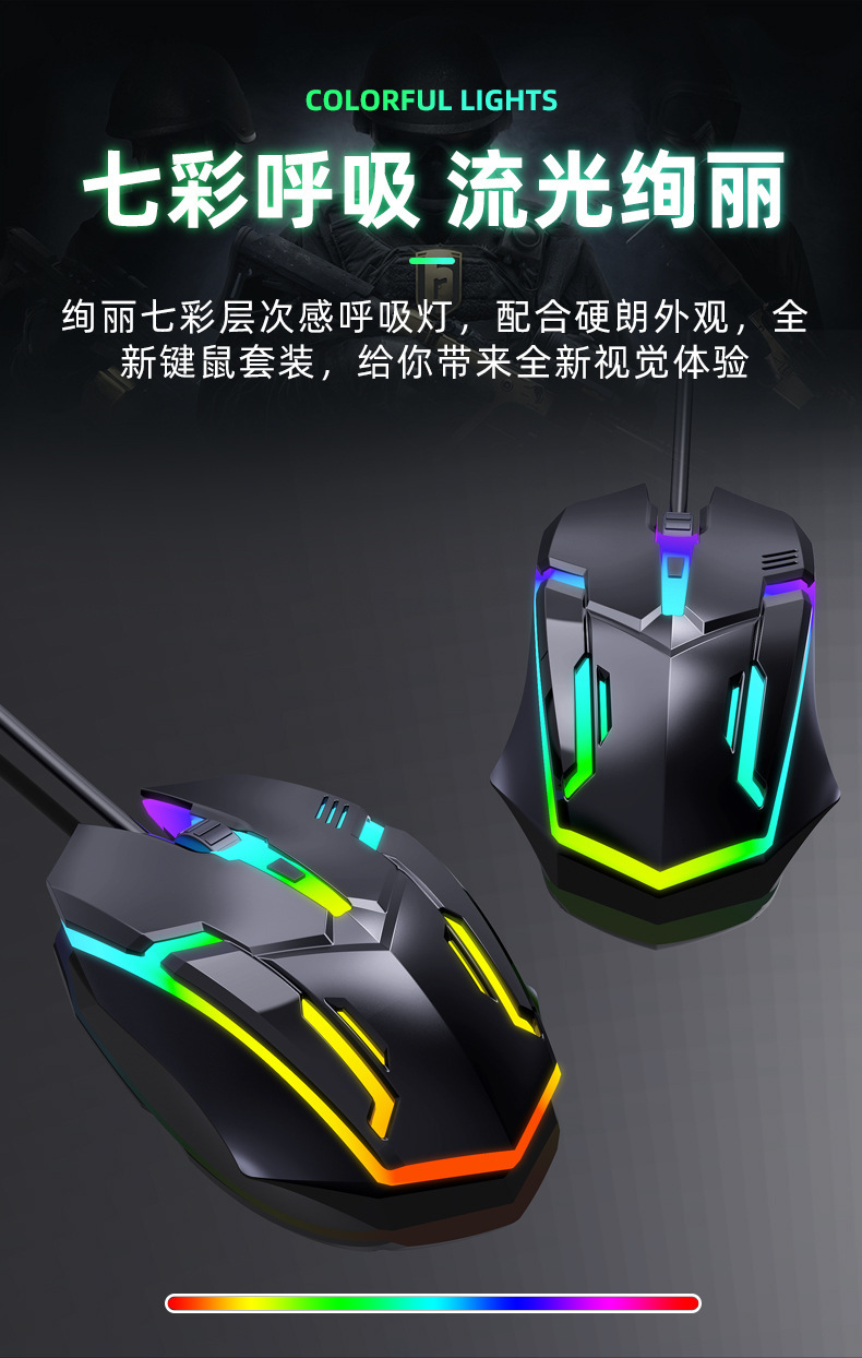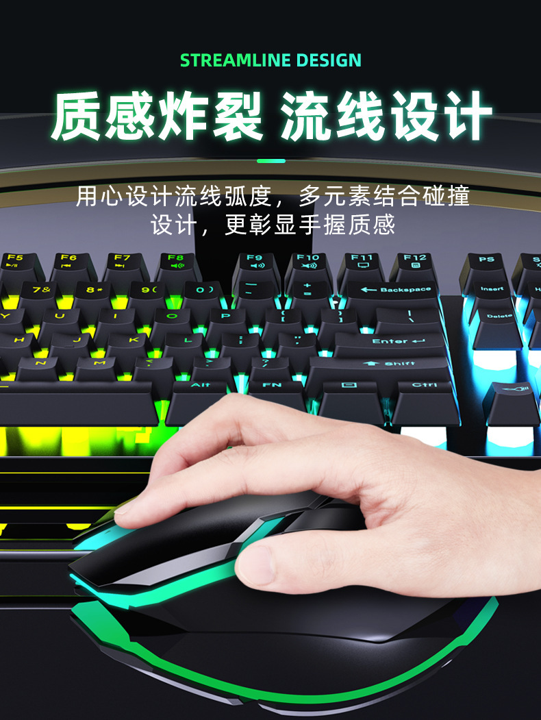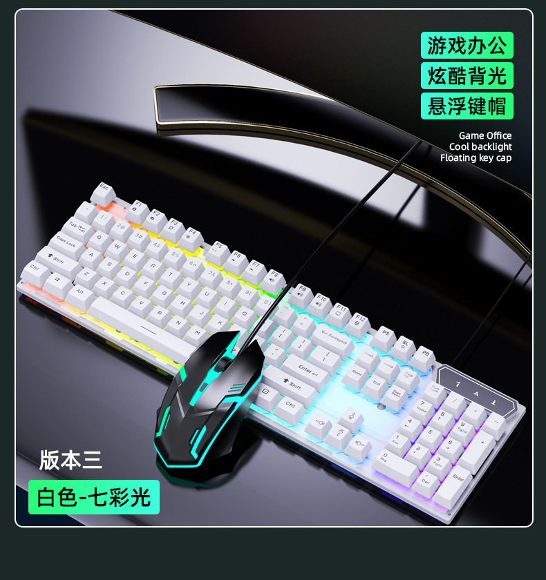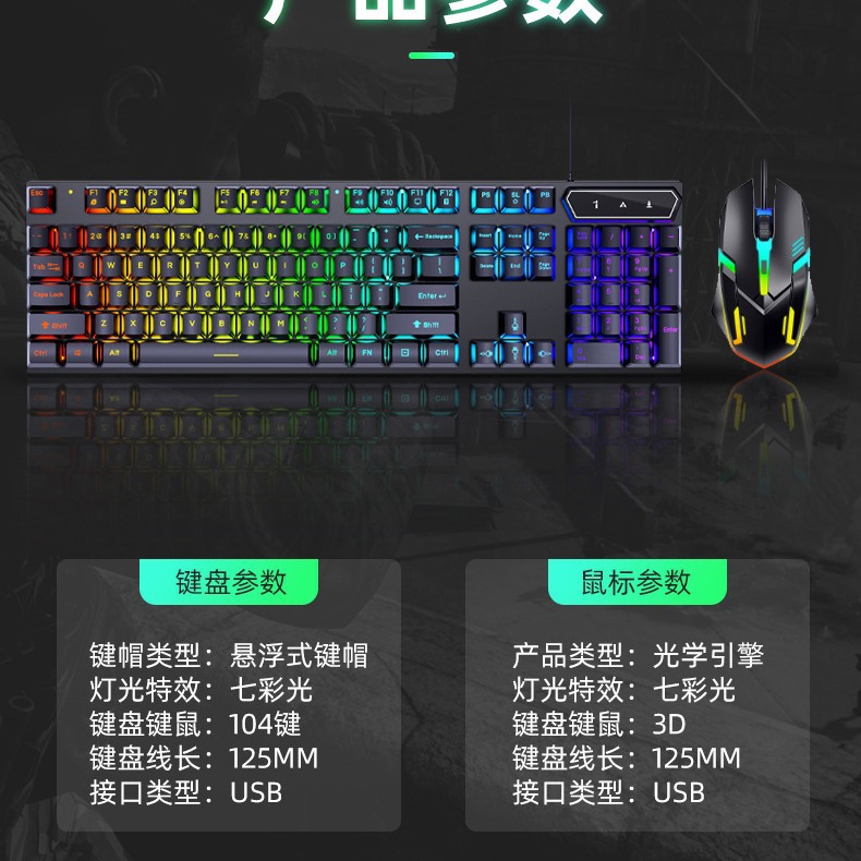有线发光键盘鼠标套装 USB悬浮机械手感 游戏键盘鼠标套装