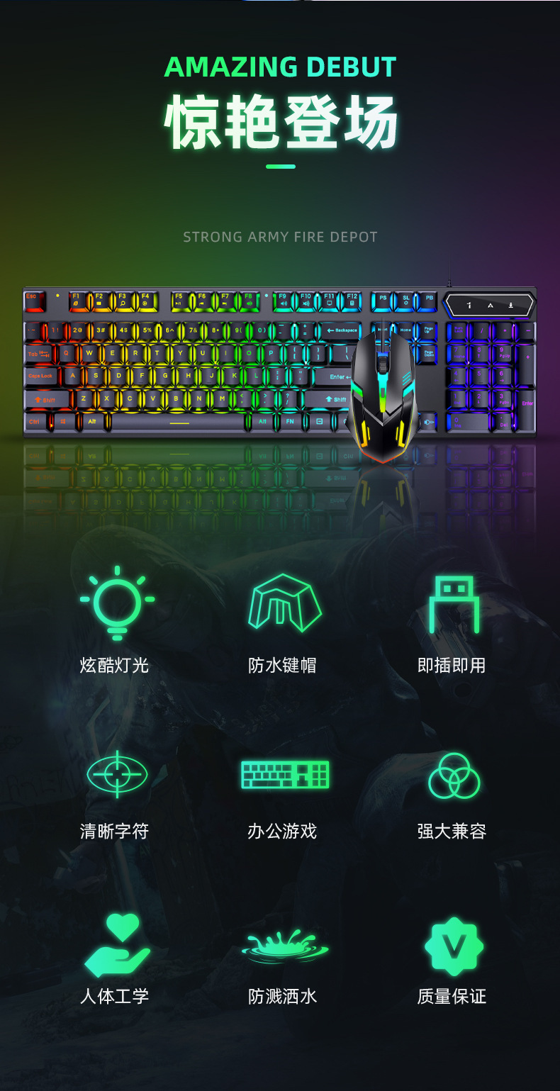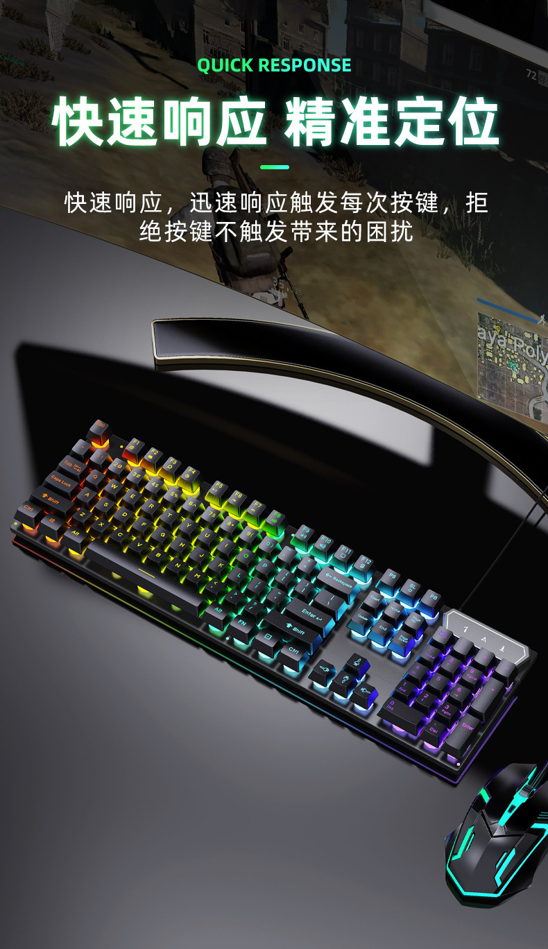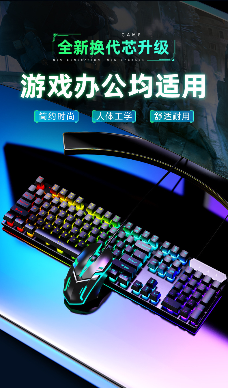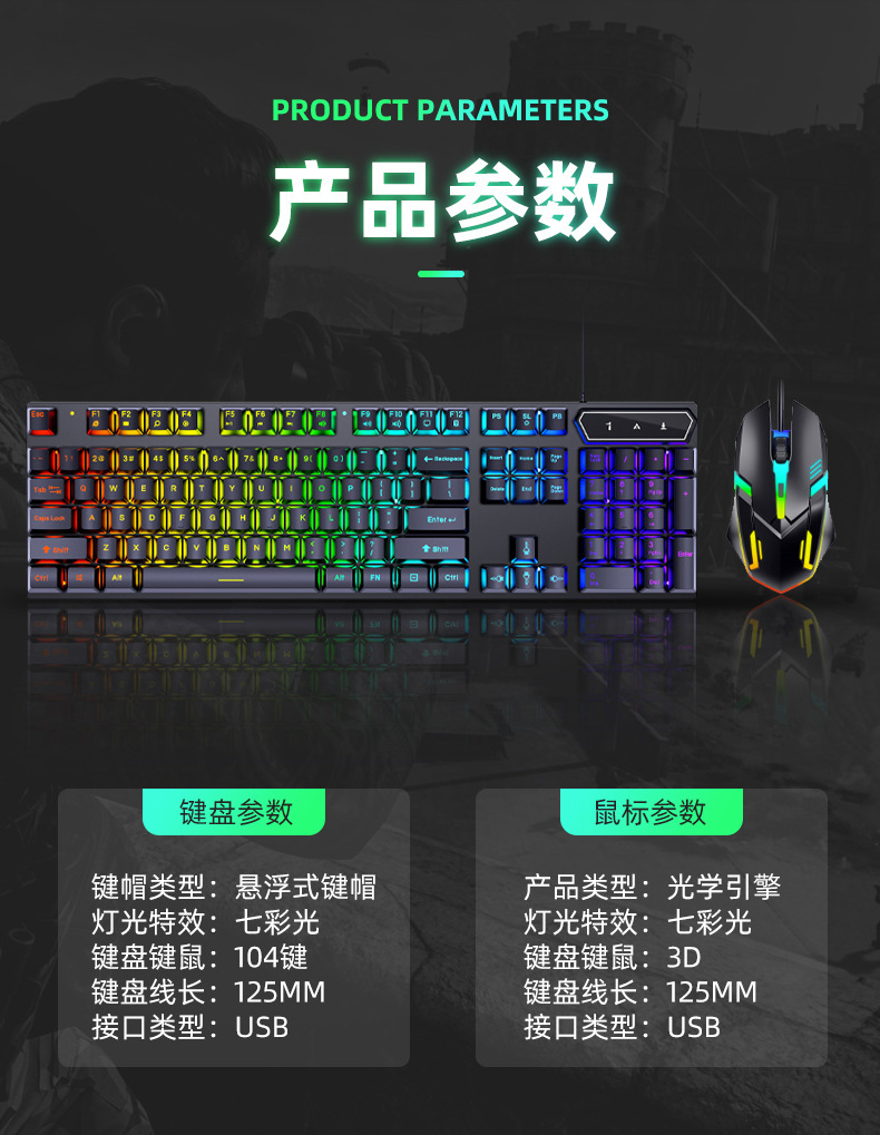 有线发光键盘鼠标套装 USB悬浮机械手感 游戏键盘鼠标套装