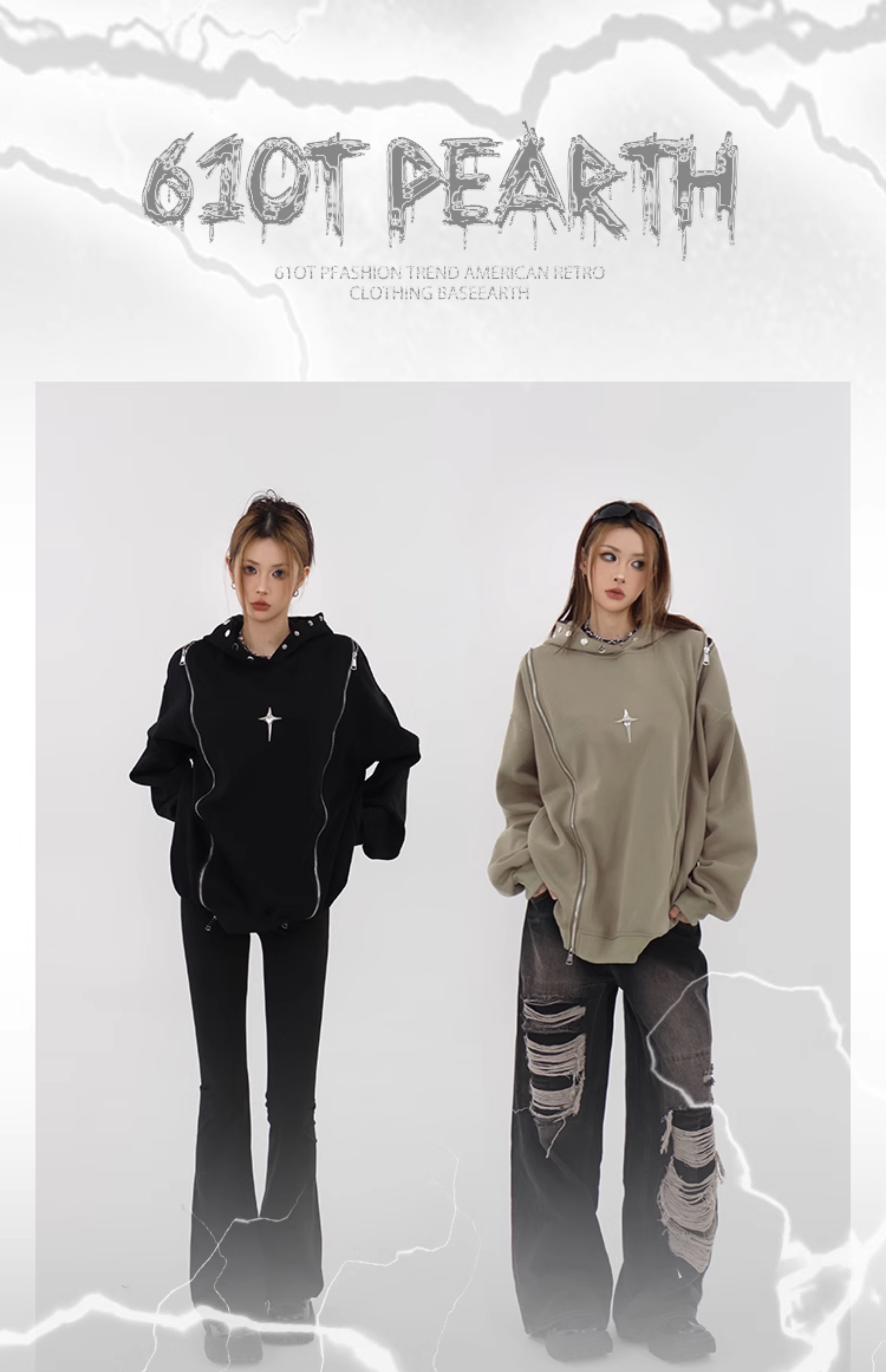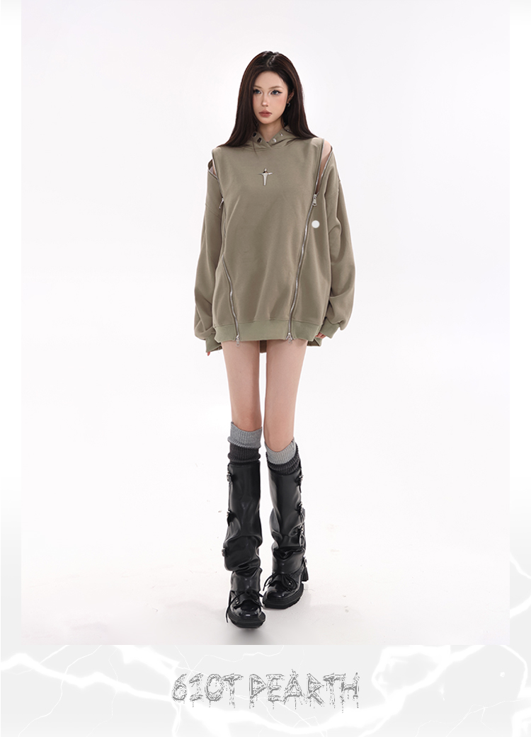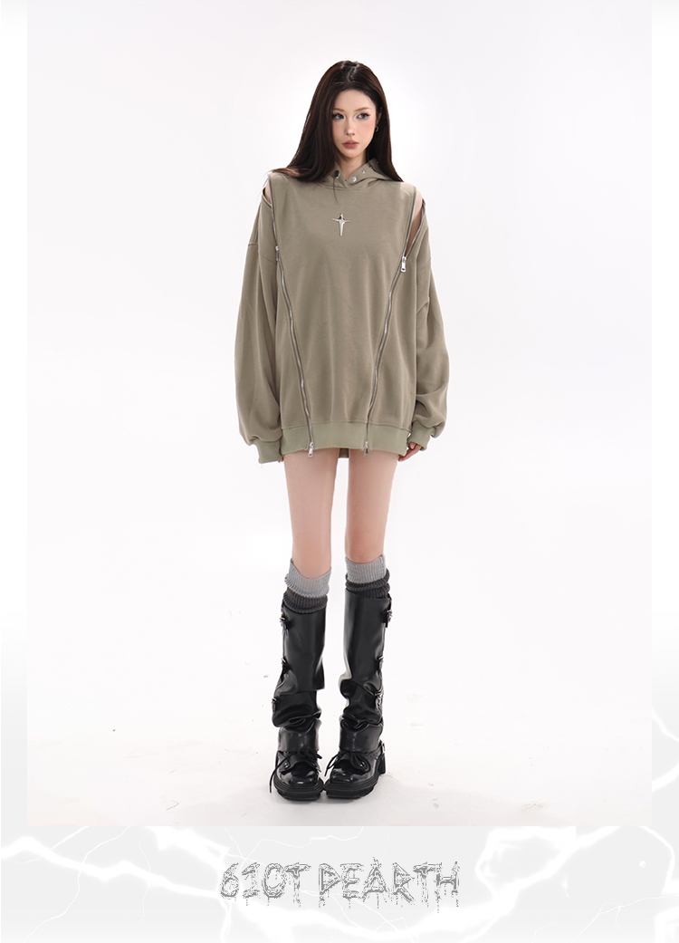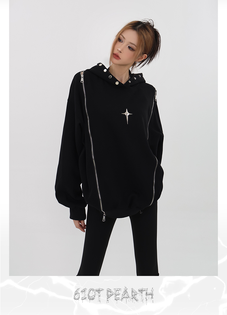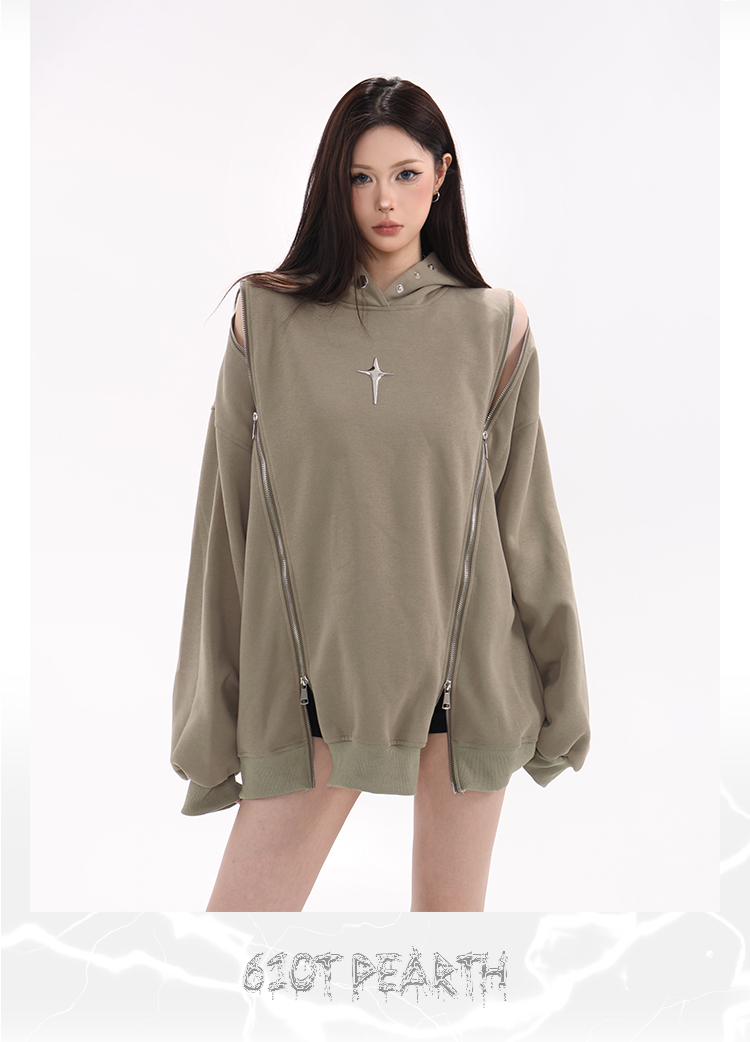 61OT PEARTH美式復古連帽運動衫外套女秋2023新款寬鬆oversize潮牌
