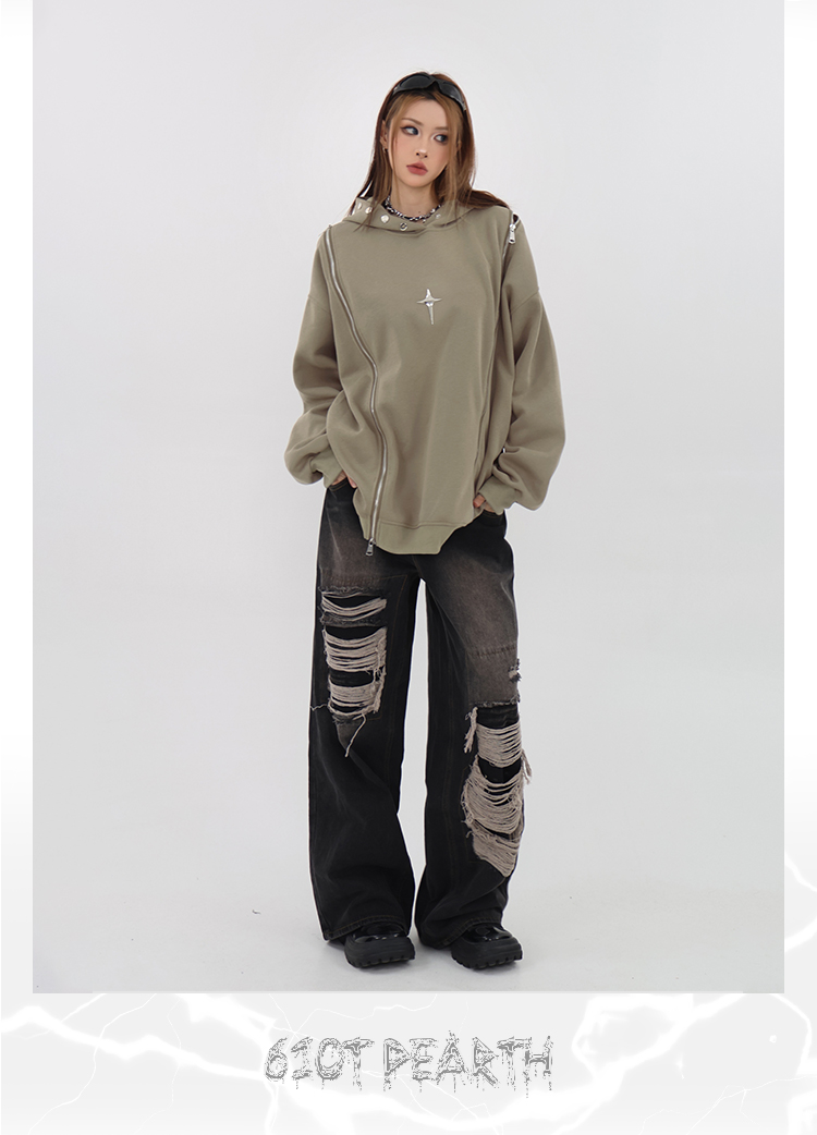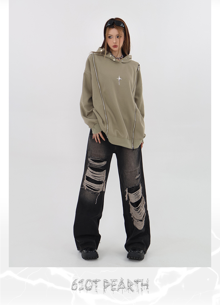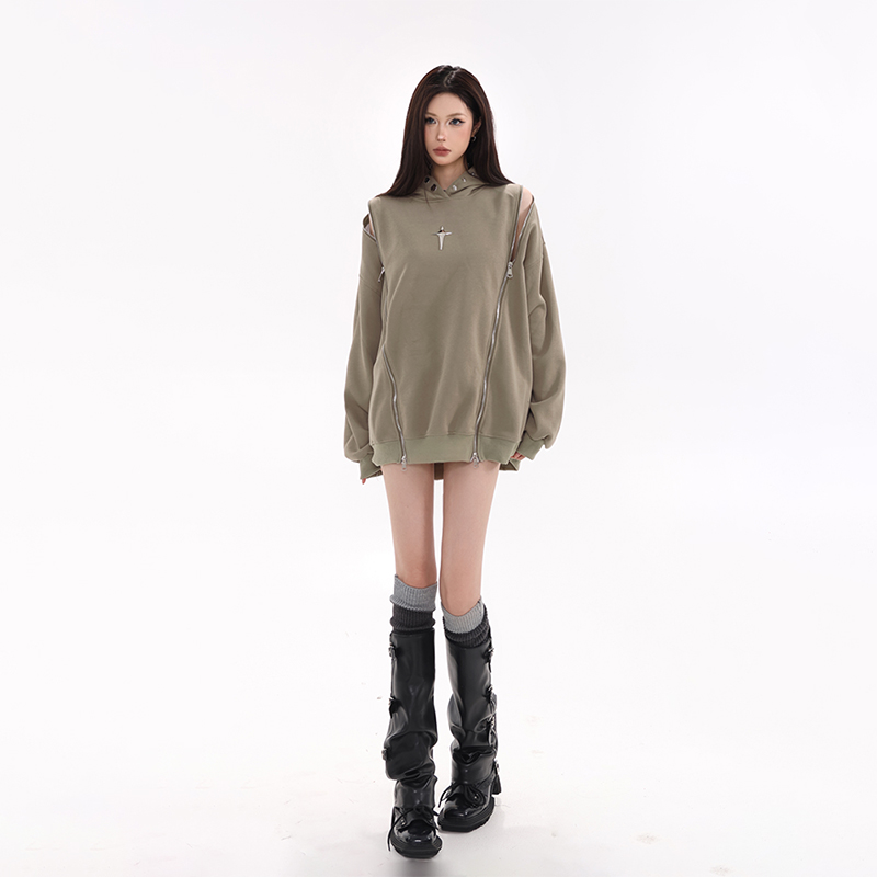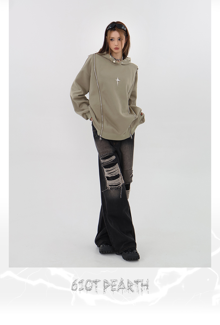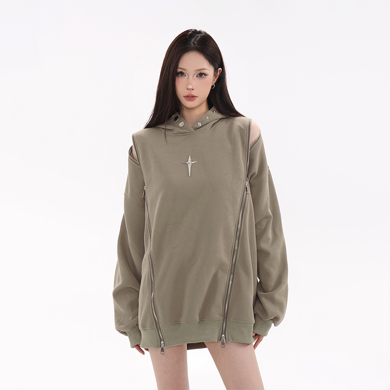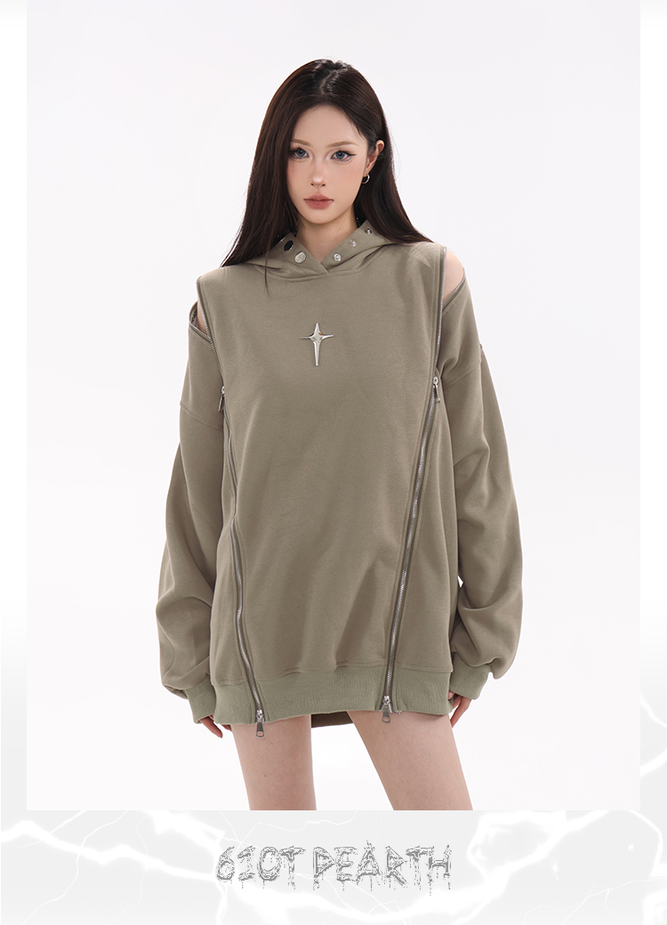 61OT PEARTH美式復古連帽運動衫外套女秋2023新款寬鬆oversize潮牌