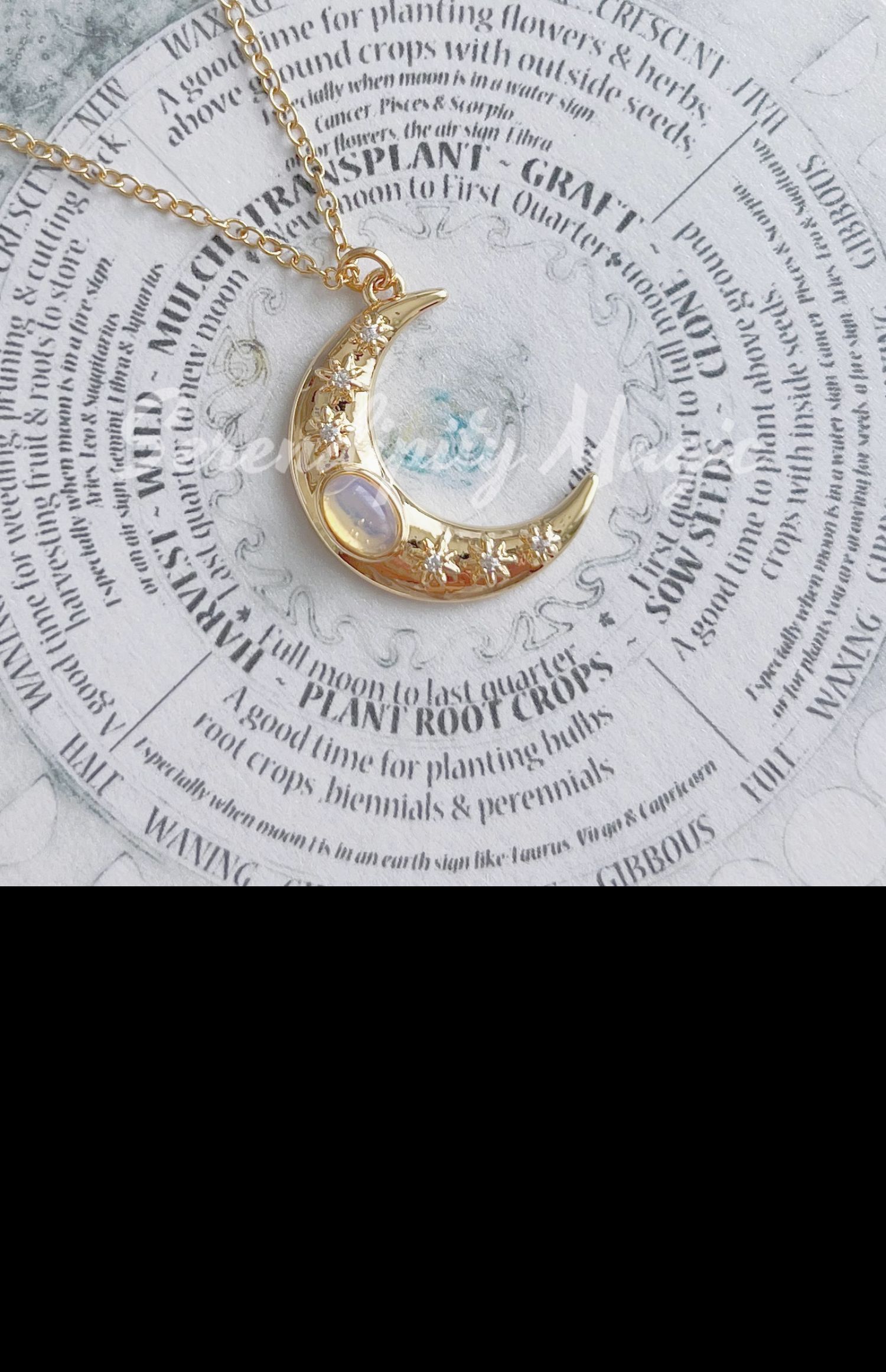 【新月New moon】ins歐美風格合金18k鍍金天然月亮能量項鏈裝飾品