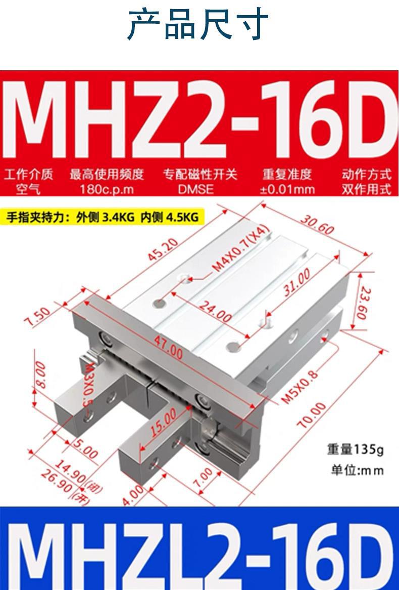 FY5E机械手手指气缸治具配件16D抱片夹头平行夹爪 加宽夹口可调