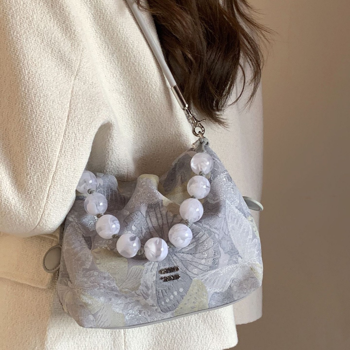 南风Chio2nd 清池蝶舞水桶包包女士2024新款新中式缎面单肩斜挎包