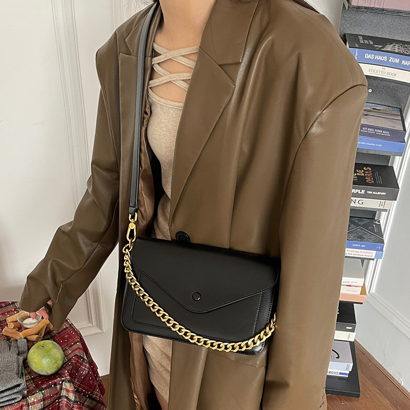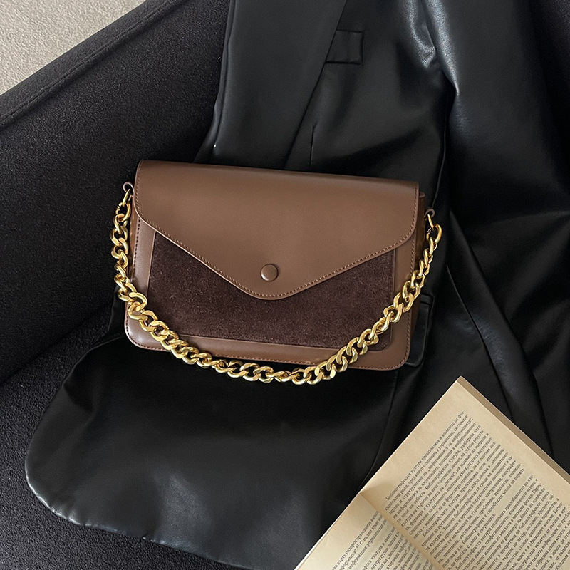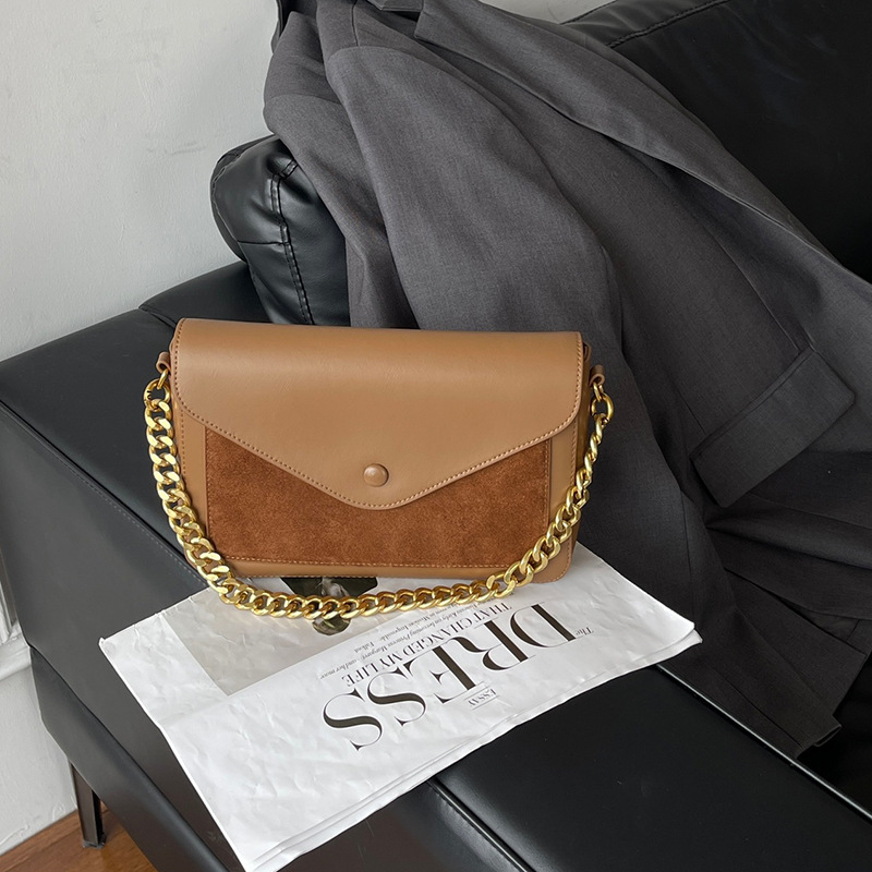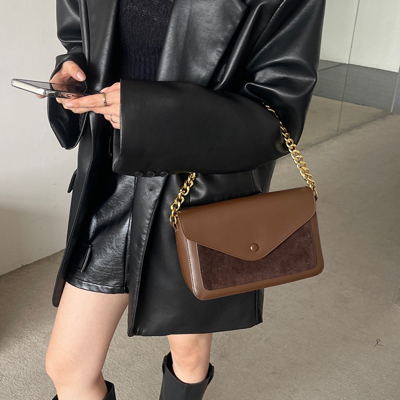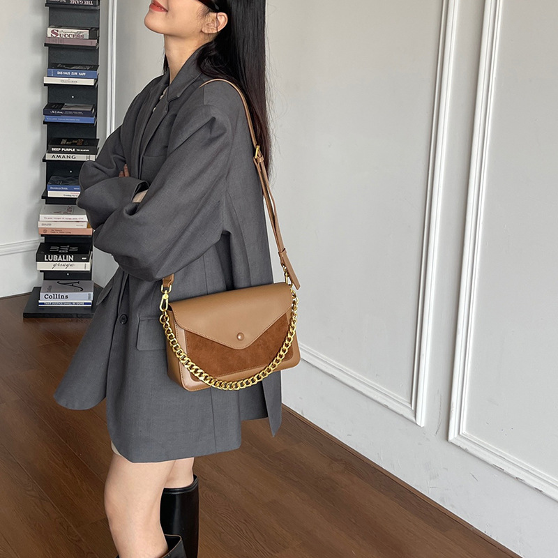 链条包2024新款轻奢小众磨砂翻毛牛皮单肩腋下信封包真皮斜挎女包