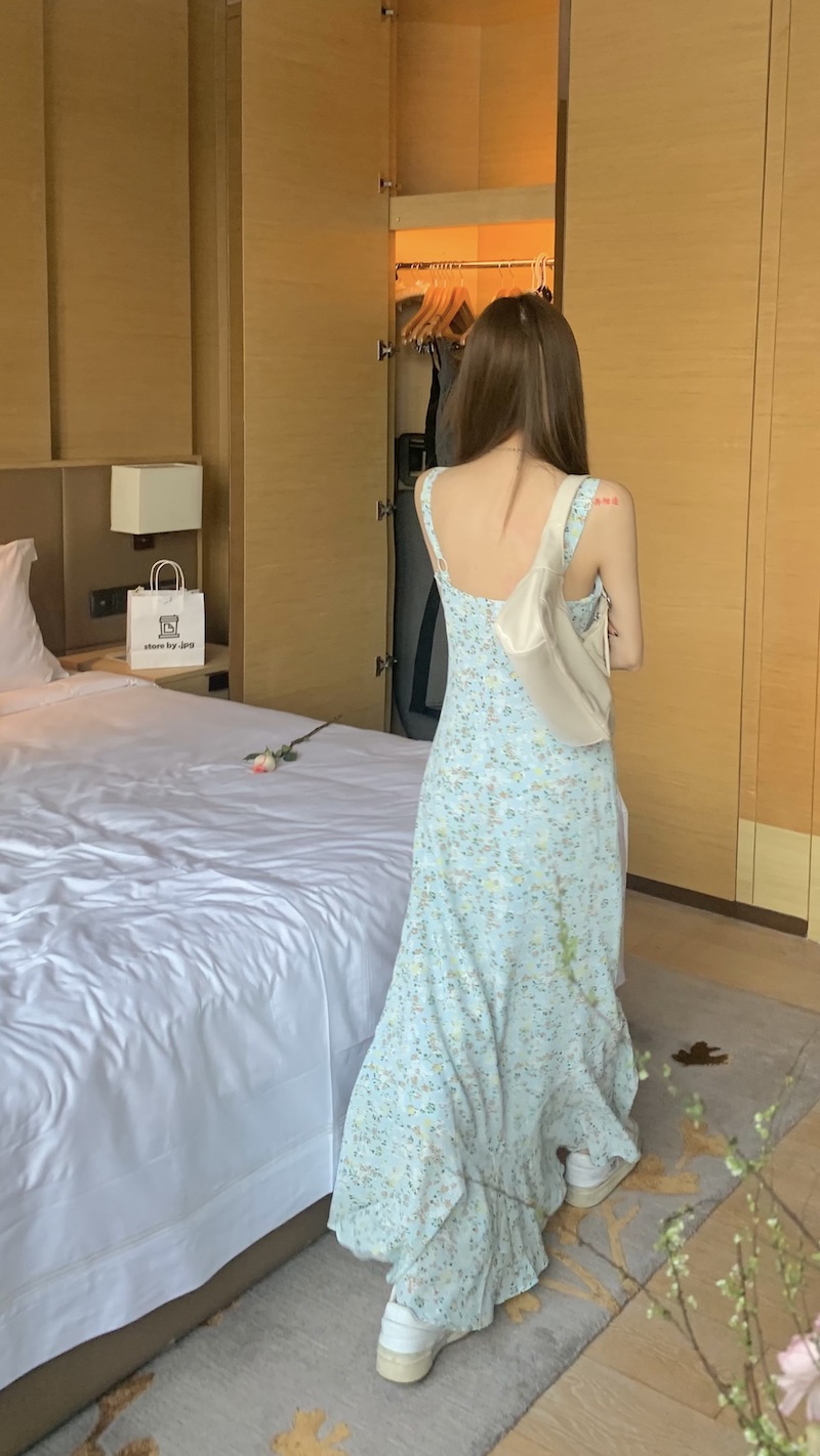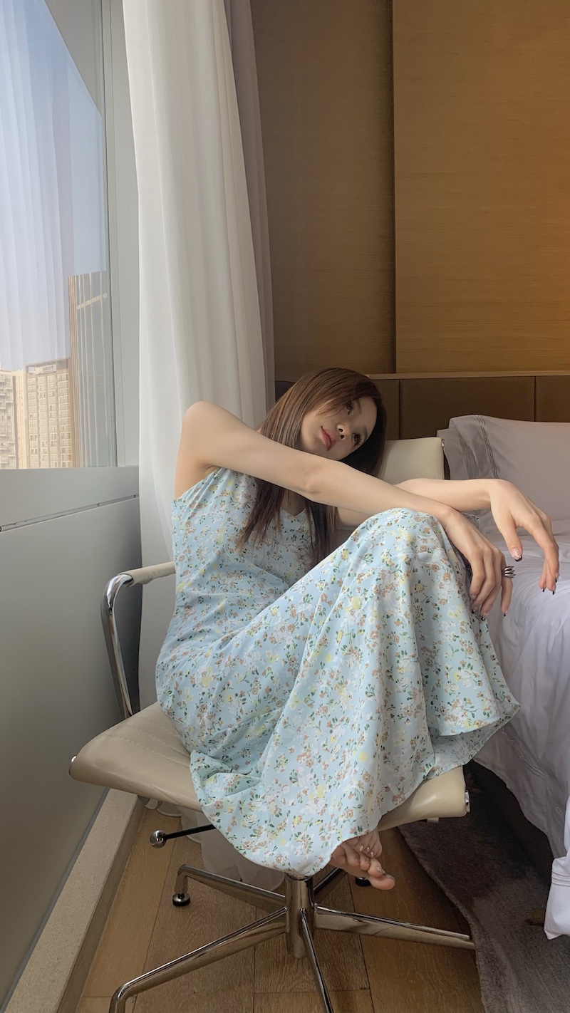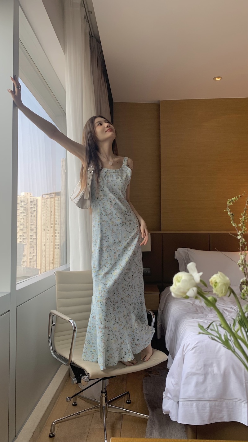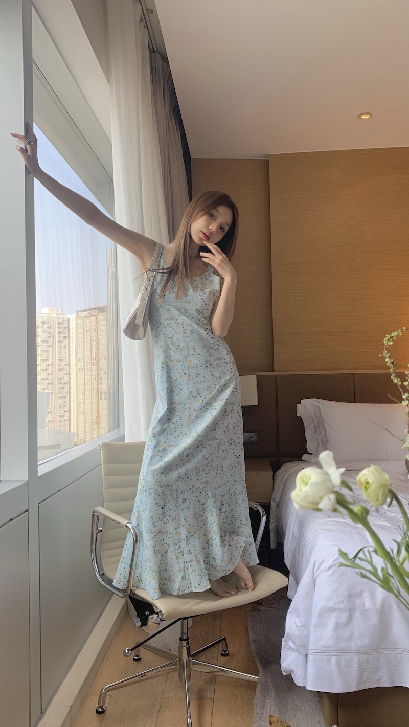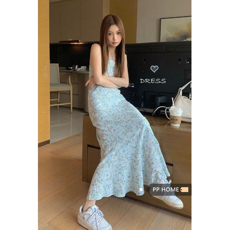 PPHOME甜柔安妮~修身顯瘦中長版小碎花雪紡洋裝女打底背心裙子