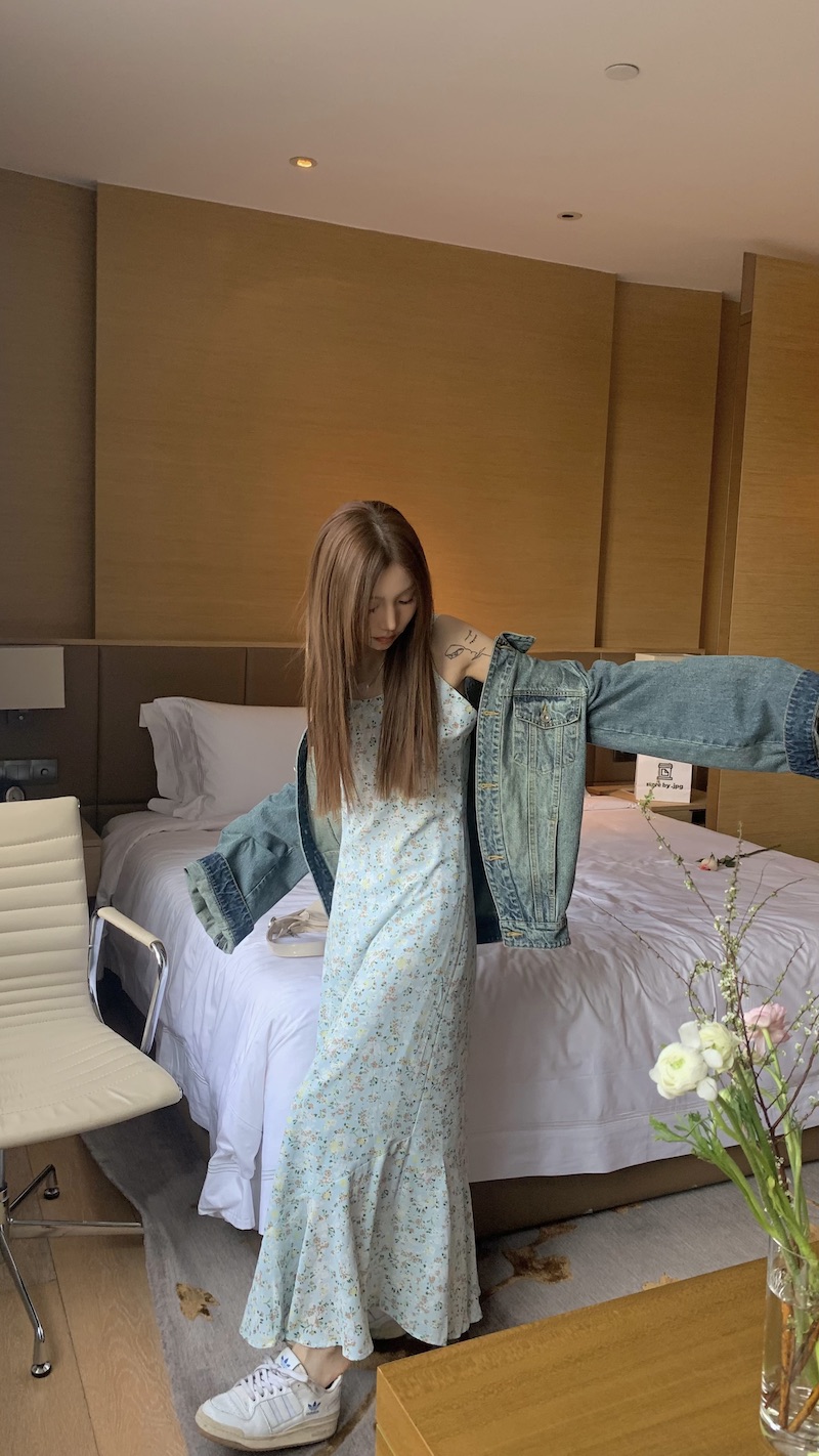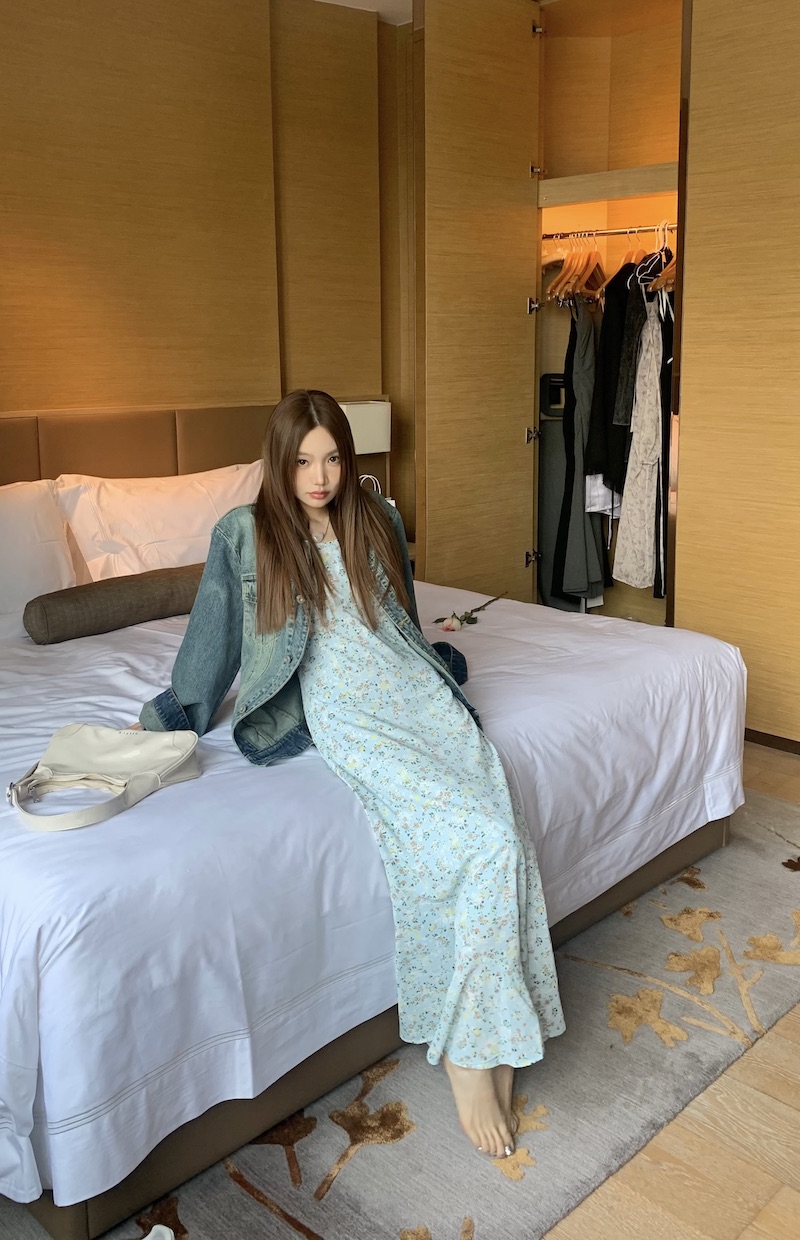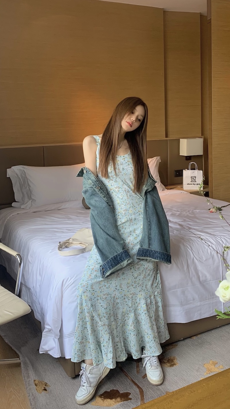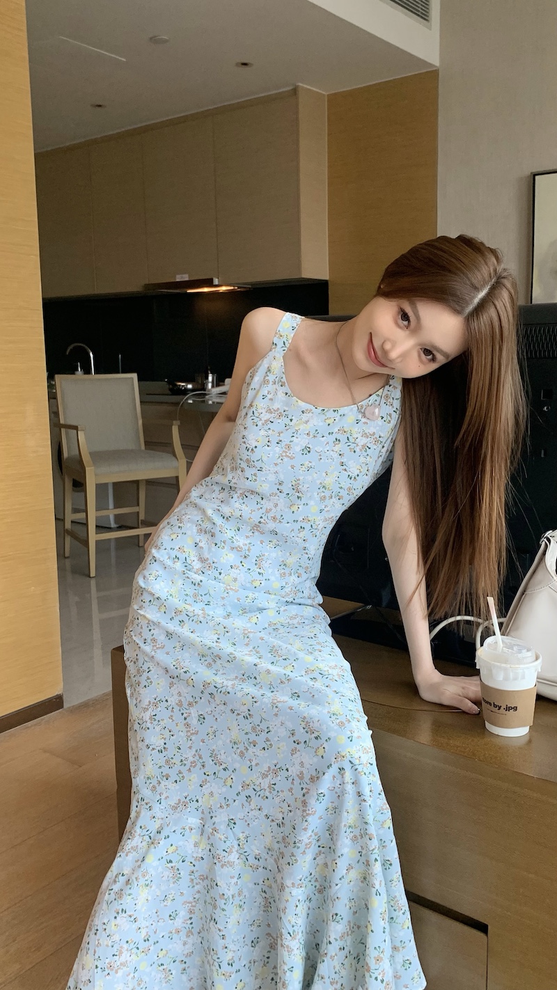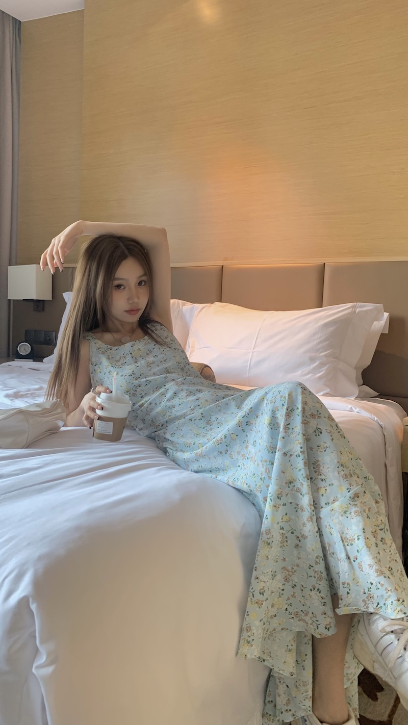 PPHOME甜柔安妮~修身顯瘦中長版小碎花雪紡洋裝女打底背心裙子