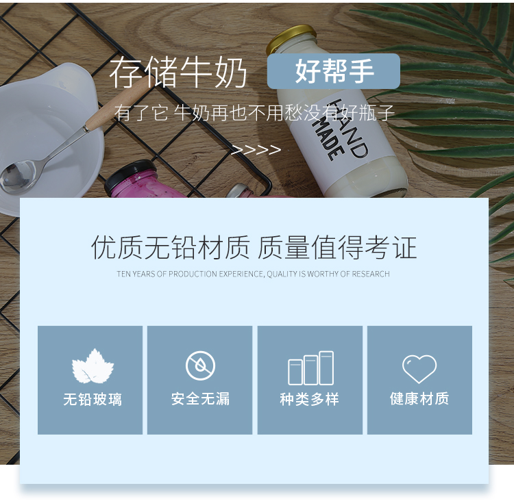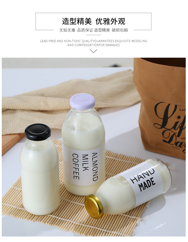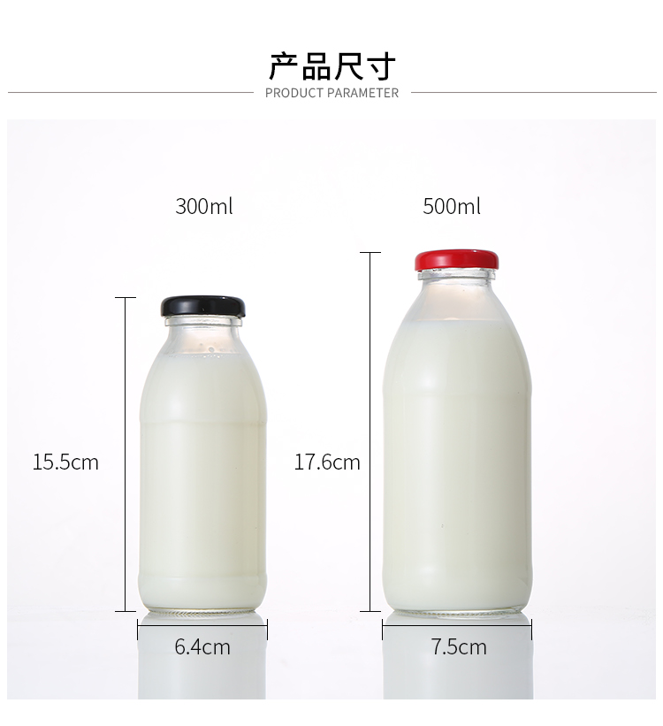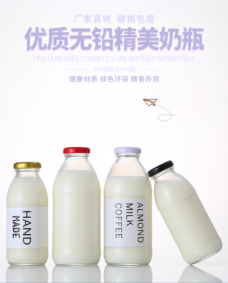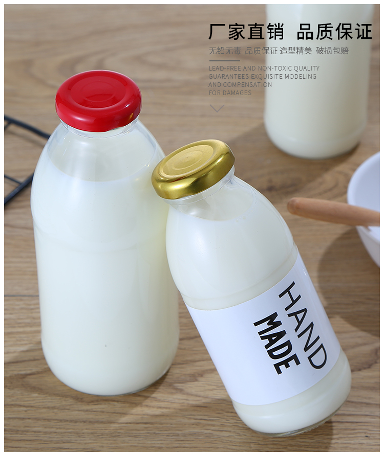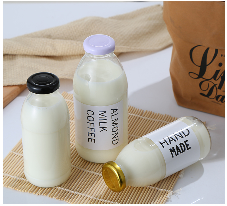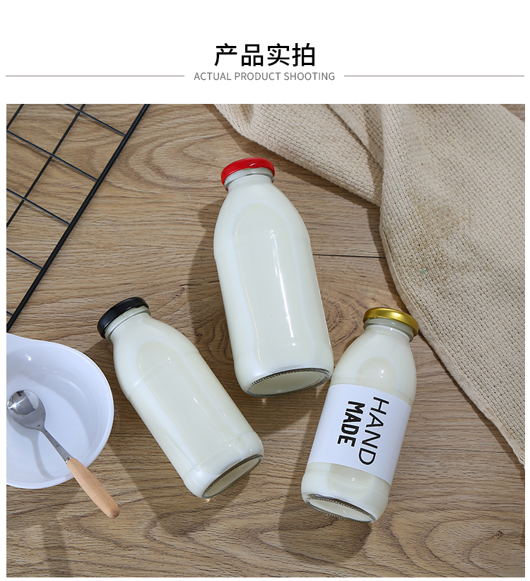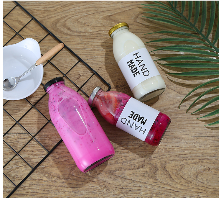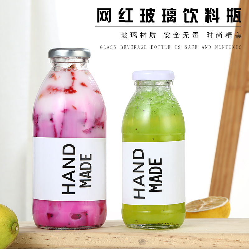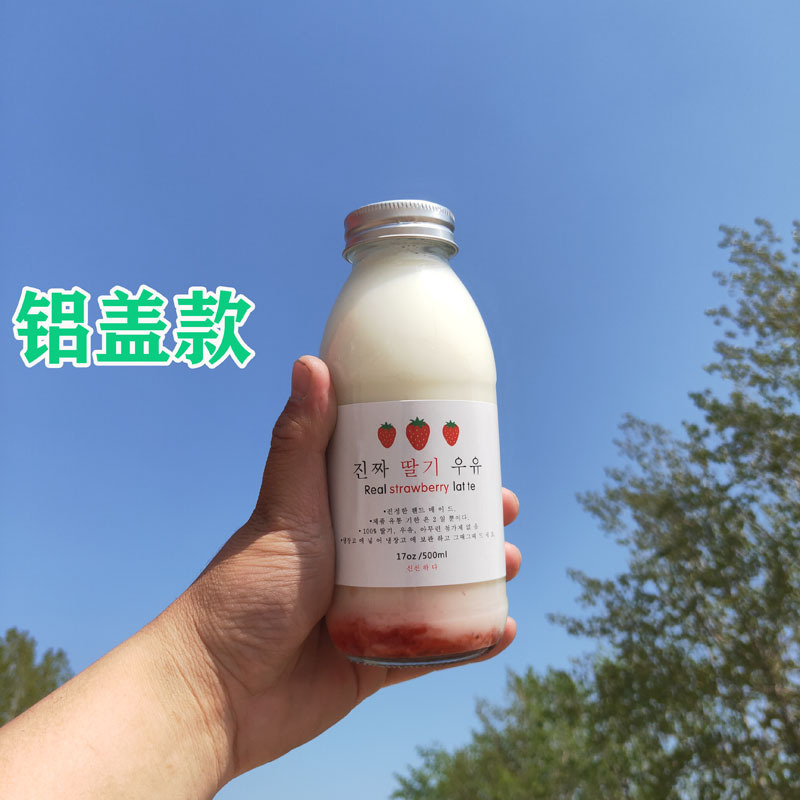 韩国500ml牛乳瓶网红草莓奶昔空瓶柠檬饮料瓶冷泡花茶玻璃密封瓶