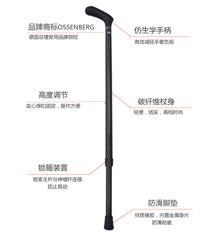 德國進口超輕柺杖碳纖手杖高端老人手杖柺杖登山杖助行杖骨折手杖