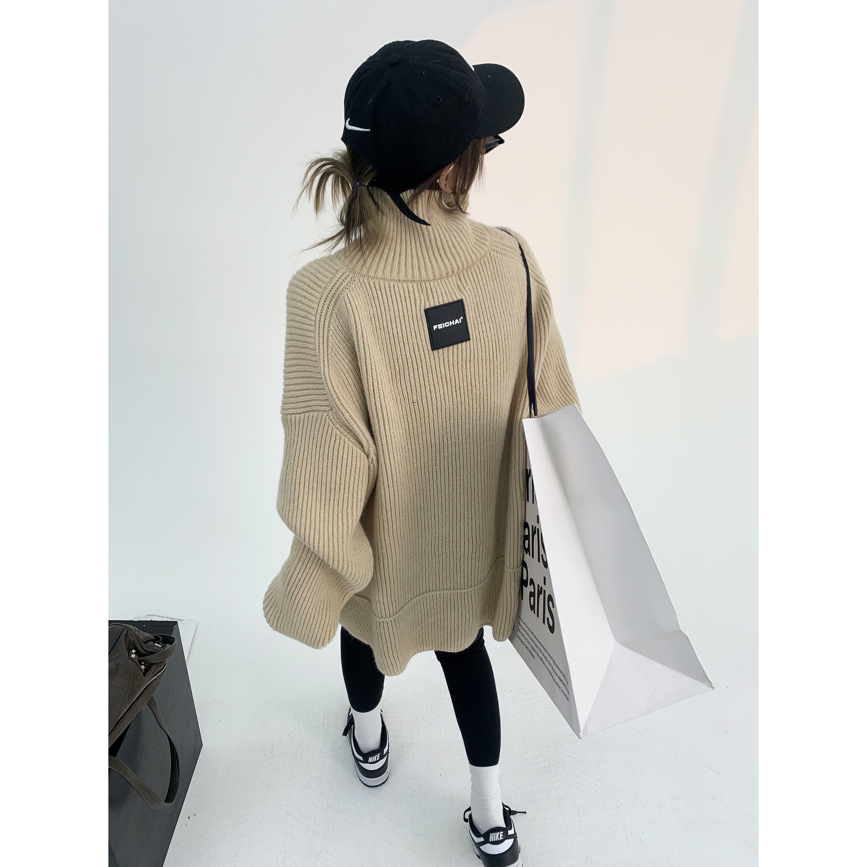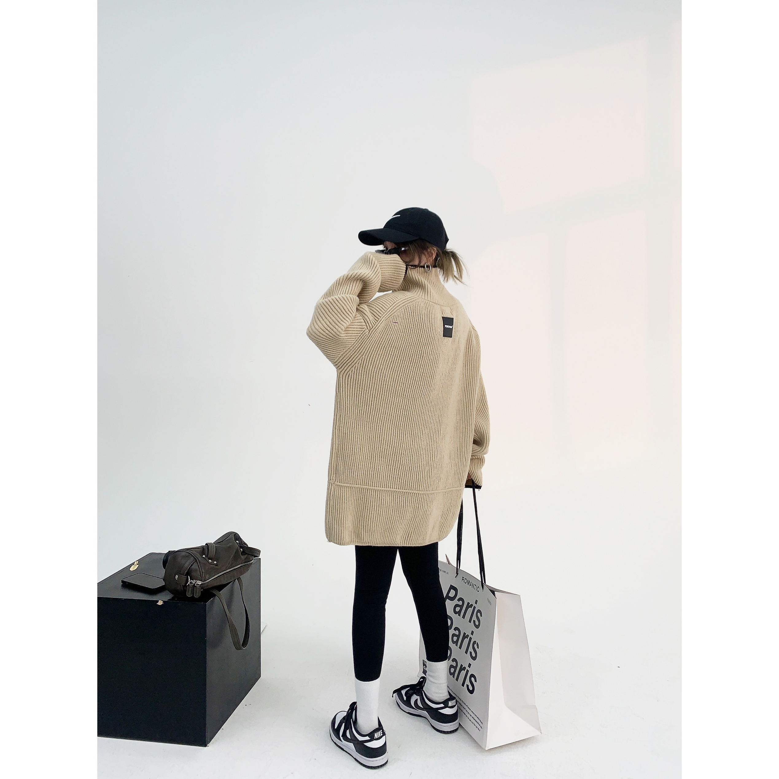 廢柴冬季美式復古重磅加厚高領套頭毛衣寬鬆慵懶針織上衣外套女潮