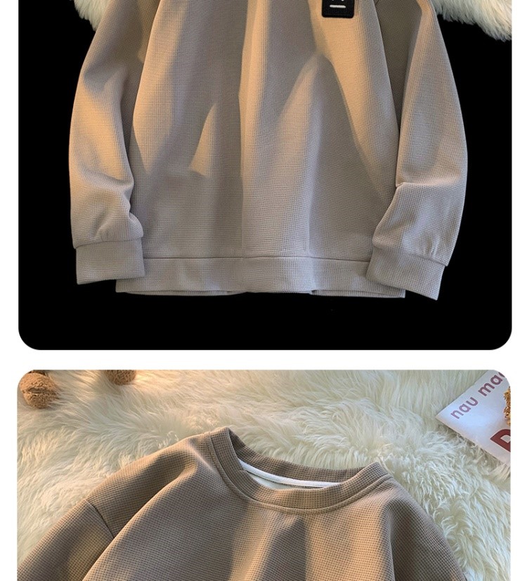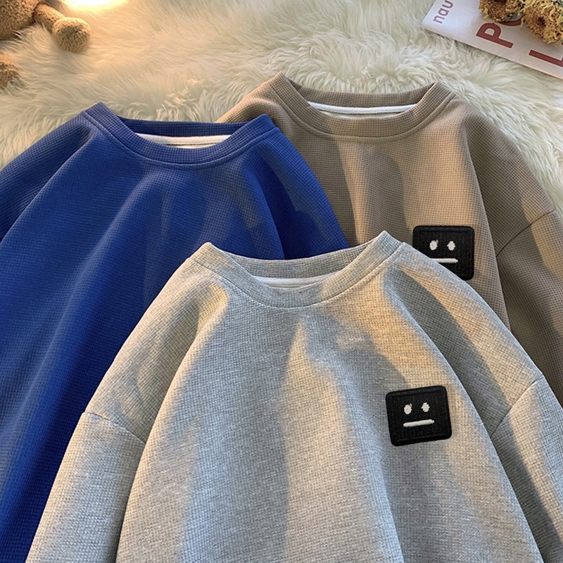 oversize華夫格衛衣男內搭打底衫長袖T恤春秋上衣服重磅薄款夏季