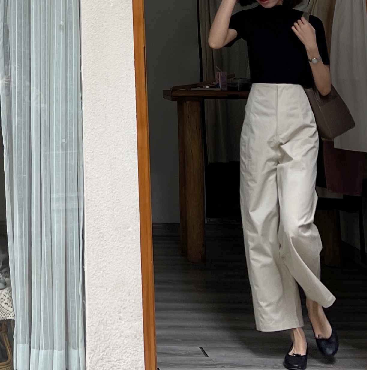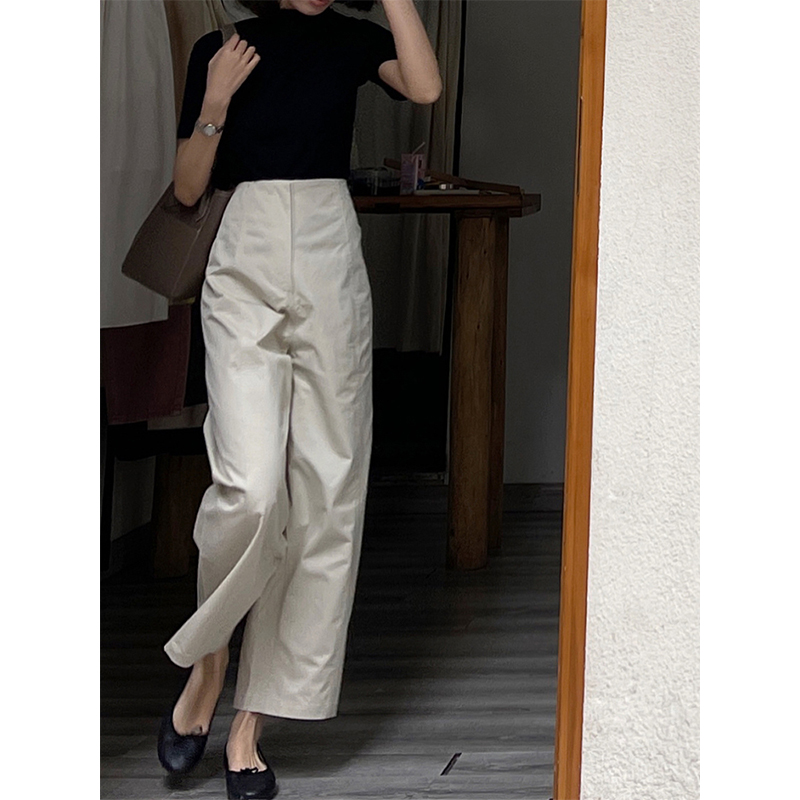 白色薄款窄版直筒休閒褲女夏季日系高腰寬鬆墜感闊腿褲九分西裝褲