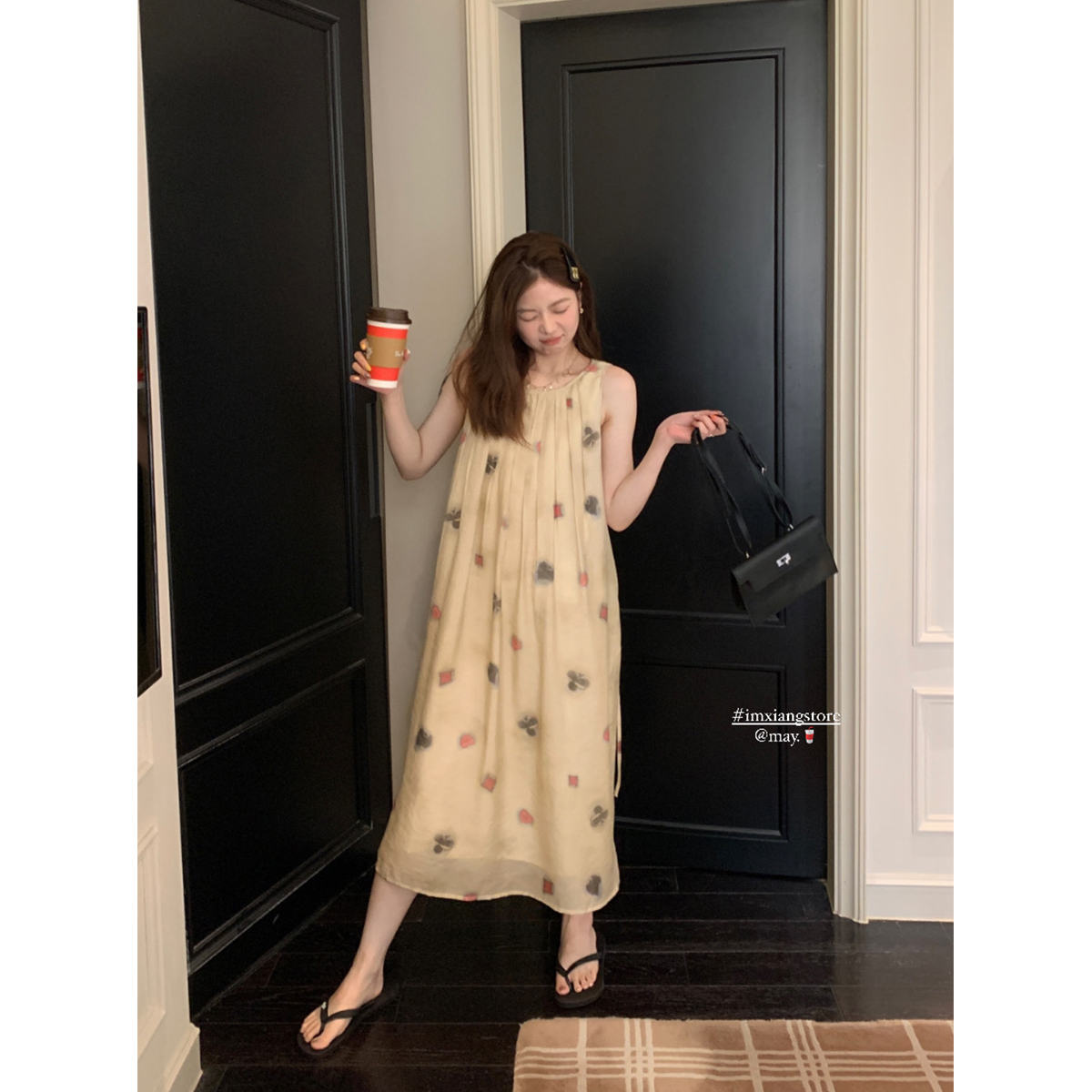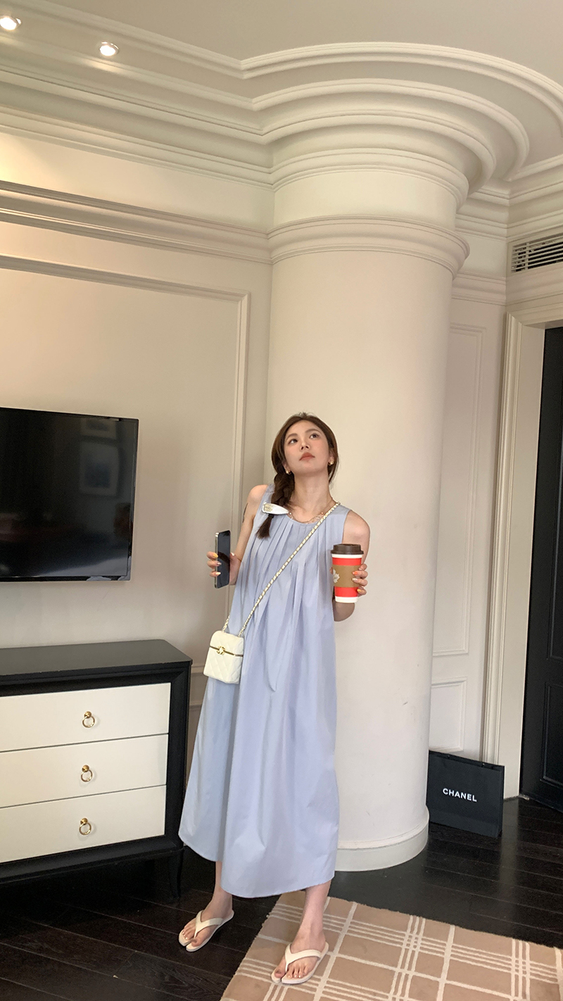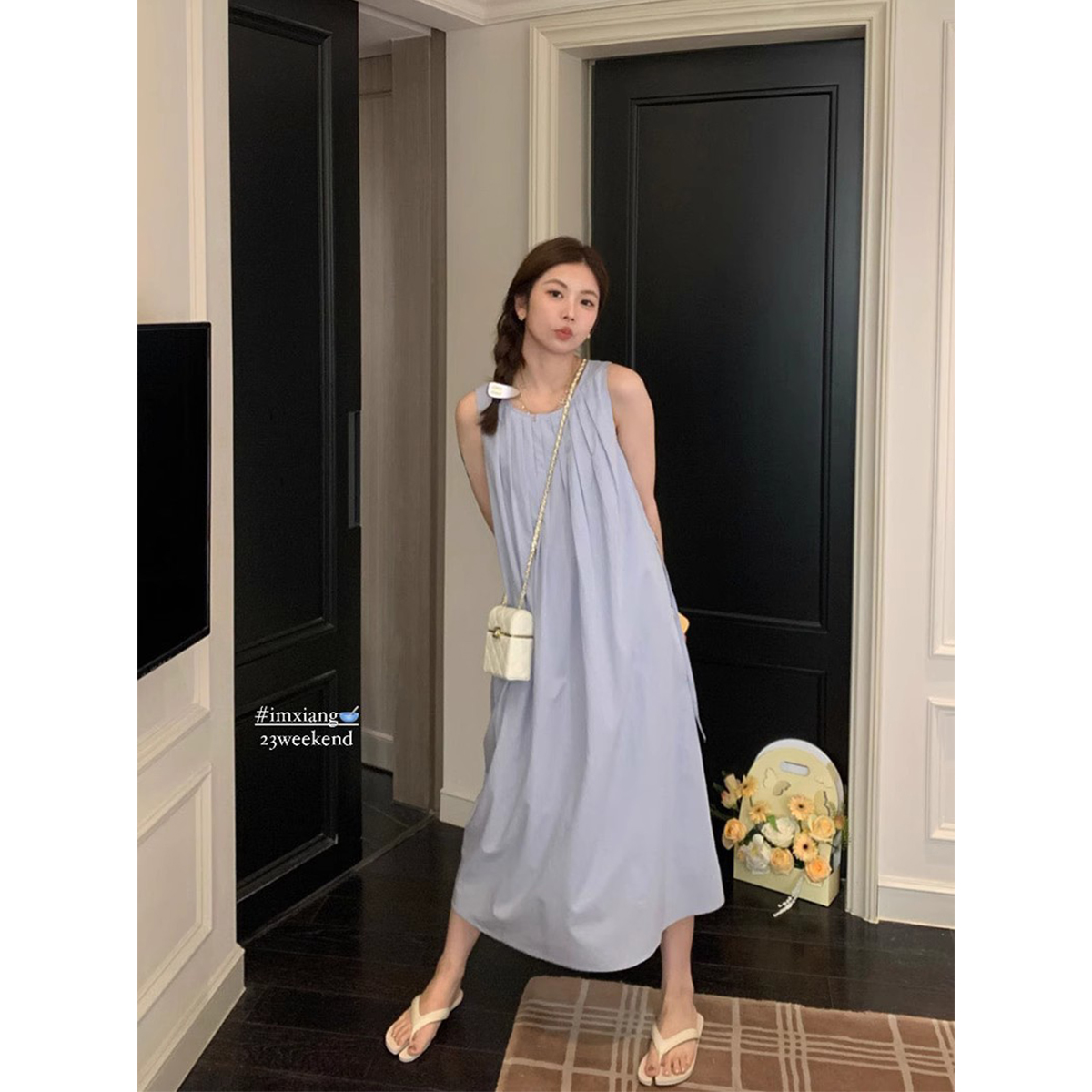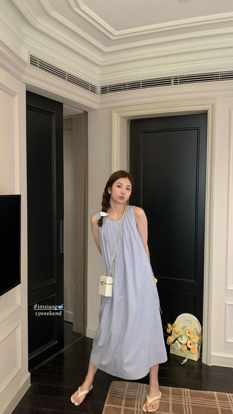 【現貨】 im向 u*ma風削肩無袖背心裙綁帶掛頸露肩洋裝