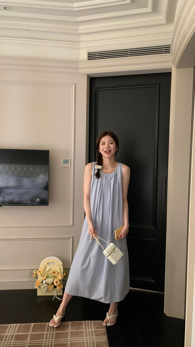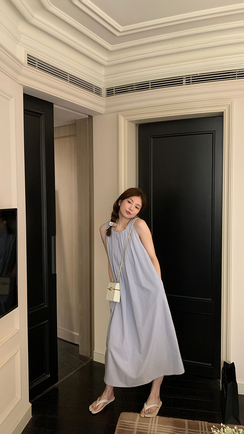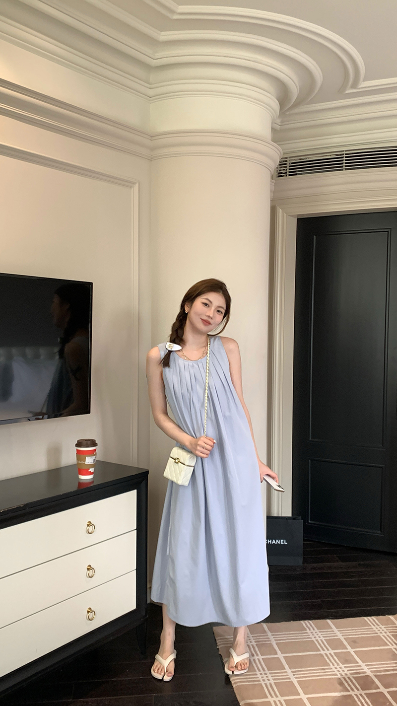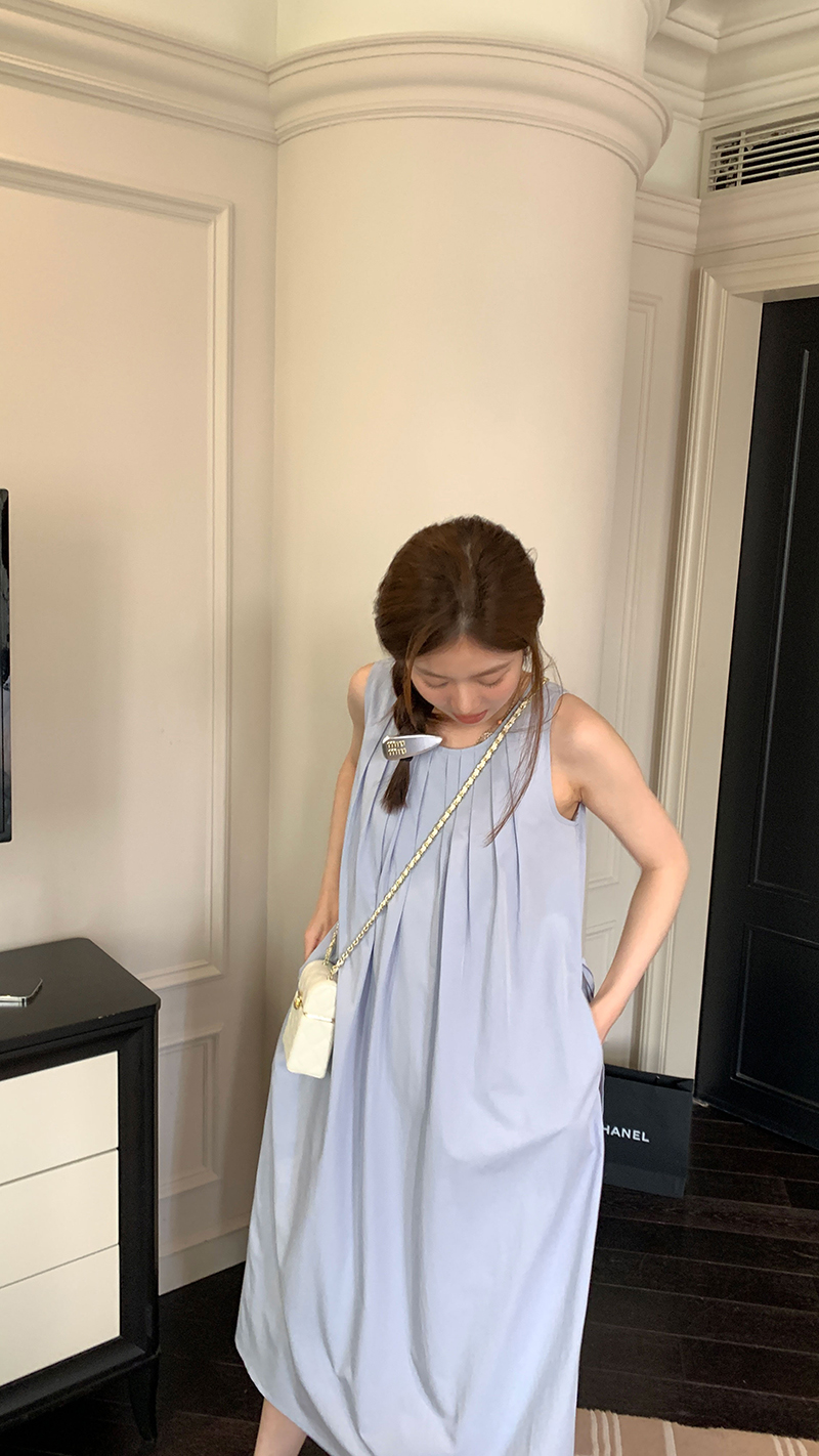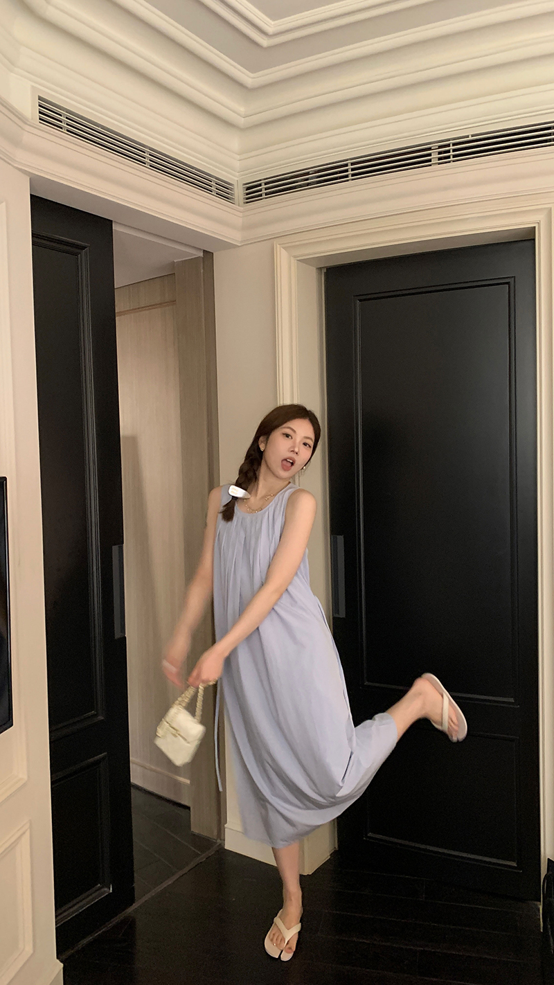 【現貨】 im向 u*ma風削肩無袖背心裙綁帶掛頸露肩洋裝