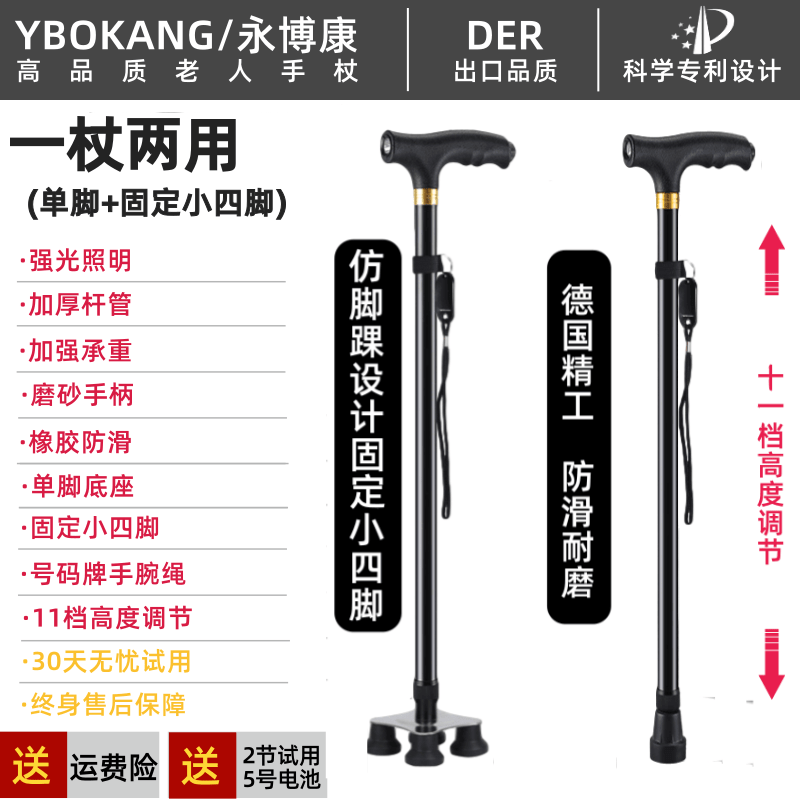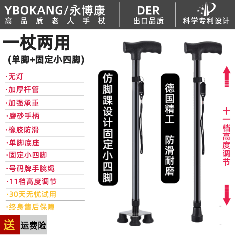 固定小四腳加厚穩固老人防滑柺杖老年人扙多功能伸縮防滑柺棍捌杖