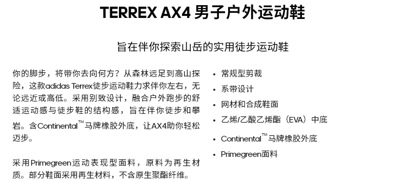 adidas TERREX官方AX4男鞋新款戶外防滑運動徒步登山鞋FY9673