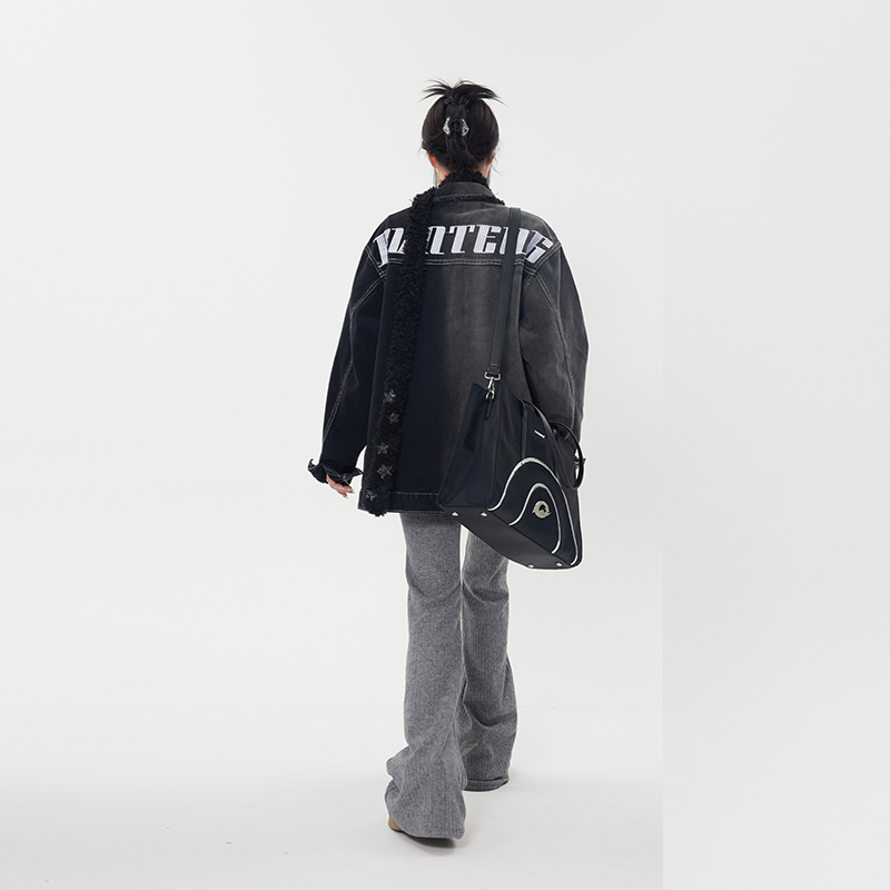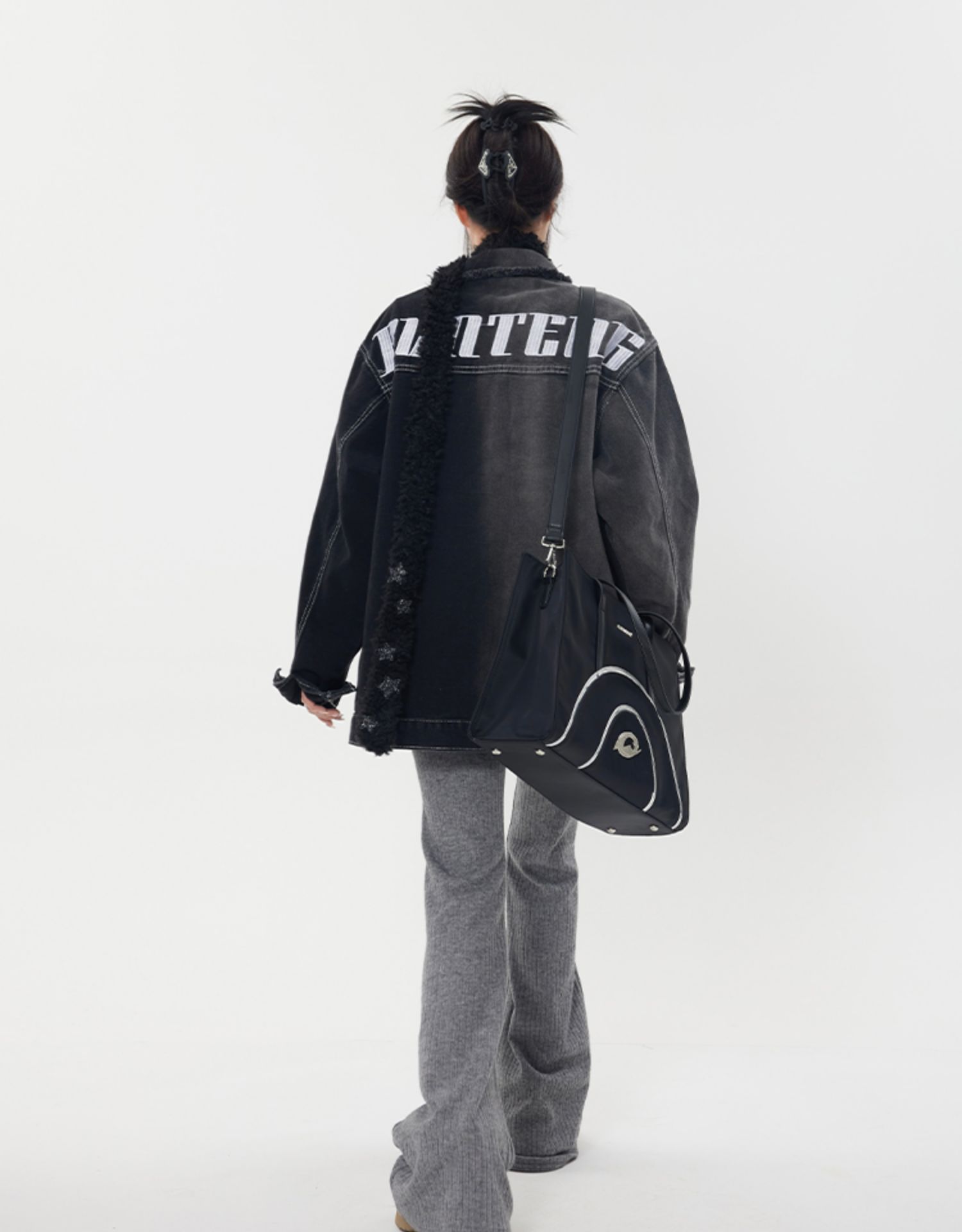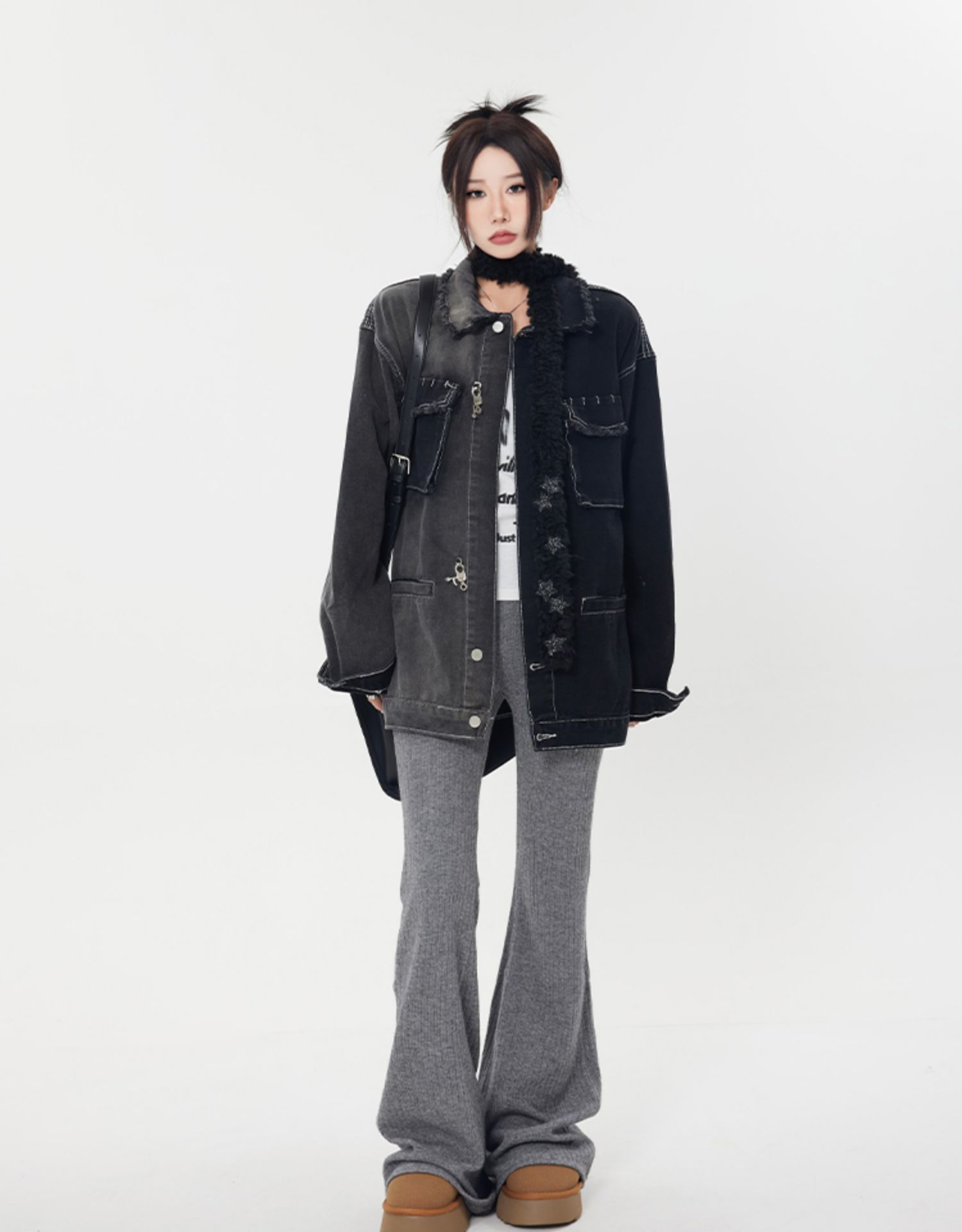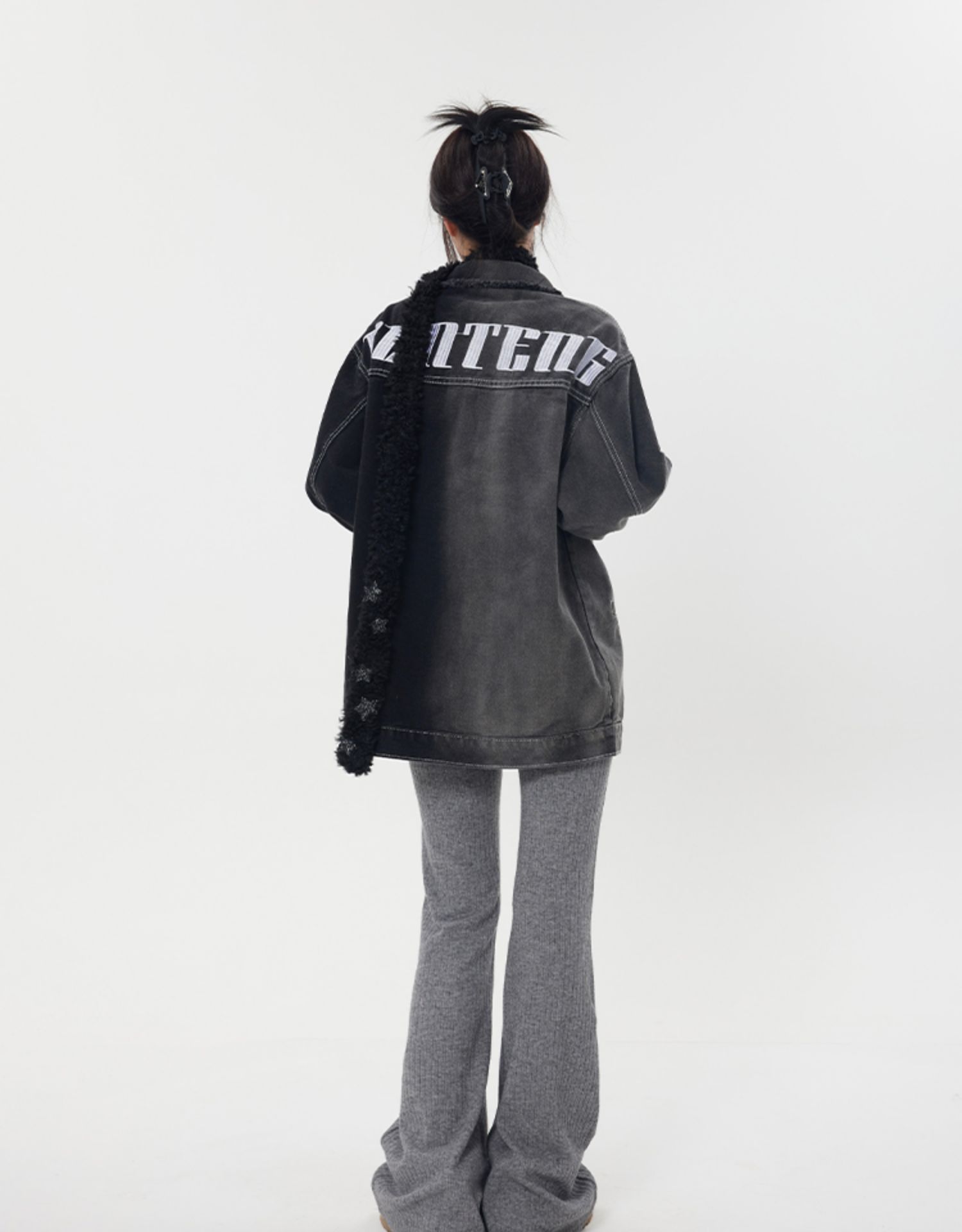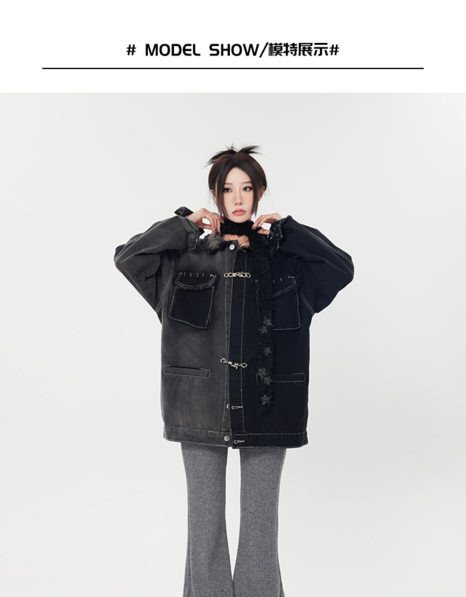ZHL STUDIO美式復古拼色水洗毛邊牛仔外套女春季新款休閒情侶夾克