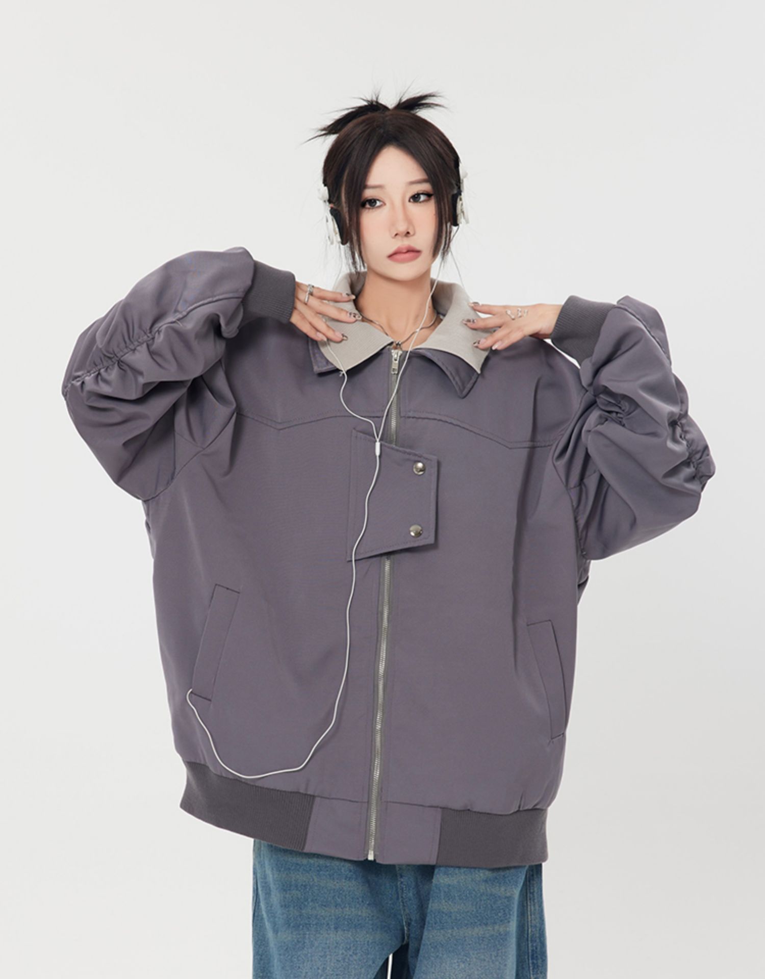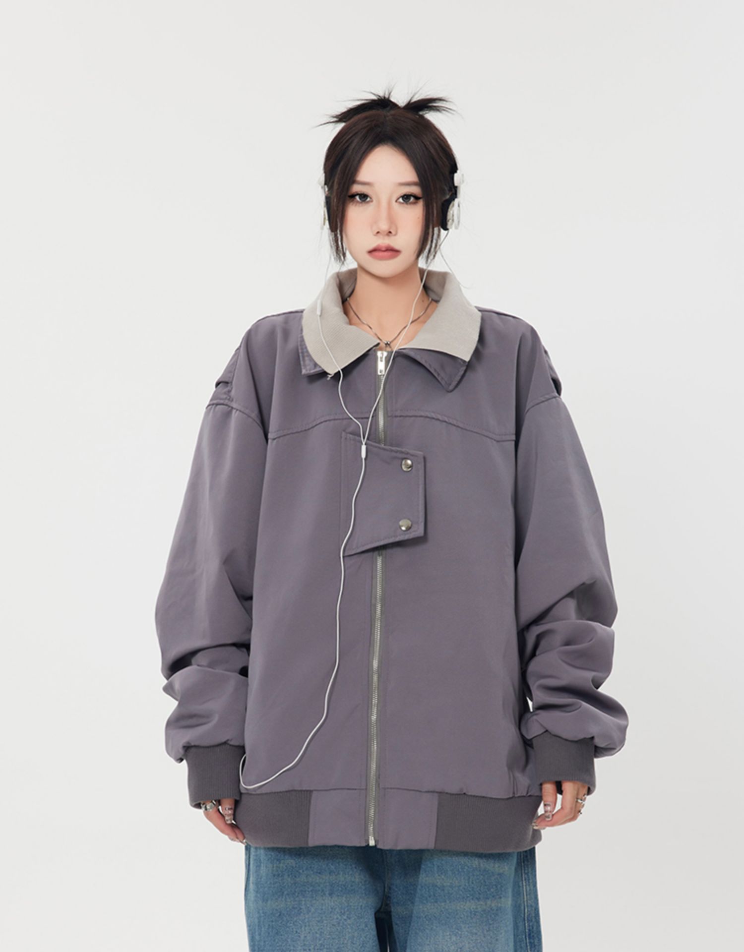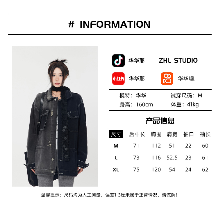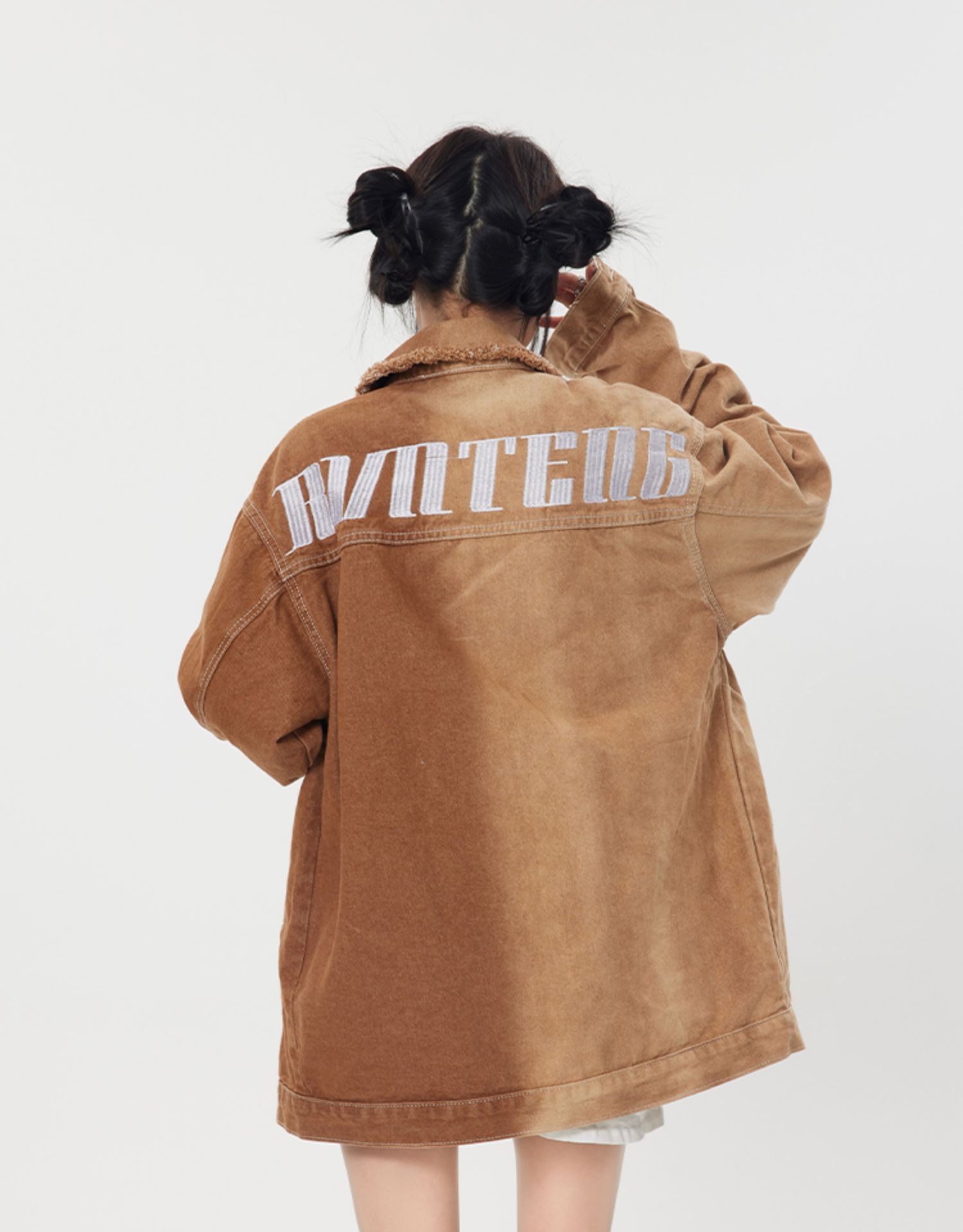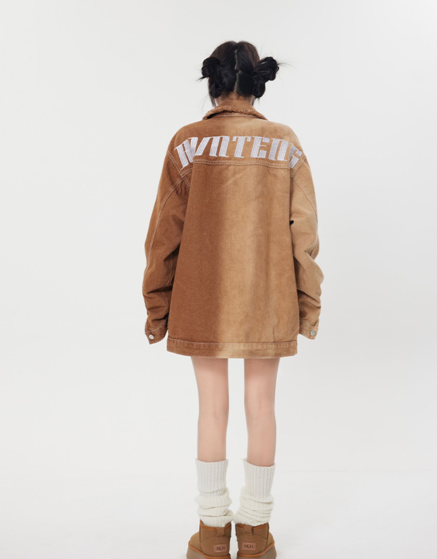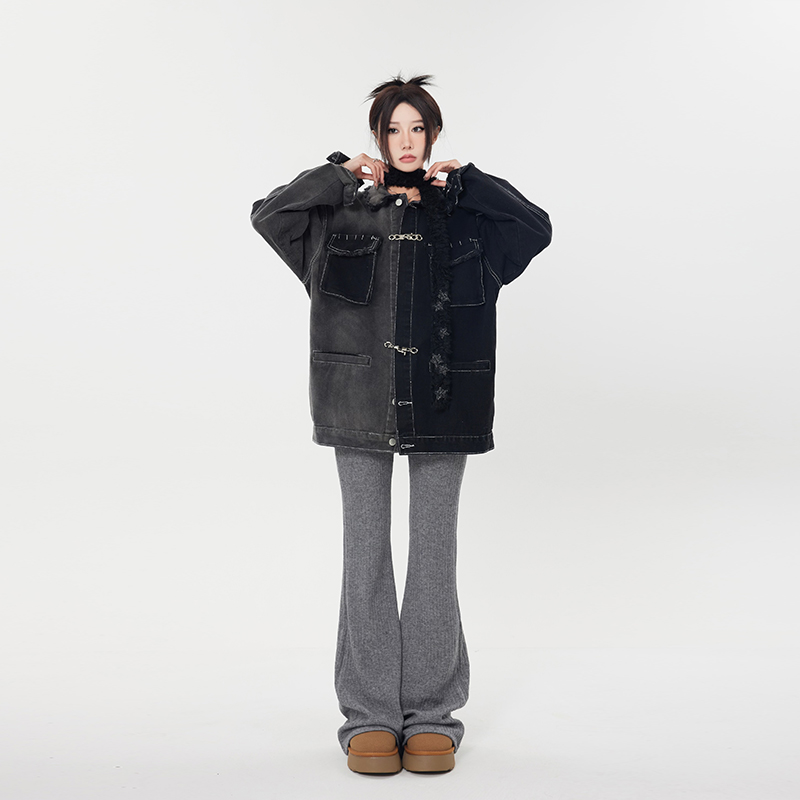 ZHL STUDIO美式復古拼色水洗毛邊牛仔外套女春季新款休閒情侶夾克
