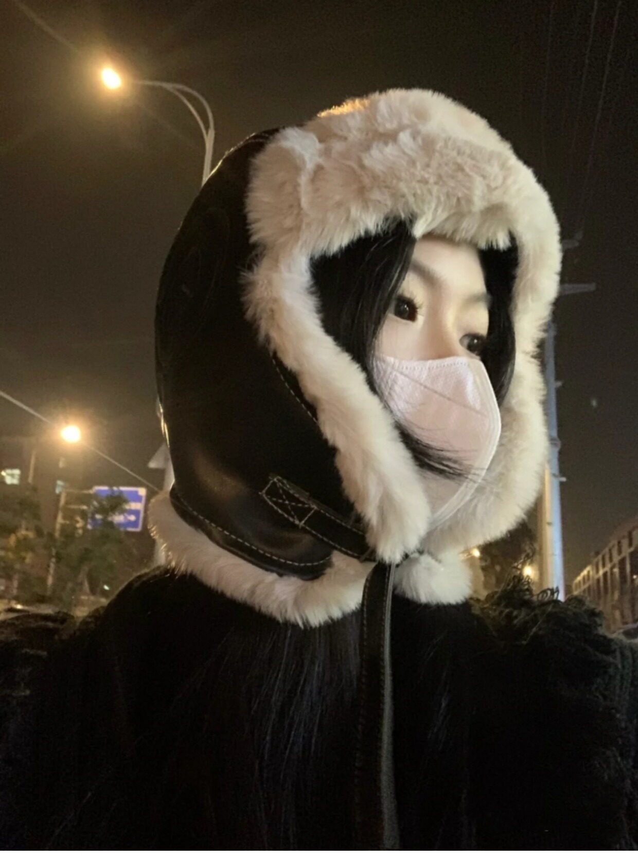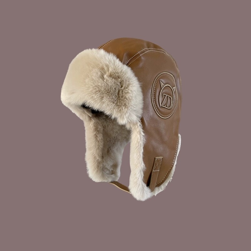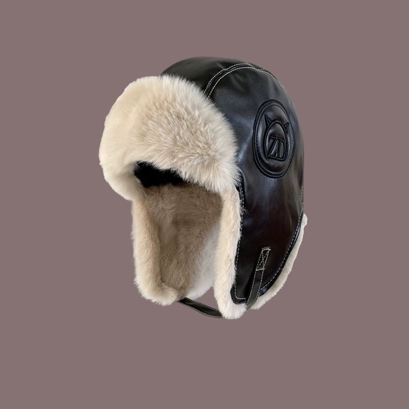 皮質帽子女秋冬天雷鋒帽潮冬加厚保暖電動車戶外騎車護耳防風防寒