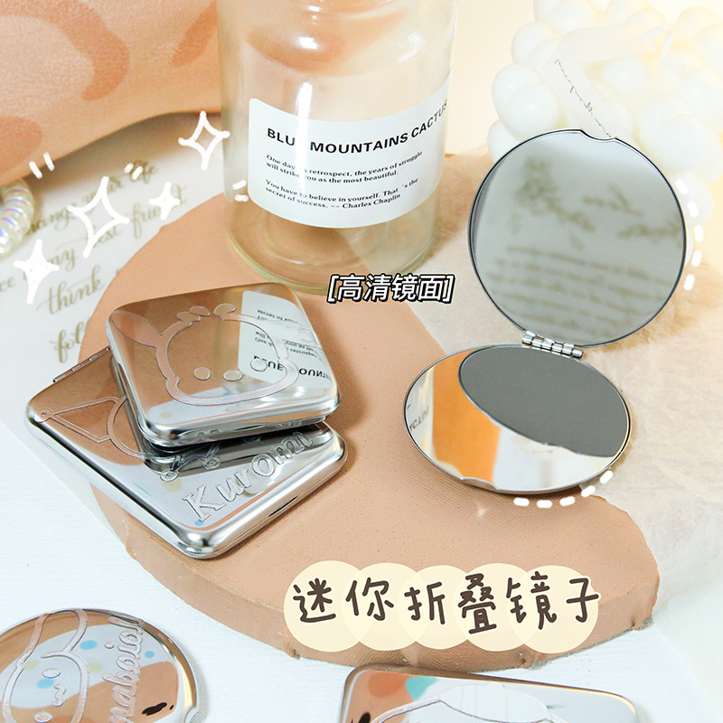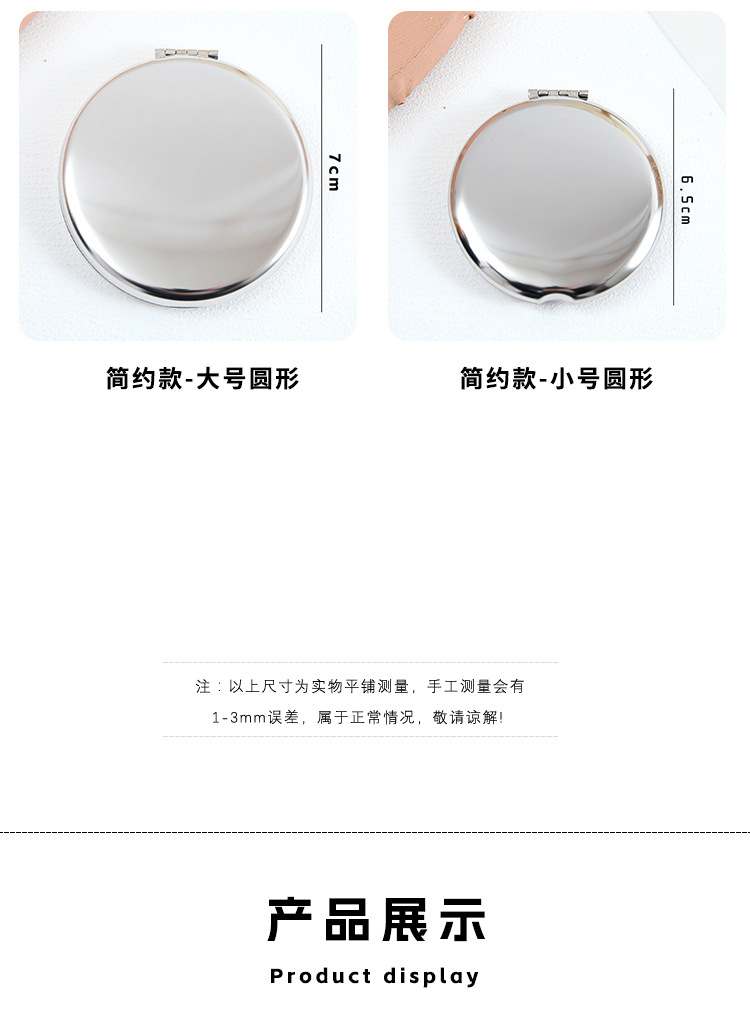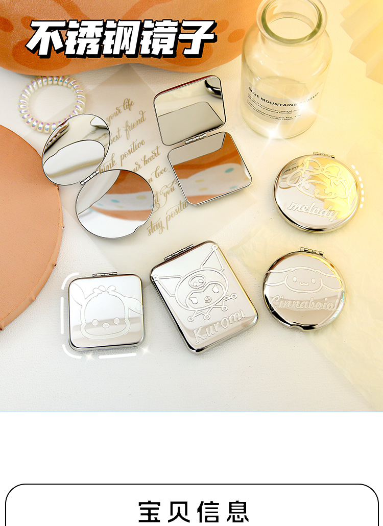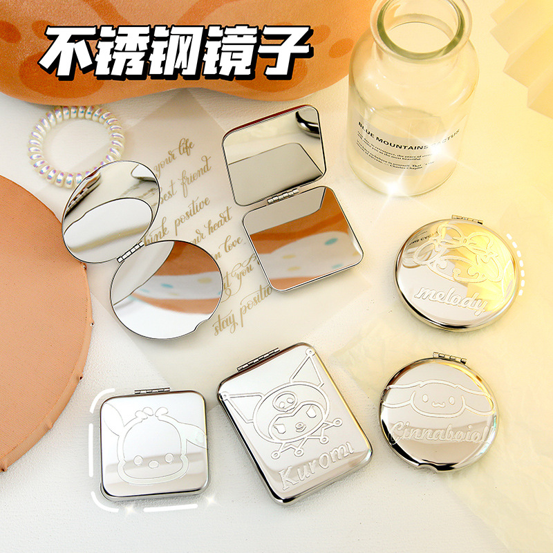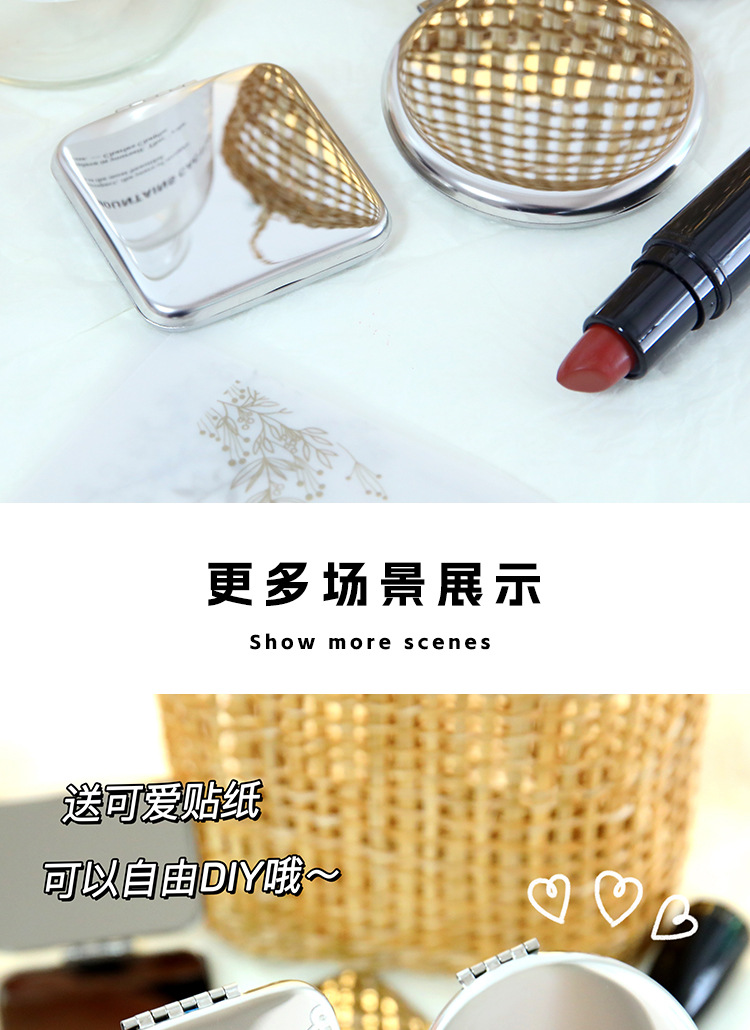 不锈钢摔不碎小镜子ins手持便携随身化妆镜翻盖式学生双面折叠镜