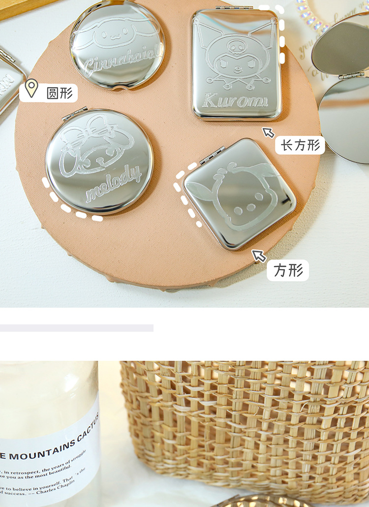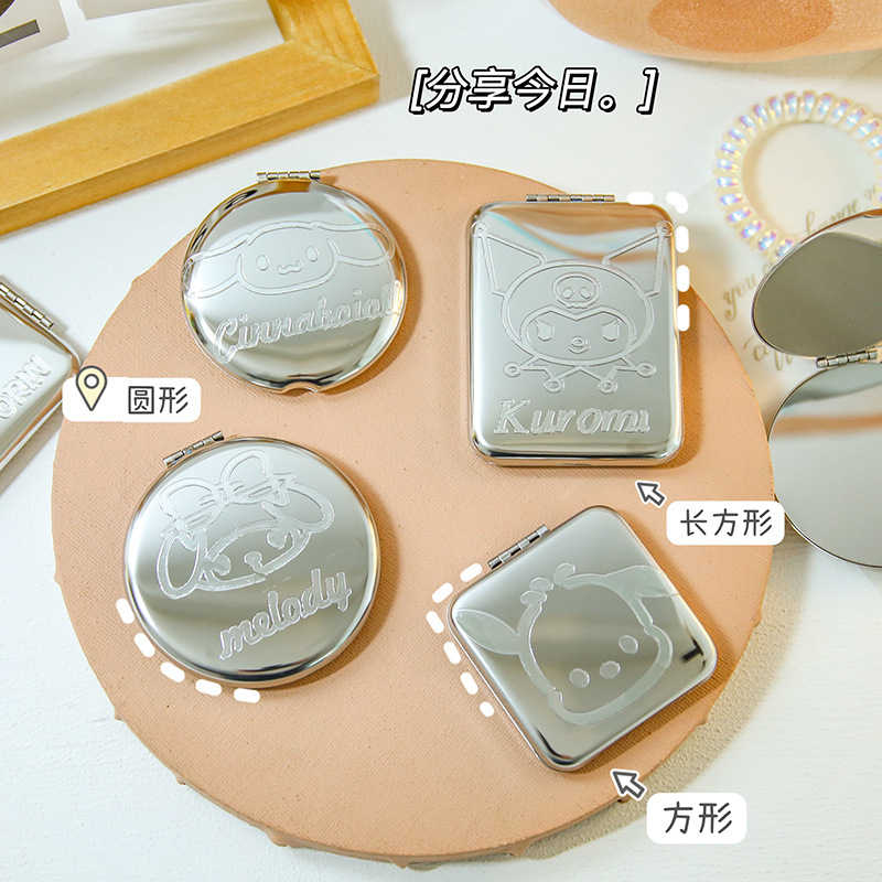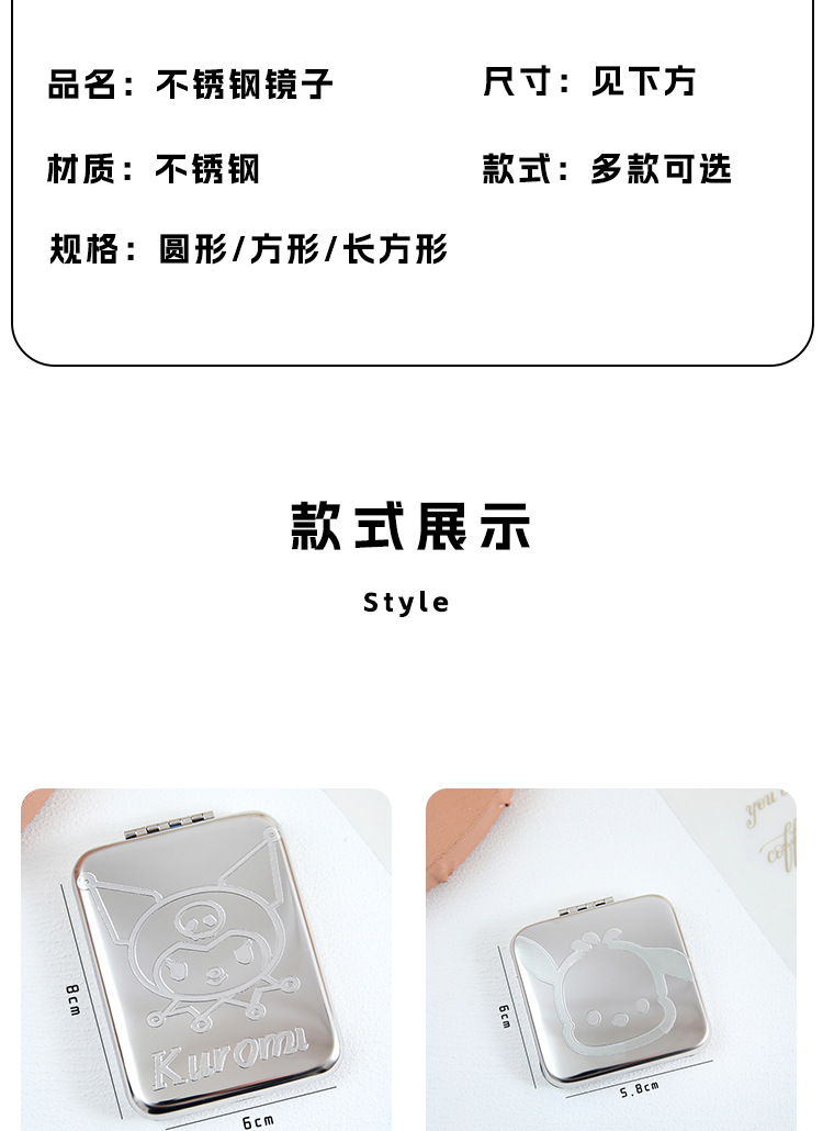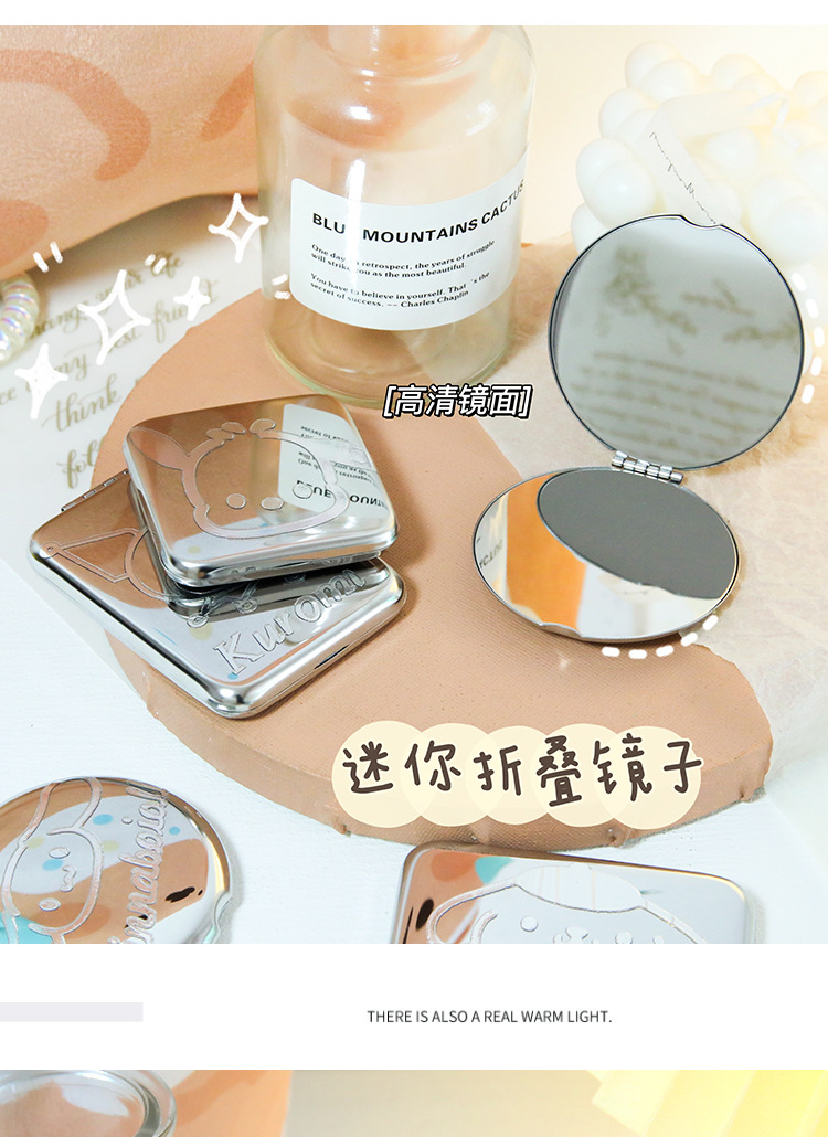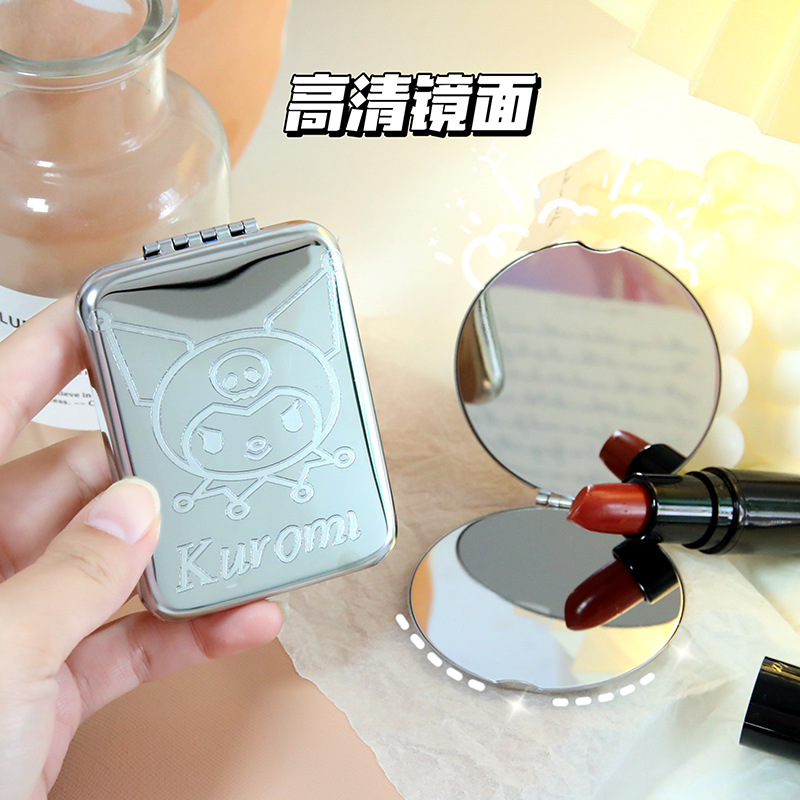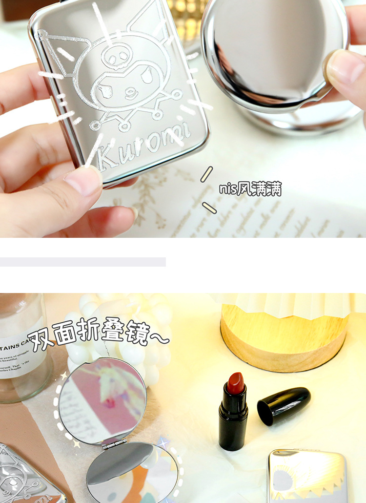 不锈钢摔不碎小镜子ins手持便携随身化妆镜翻盖式学生双面折叠镜