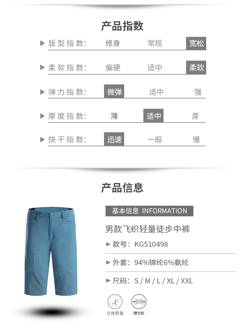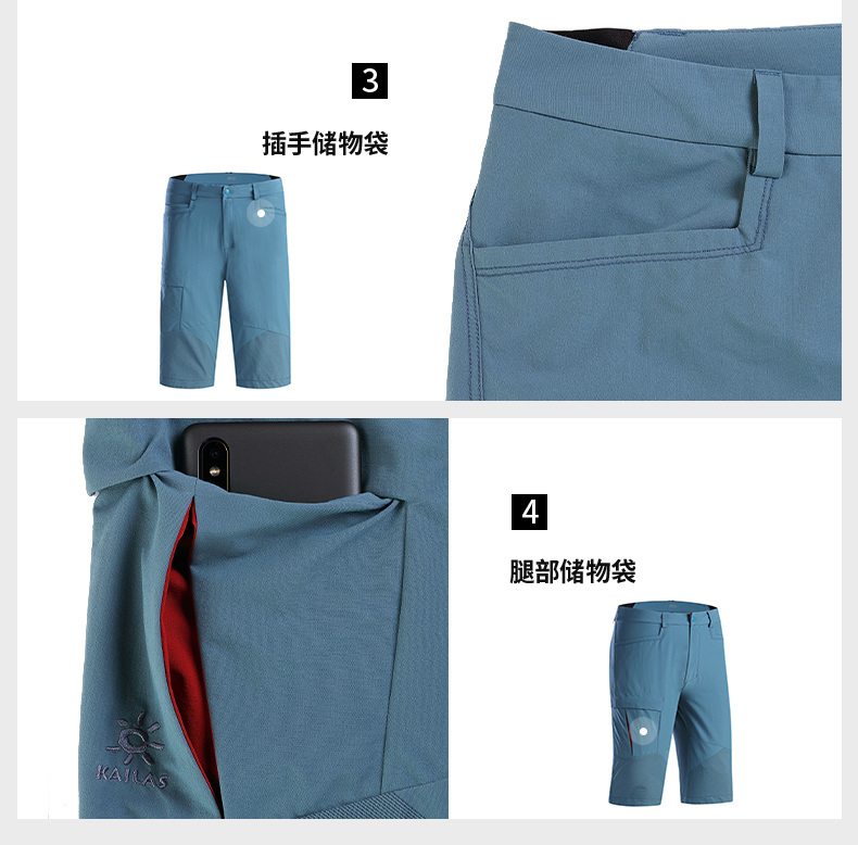 凱樂石男款飛織徒步五分褲CORDURA耐磨彈力速乾透氣戶外徒步KG10498