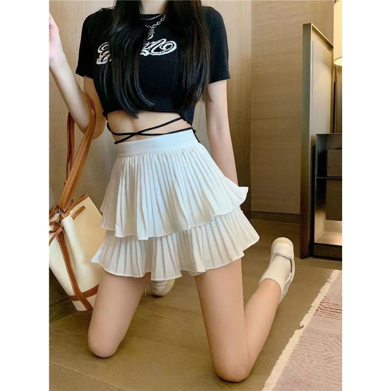 小个子裙子蛋糕半身裙女高腰A字短裙2023夏季新款裙裤荷叶边百褶